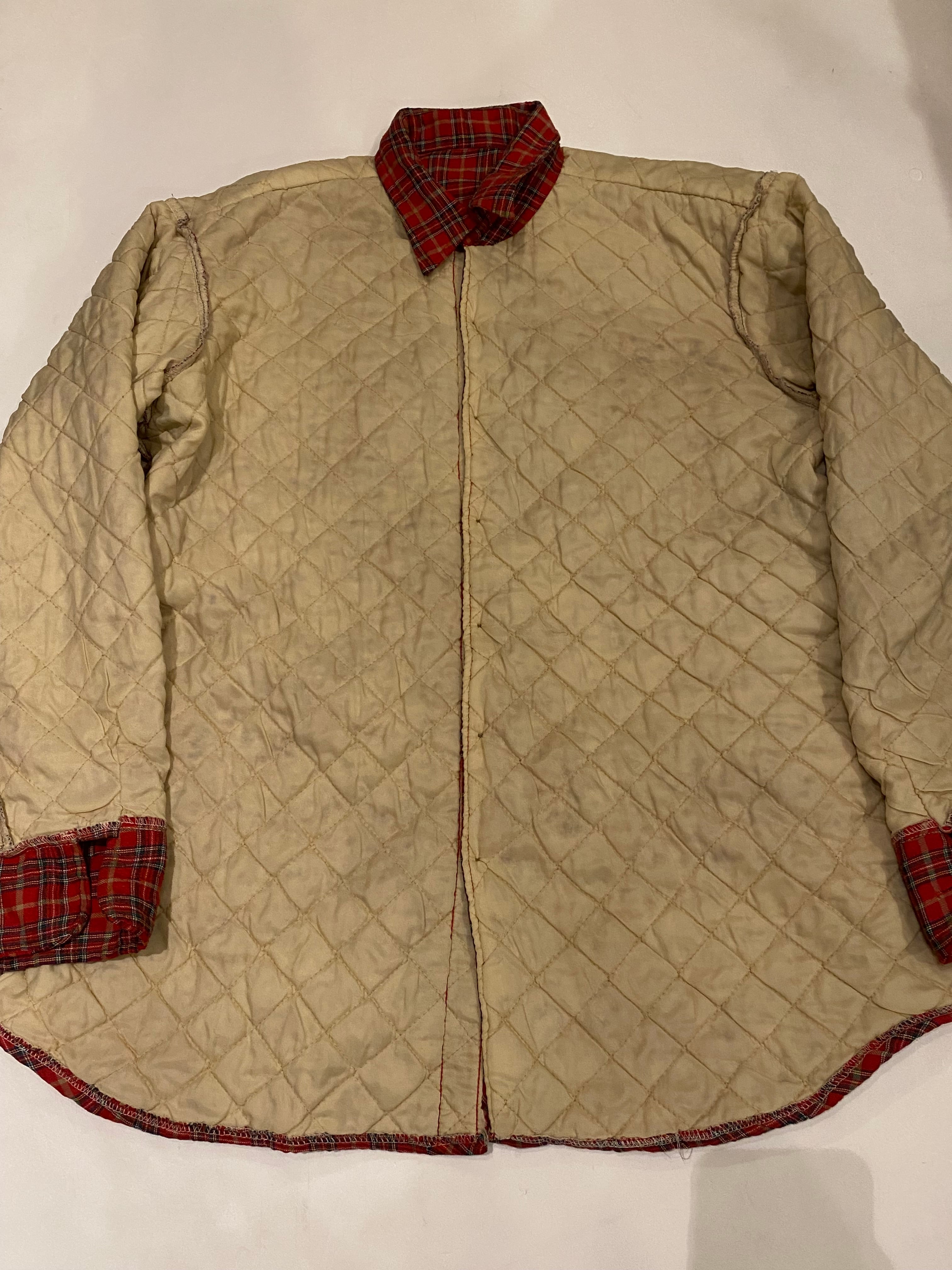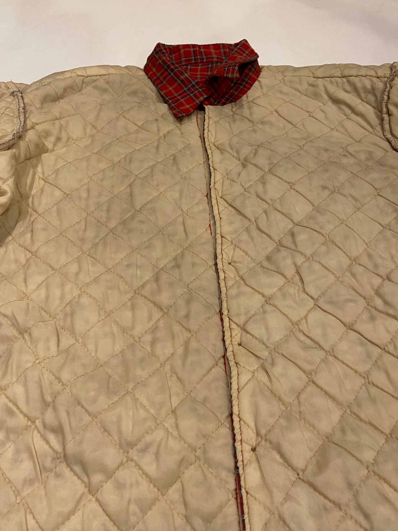 裏地はキルティングになっております。ボリュームのあるキルティングではないので、一枚ではあまり防寒性は期待できませんが、