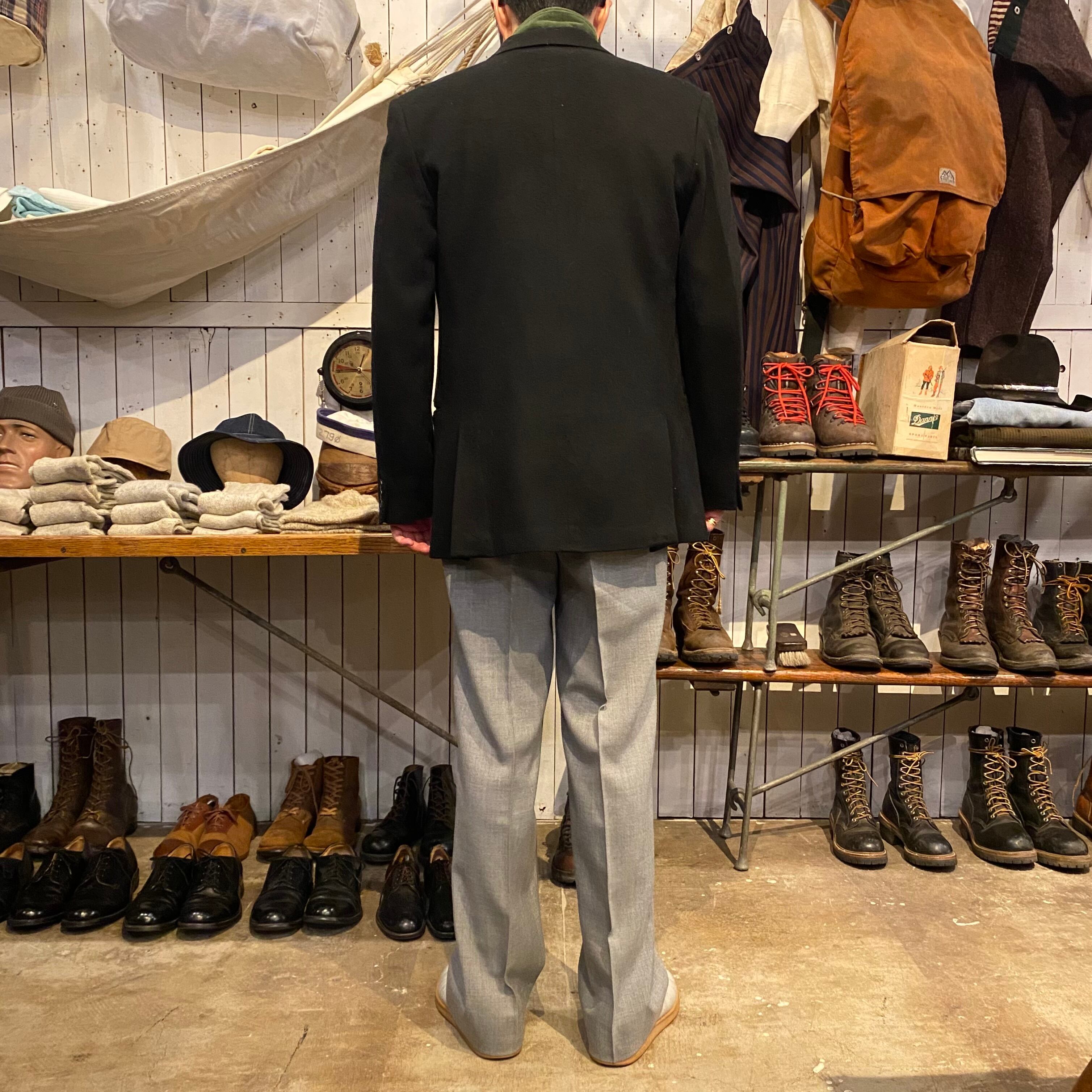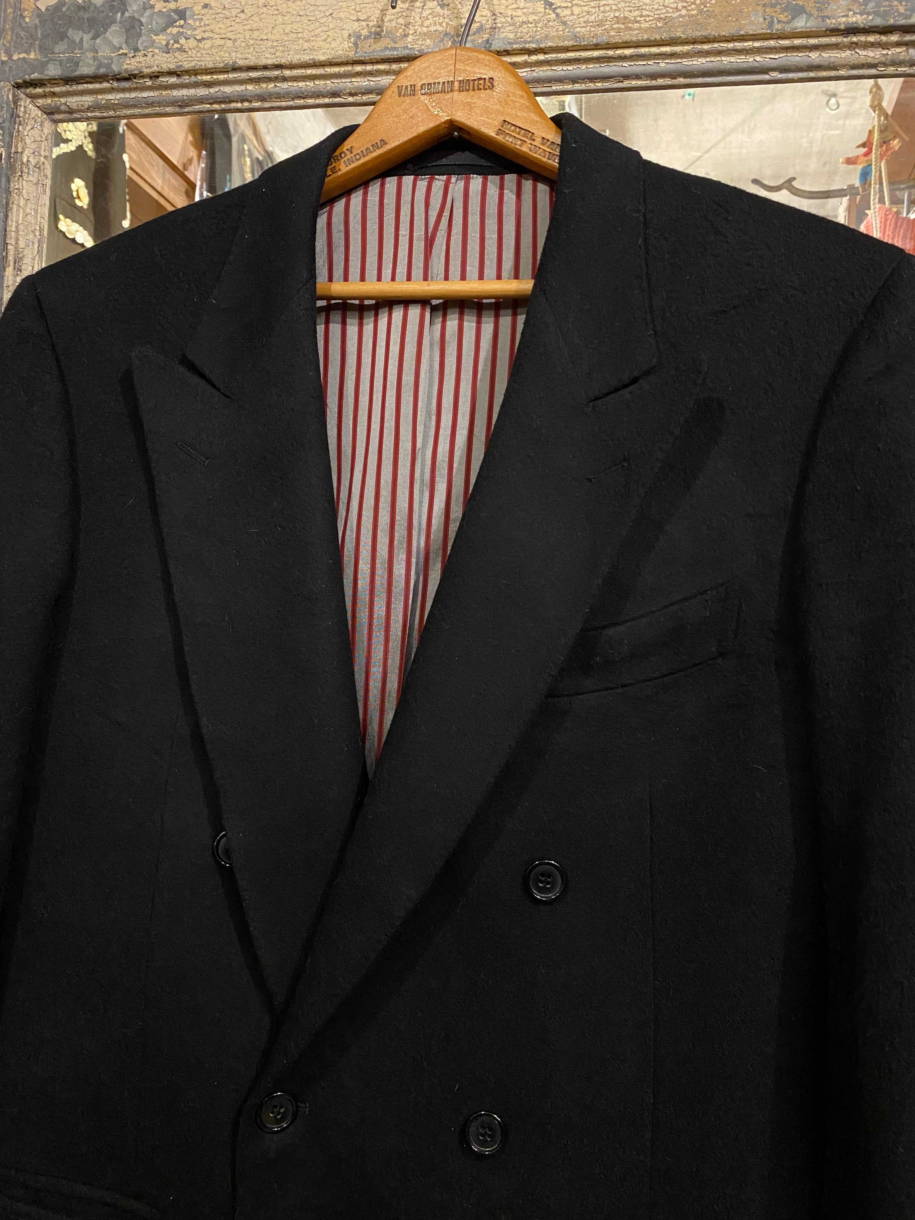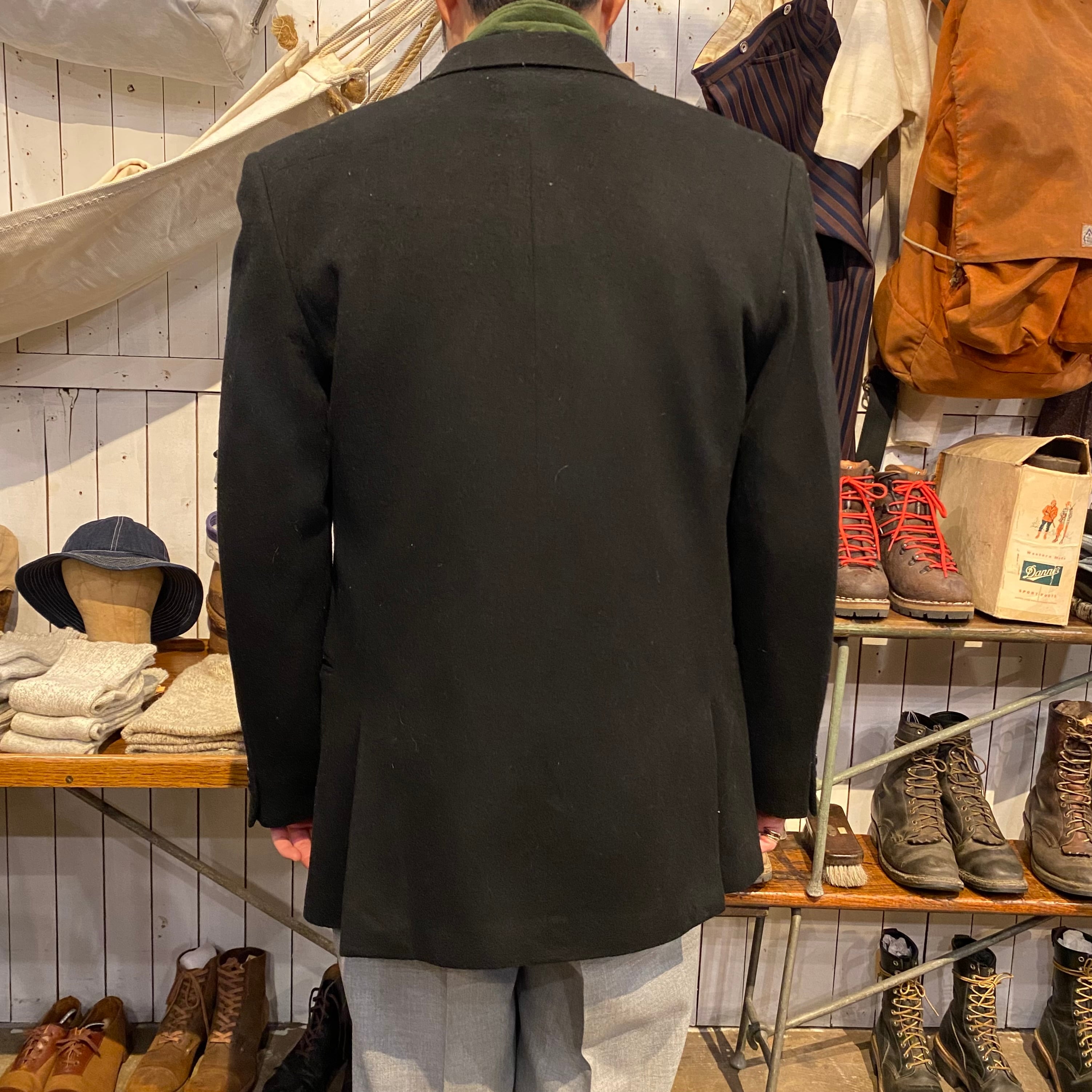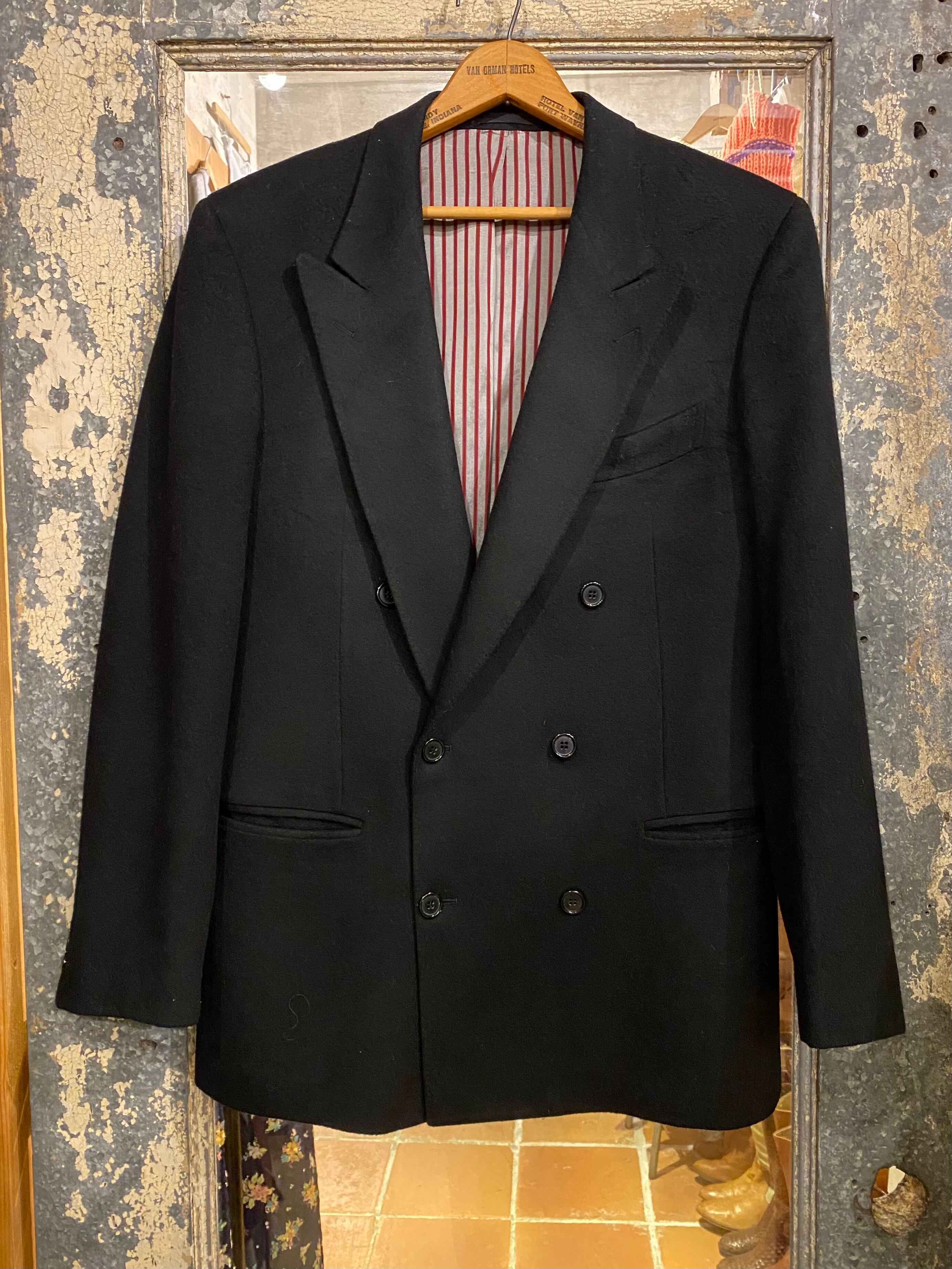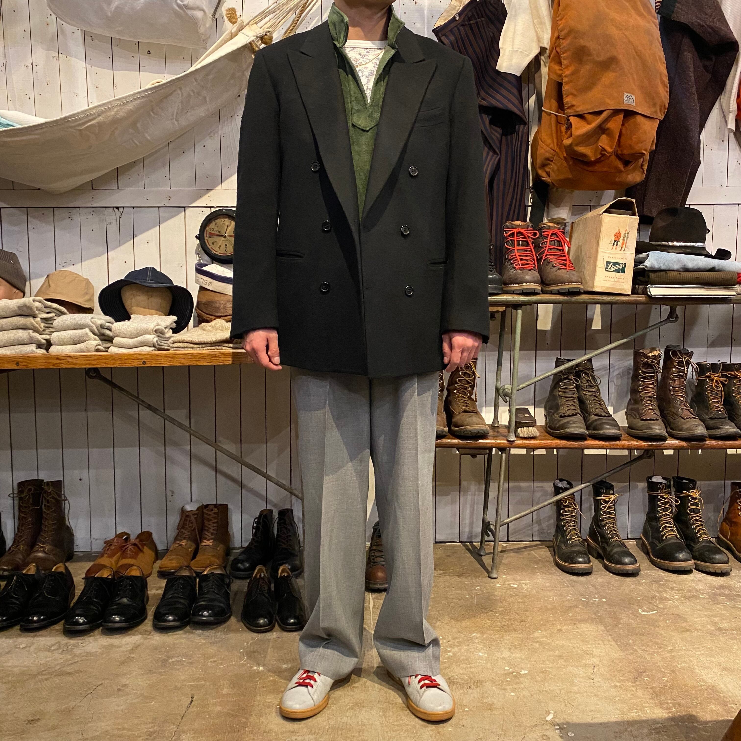 ダブルで、ピークドラペルで、クラシックな雰囲気とあり格好良いジャケットです。