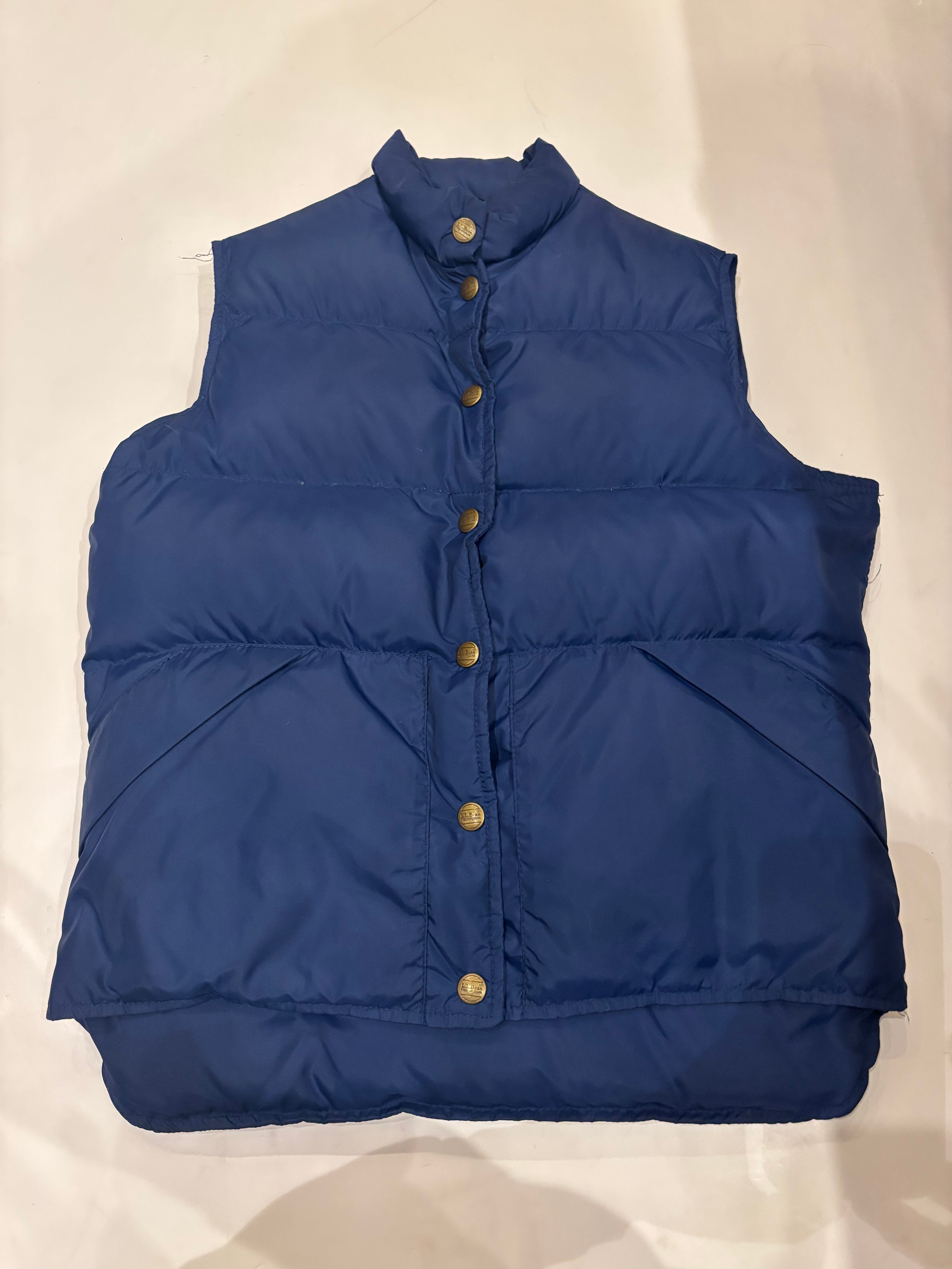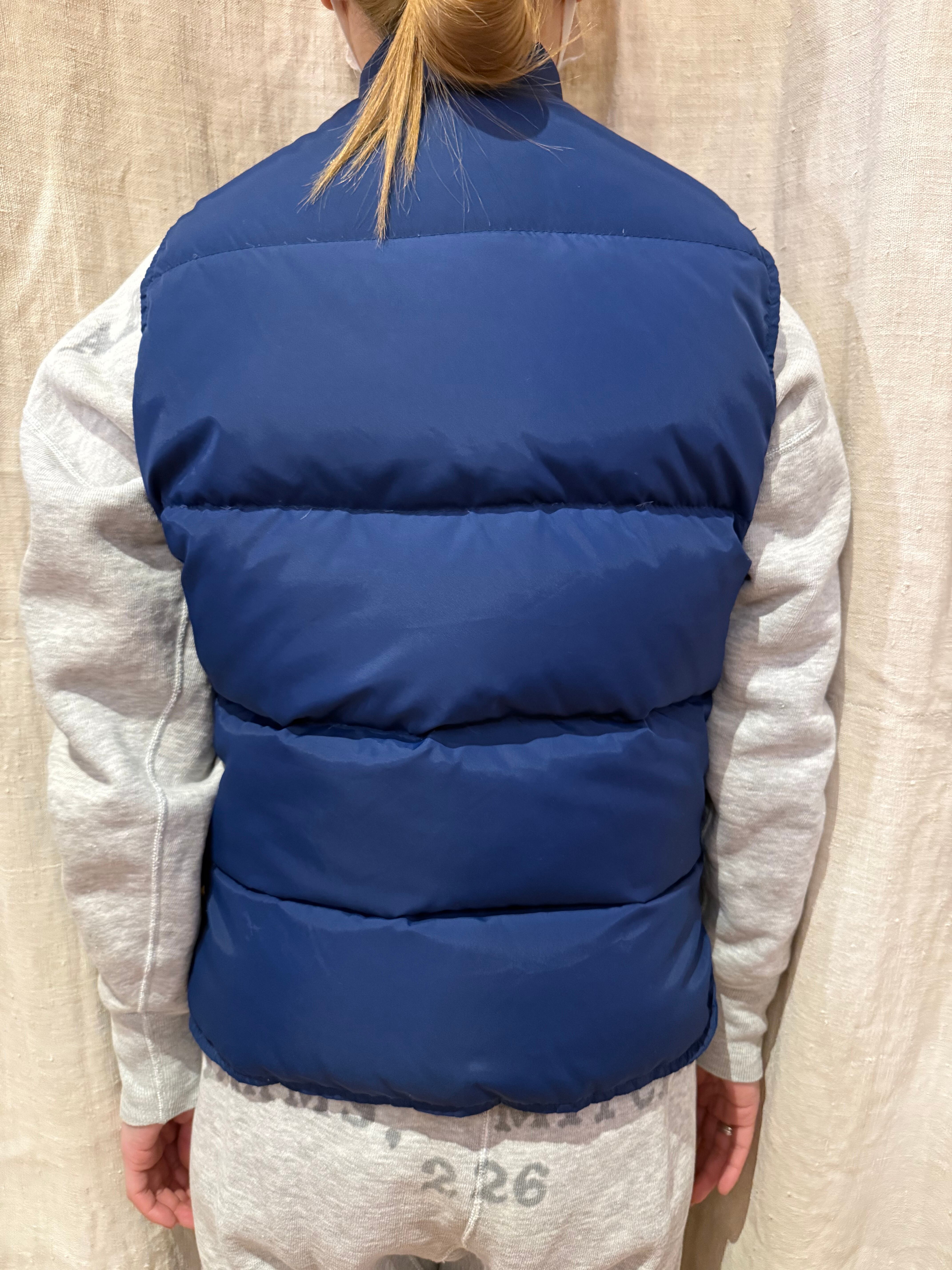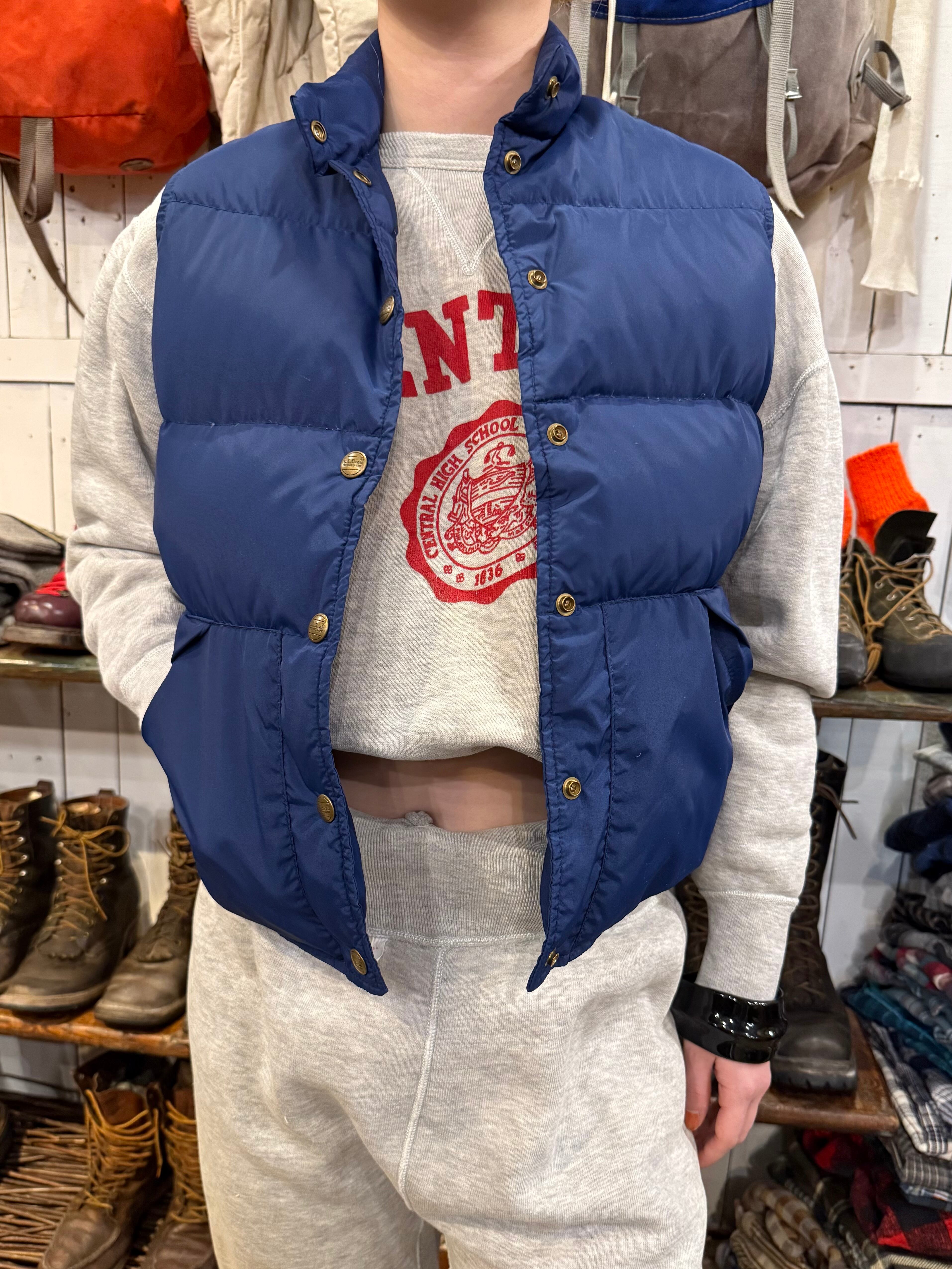 L.L.BEANのダウンベストでございます。鮮やかなブルーでまだまだ綺麗な状態。ダウンがしっかりしており、パフっとした暖かな着心地です。小さめなサイズ感でピタッと着るのがおすすめです。