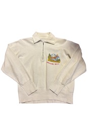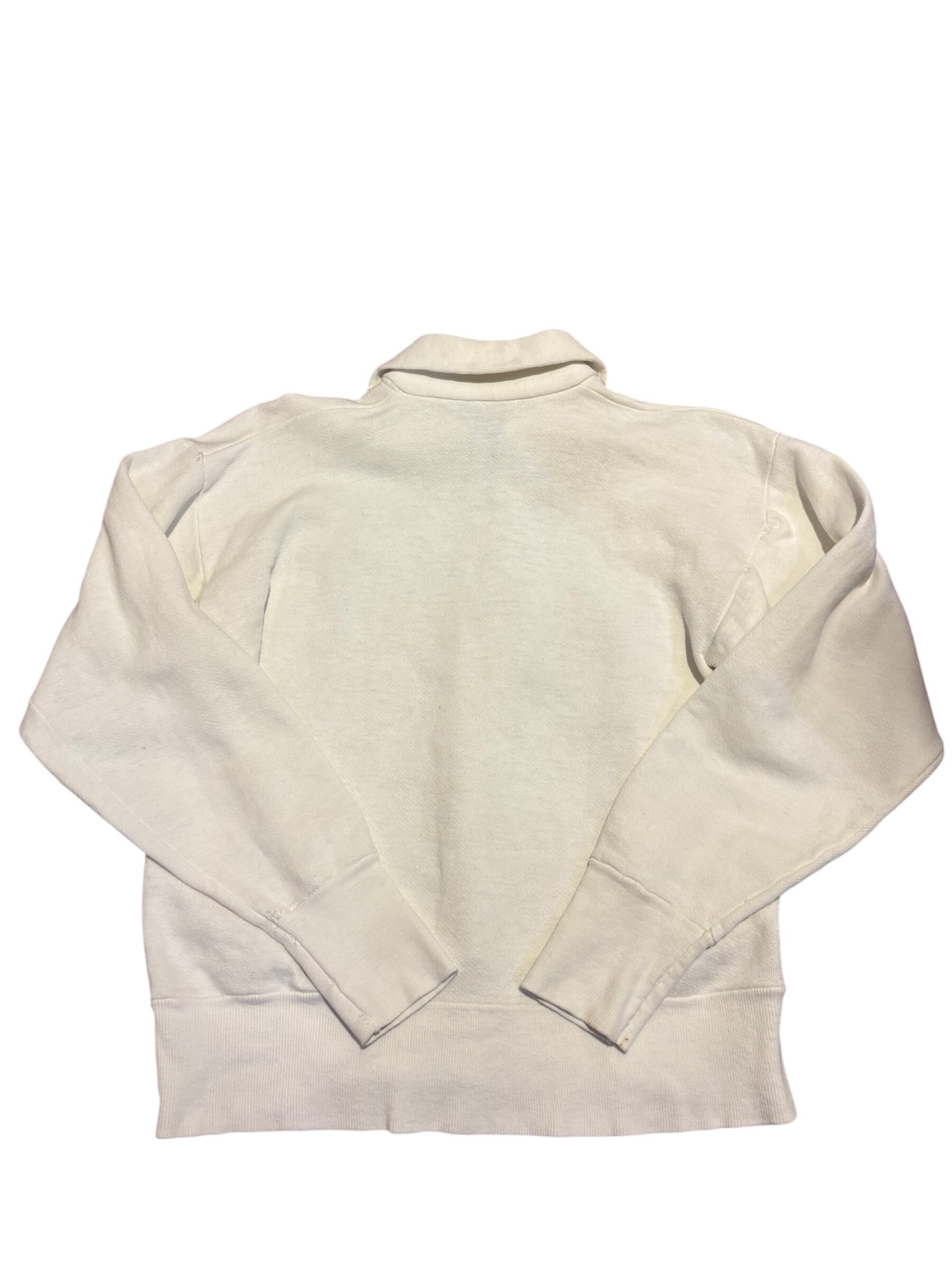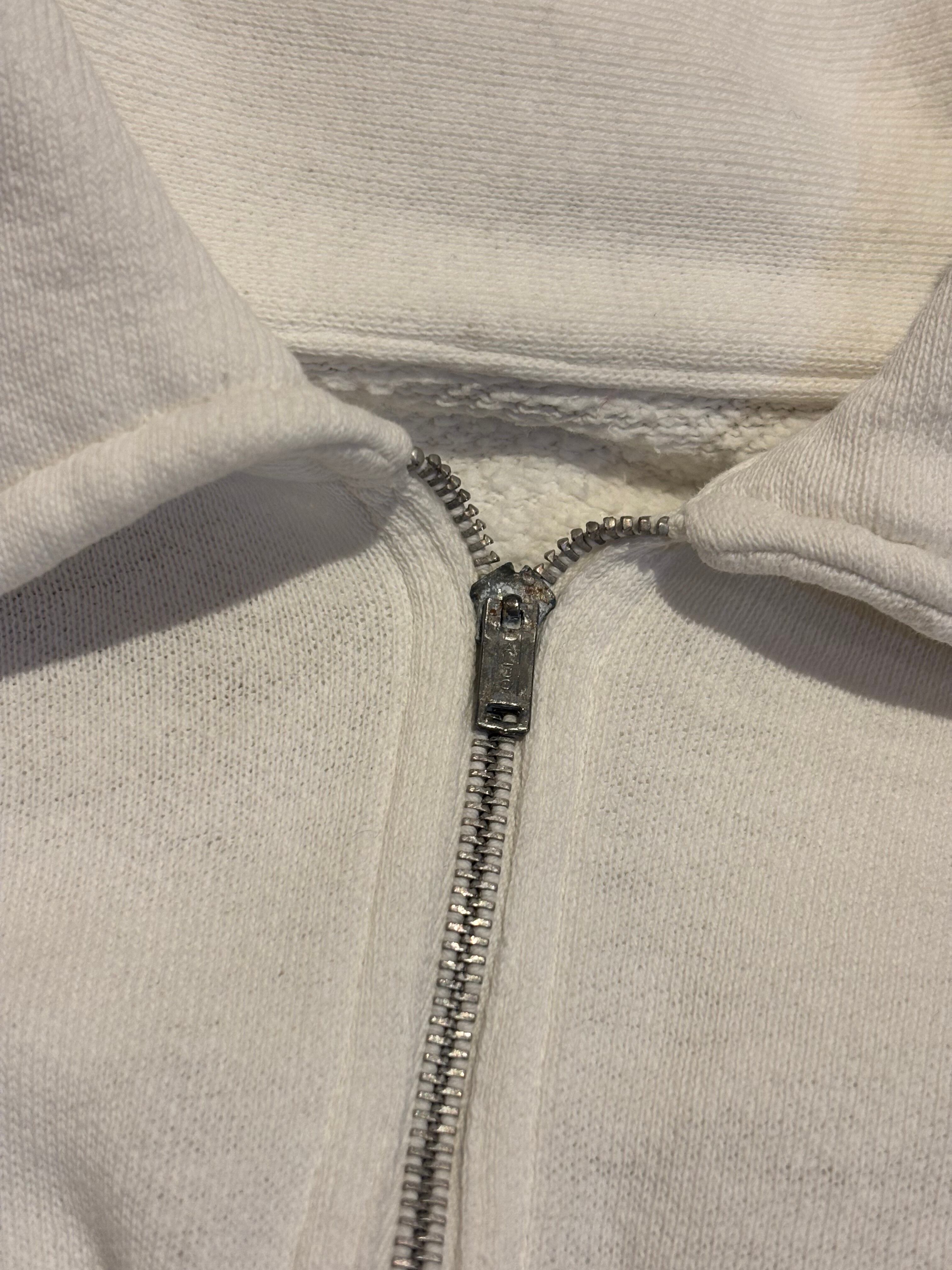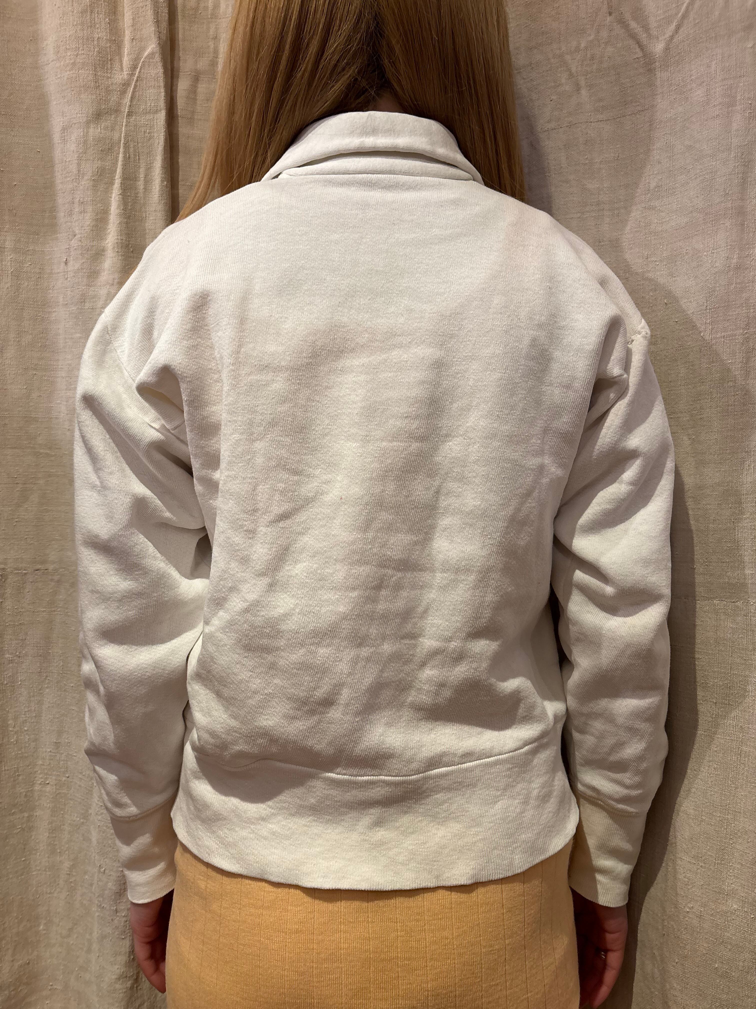 ハーフジップはあまり手に取られる方が少ない印象ですが、個人的には好きで、小さめの襟が愛くるしくて、ジップを開けると少し背伸びした大人な印象が出せて良いです。小さめに着るのがオススメです。