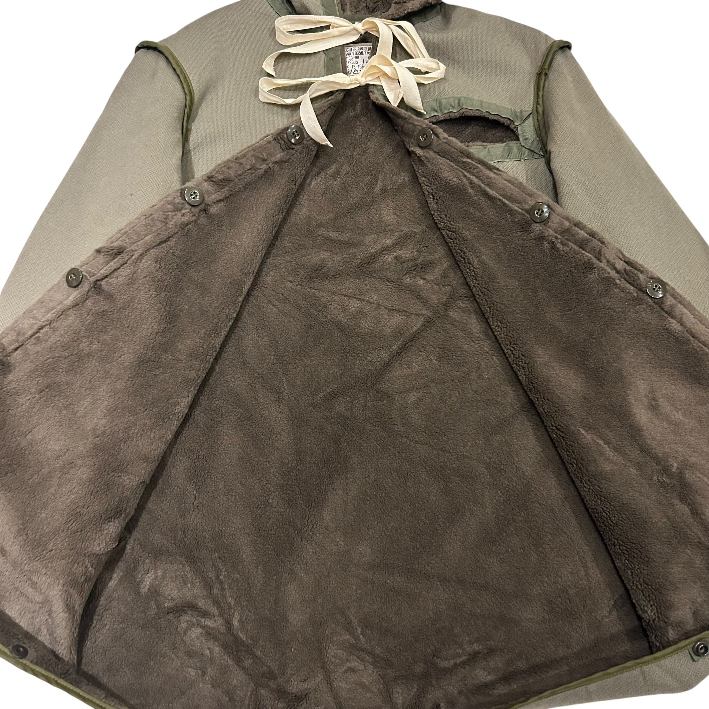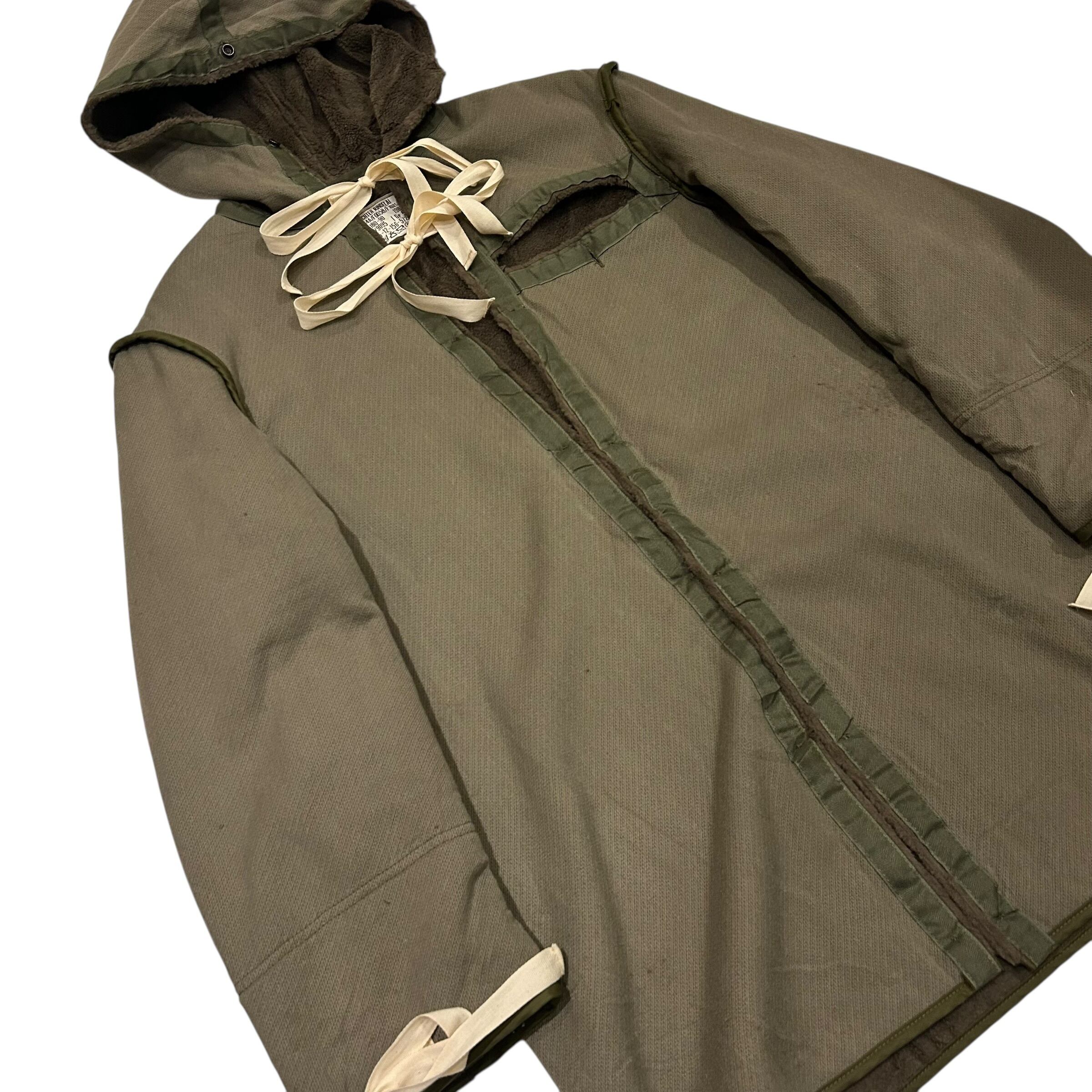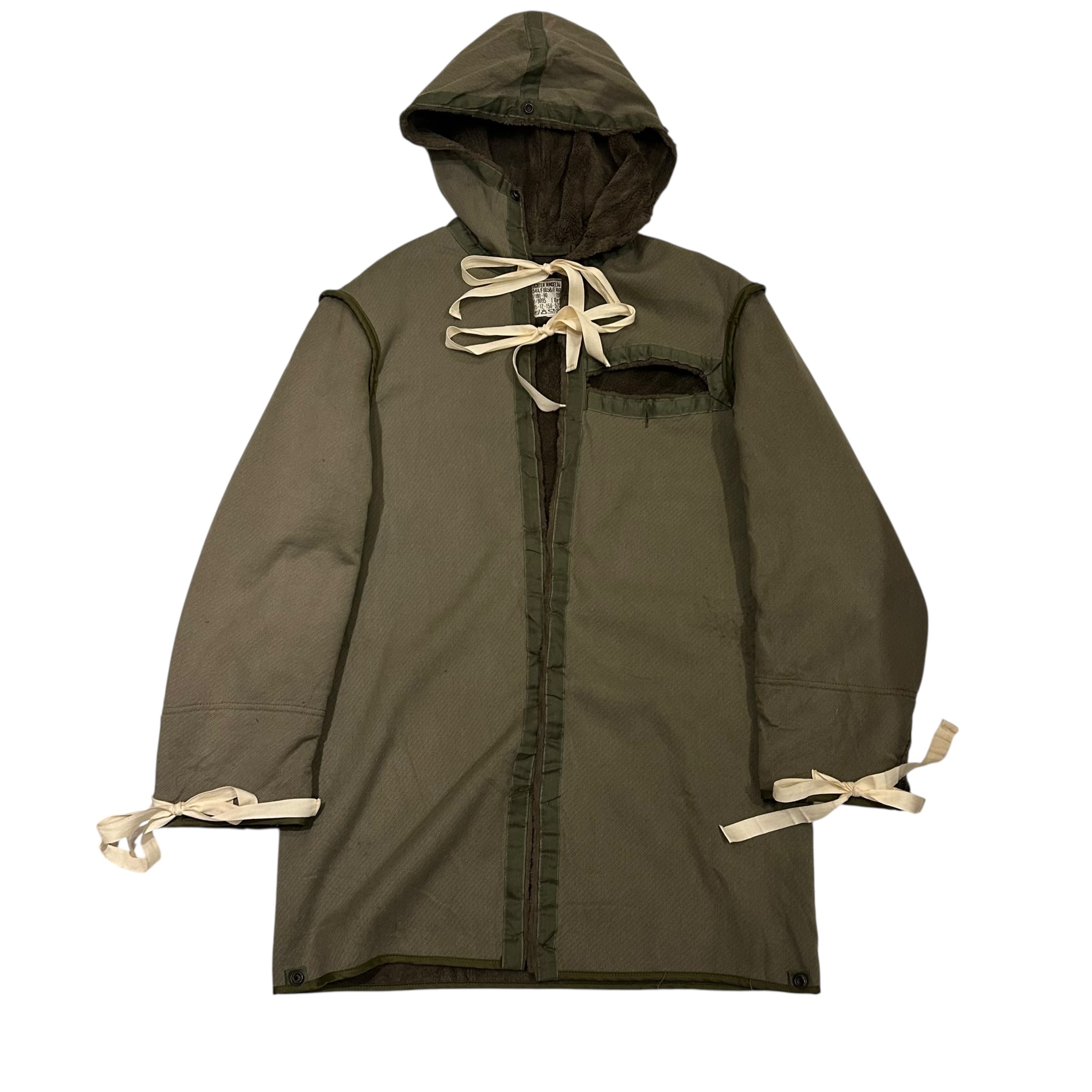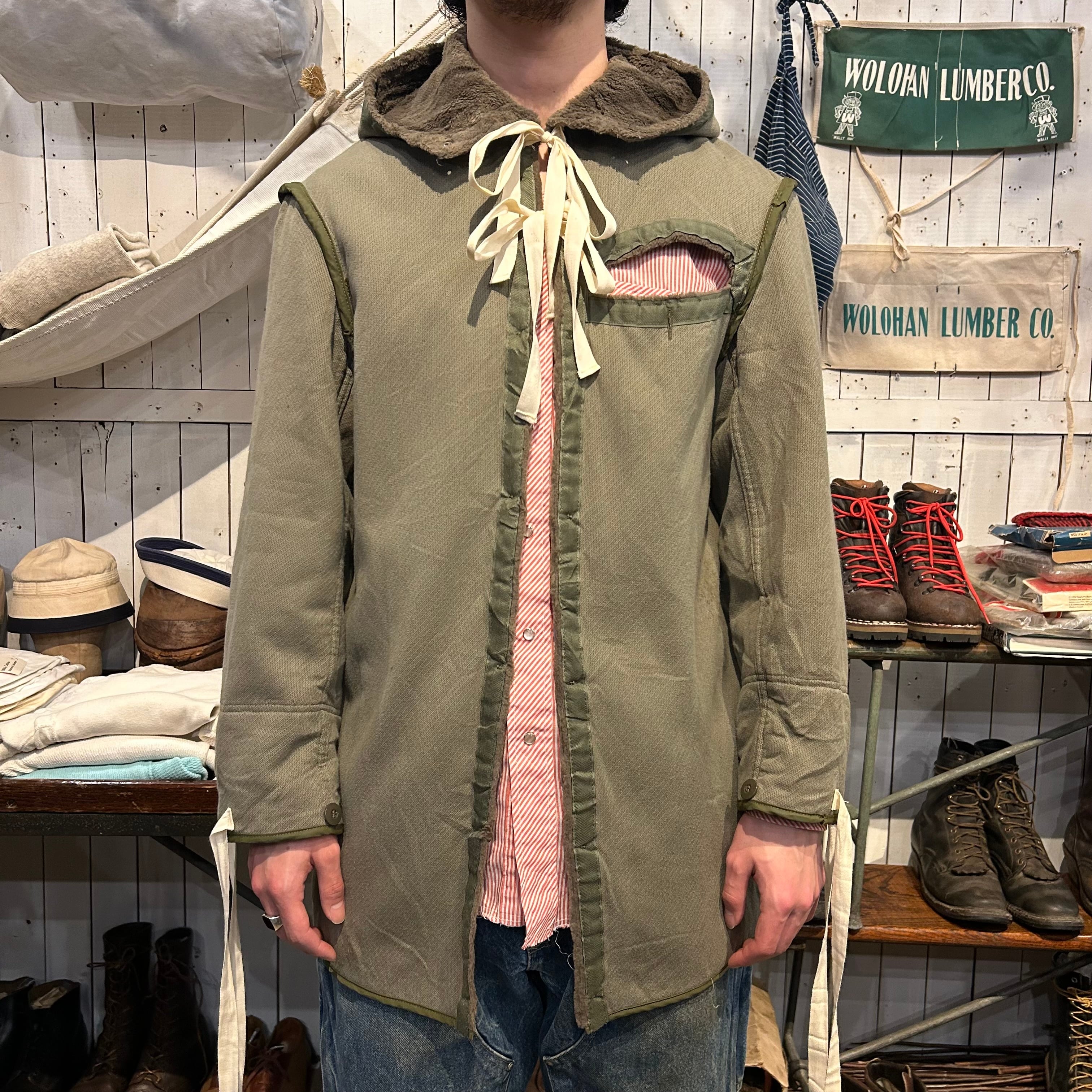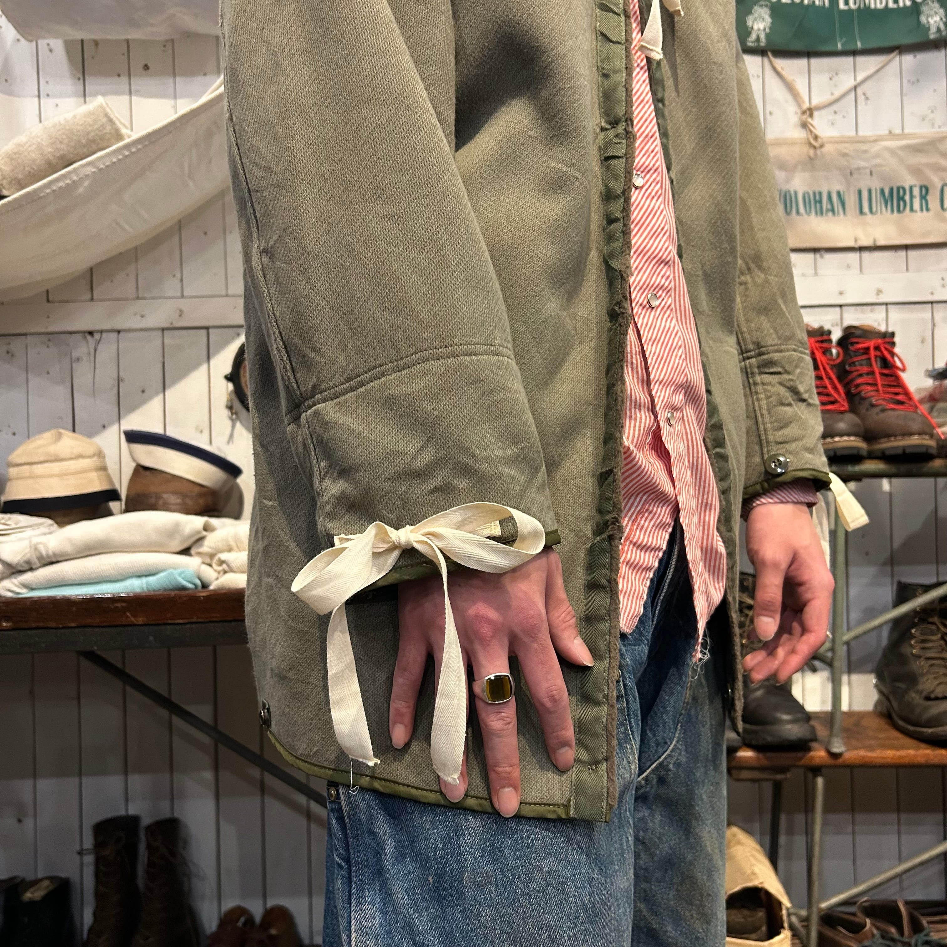 オリジナルは、ライナーだけでは閉めることは出来ない作りでしたが、ミリタリーの野暮ったさを、リボン風に出来るようにし緩和いたしました。女性の方はもちろん、是非メンズの方にも楽しんでいただきたい1着です。