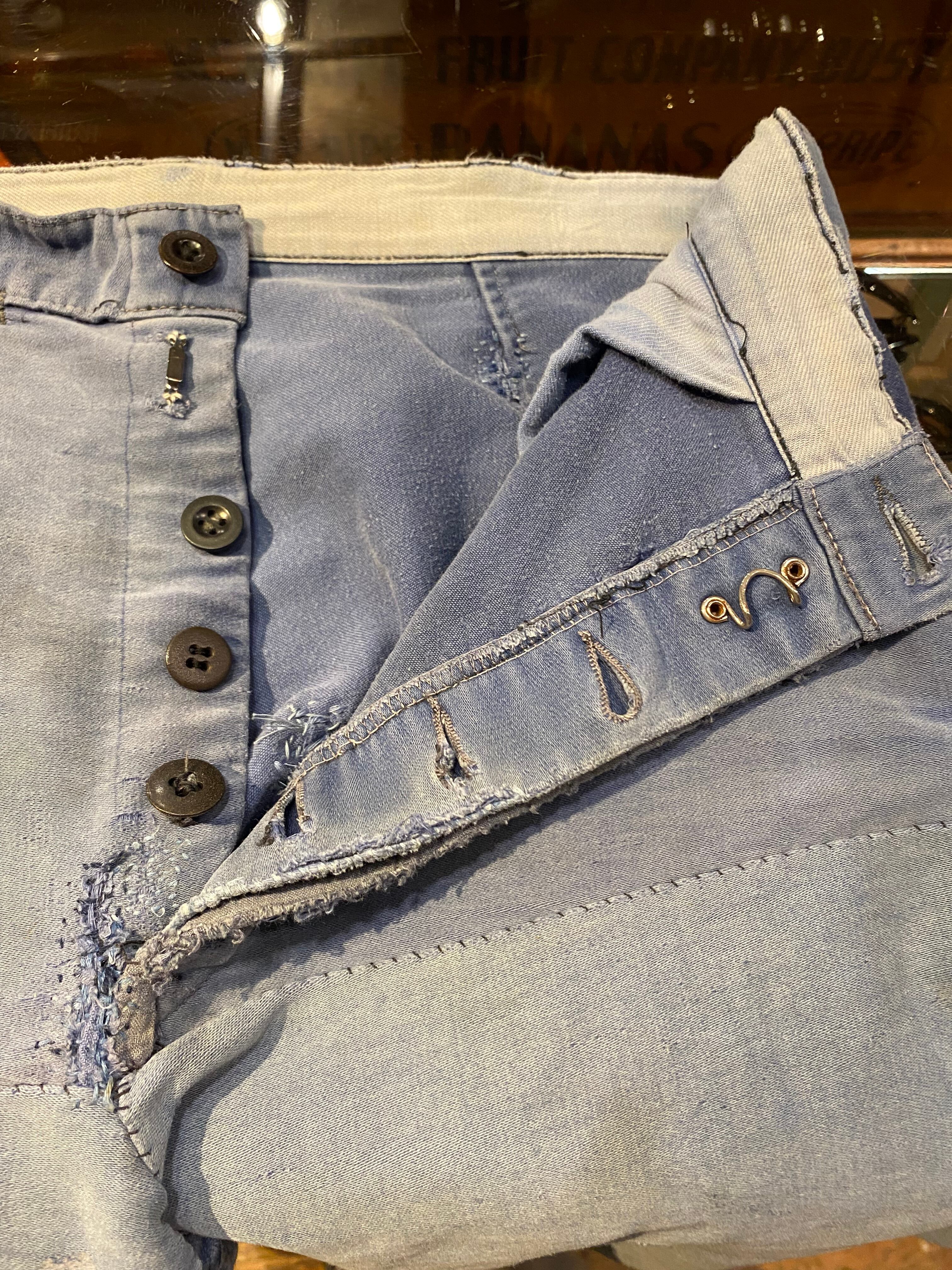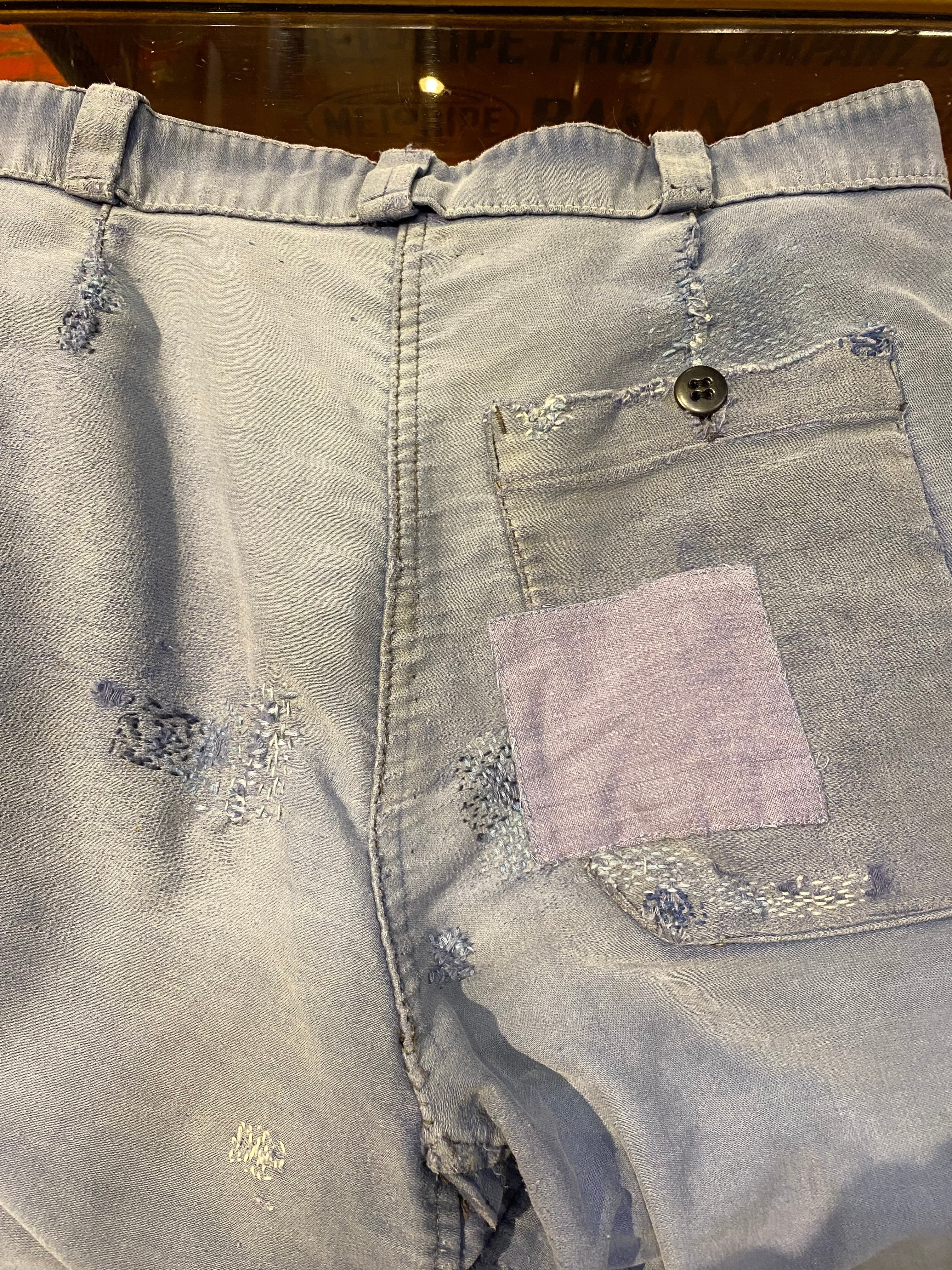 ダブルニーのようなパッチワークになってます。パッチワークになっている箇所もモールスキン生地で、本体の色味と近く、パッチワークですが、全体的に馴染んでいるのが格好良いです。