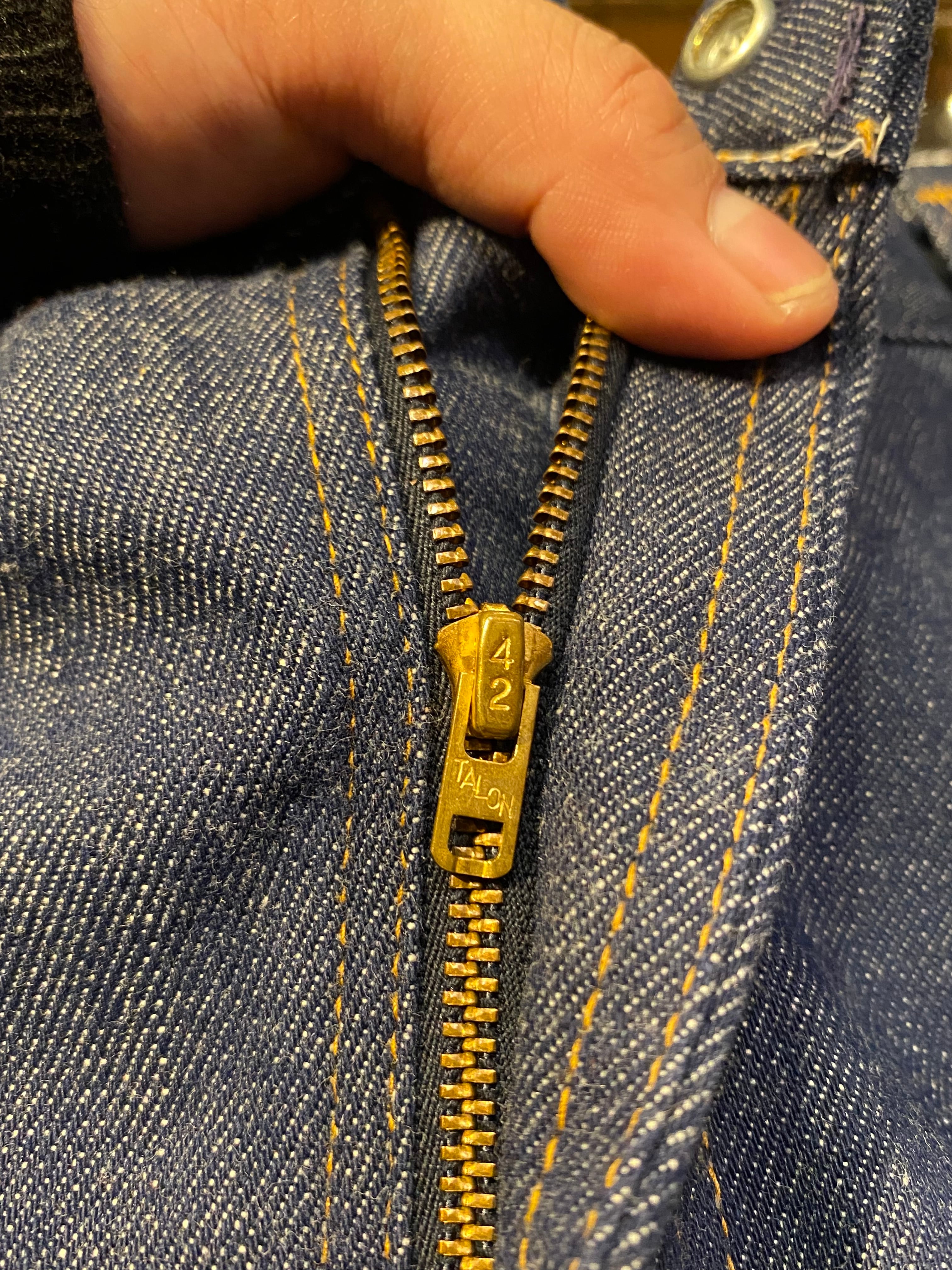 ライトオンスで薄くてサラッと履きやすい生地です。ジッパーは42TALONです。
