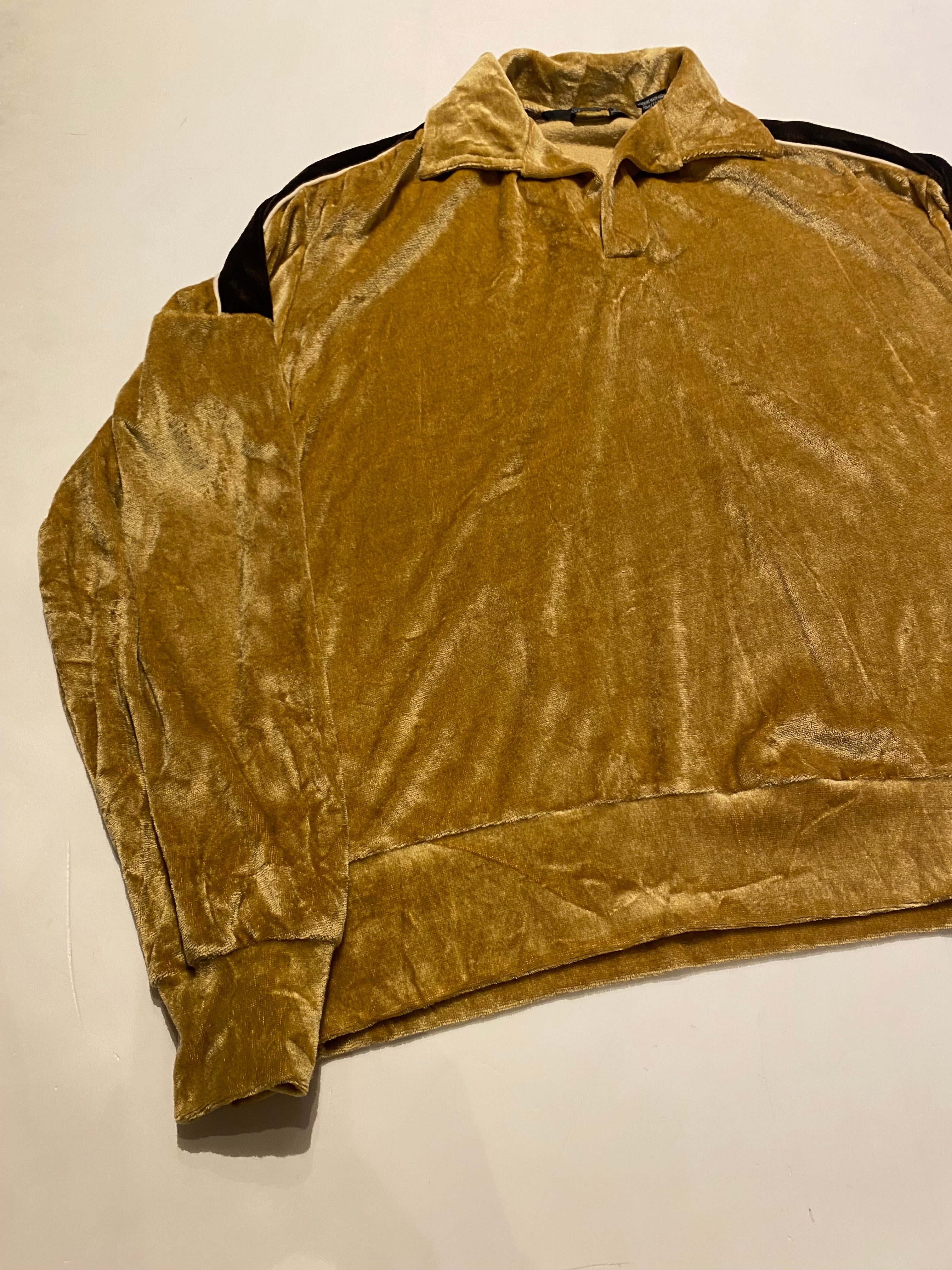 やや薄めのベロア生地で、とても柔らかいので、大きめに着ても落ち感がとても綺麗です。