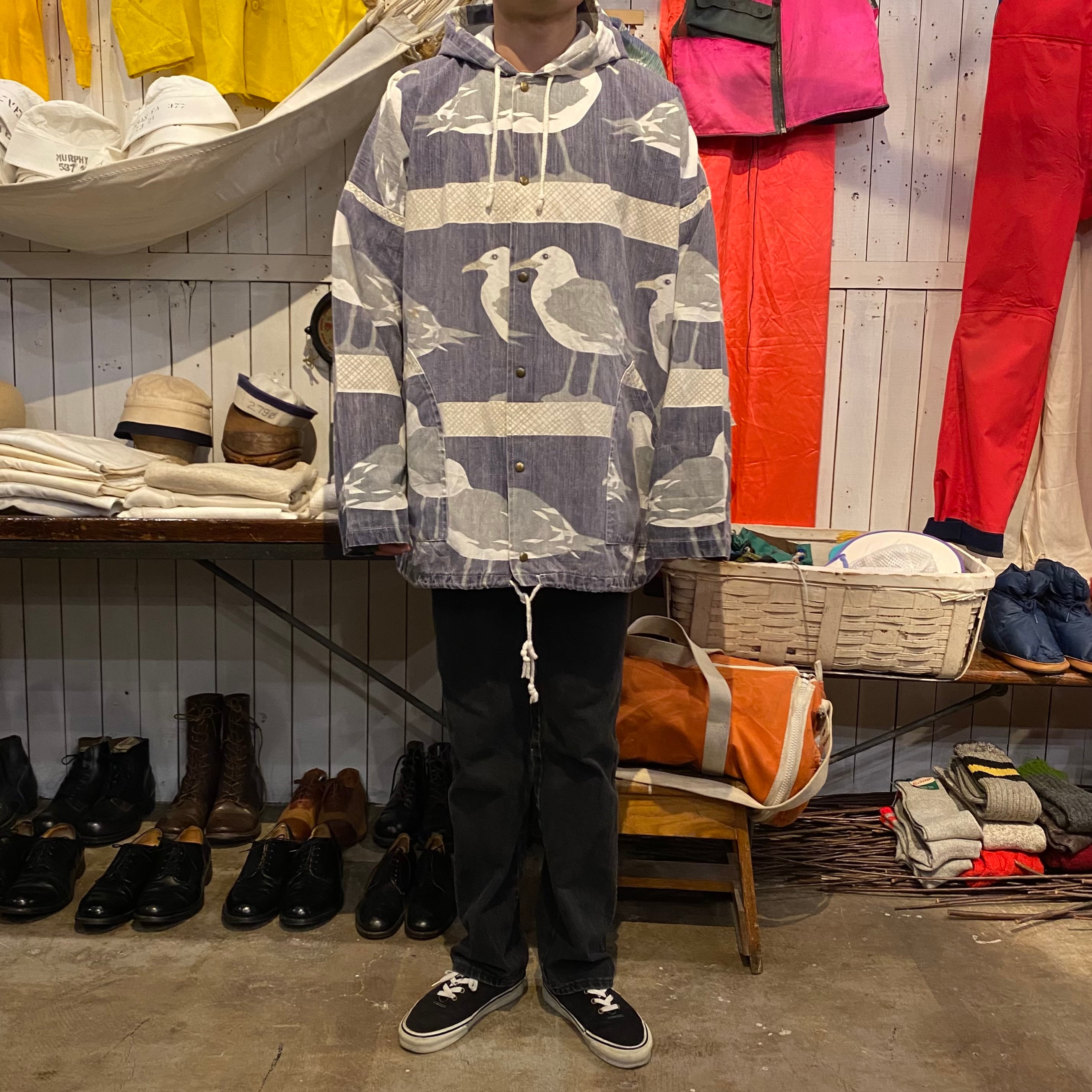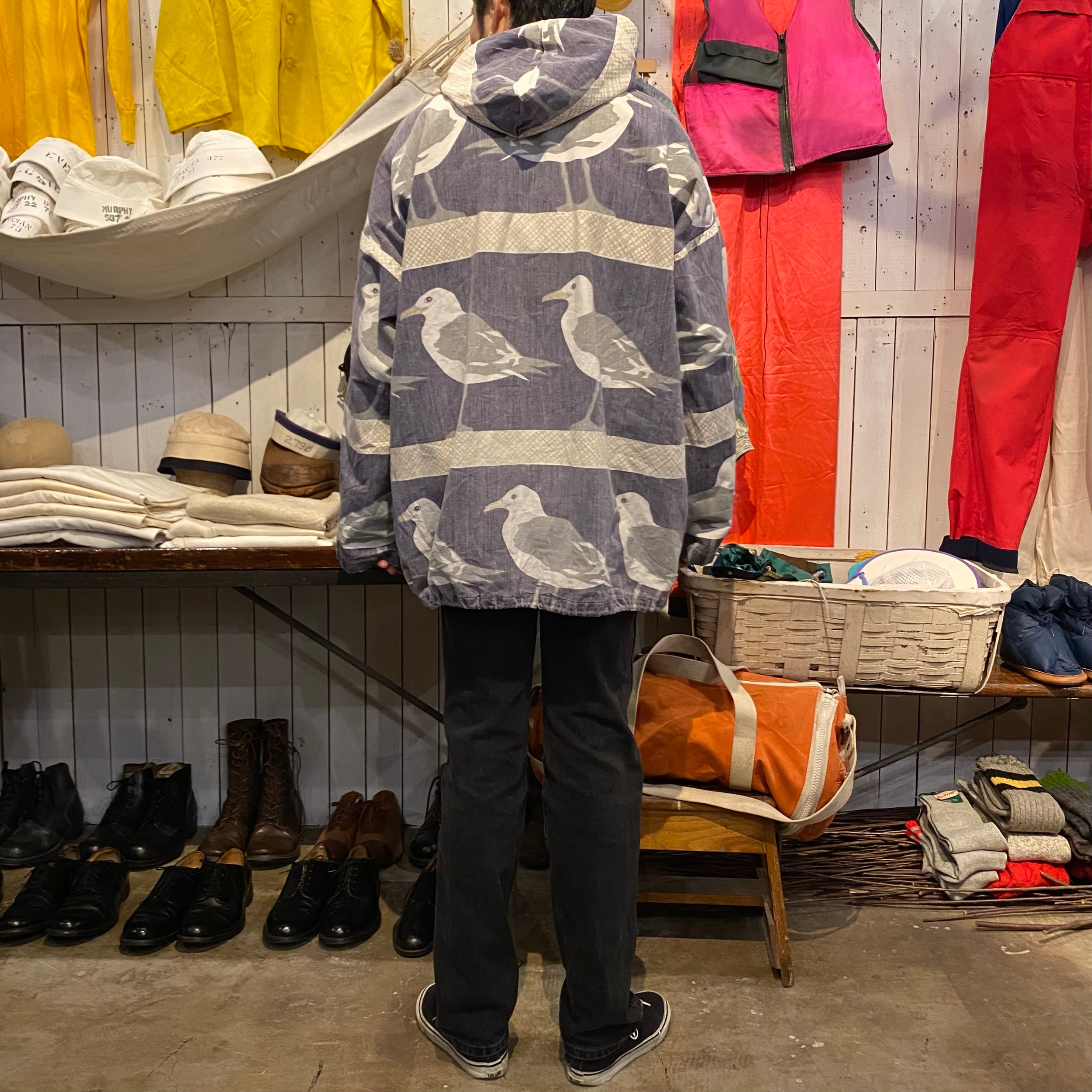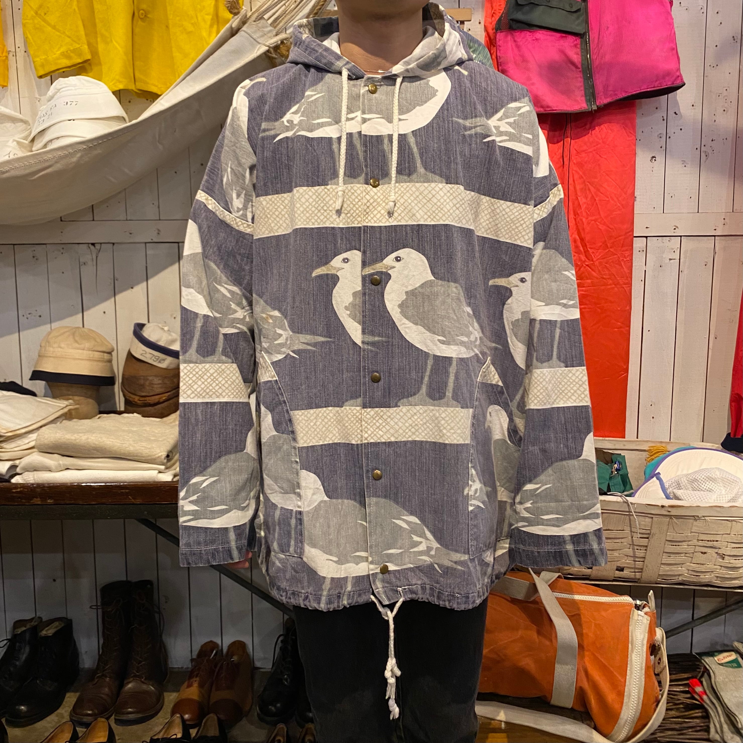 80年代後半から90年代くらいのミシガンラグの総柄パーカーです。カモメ柄です。