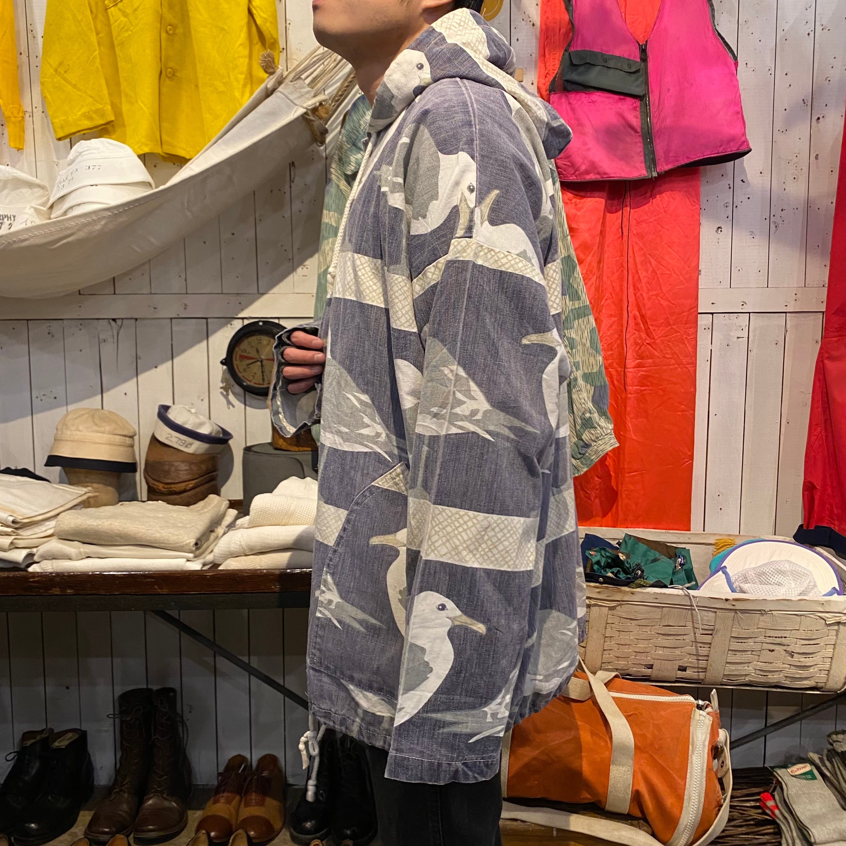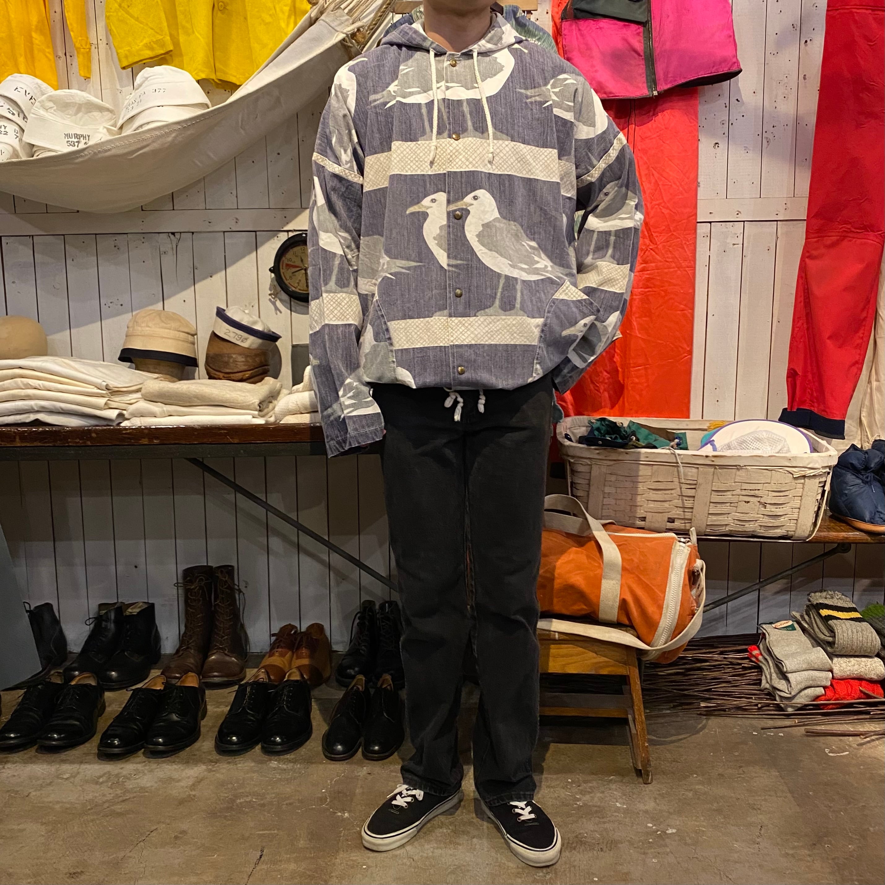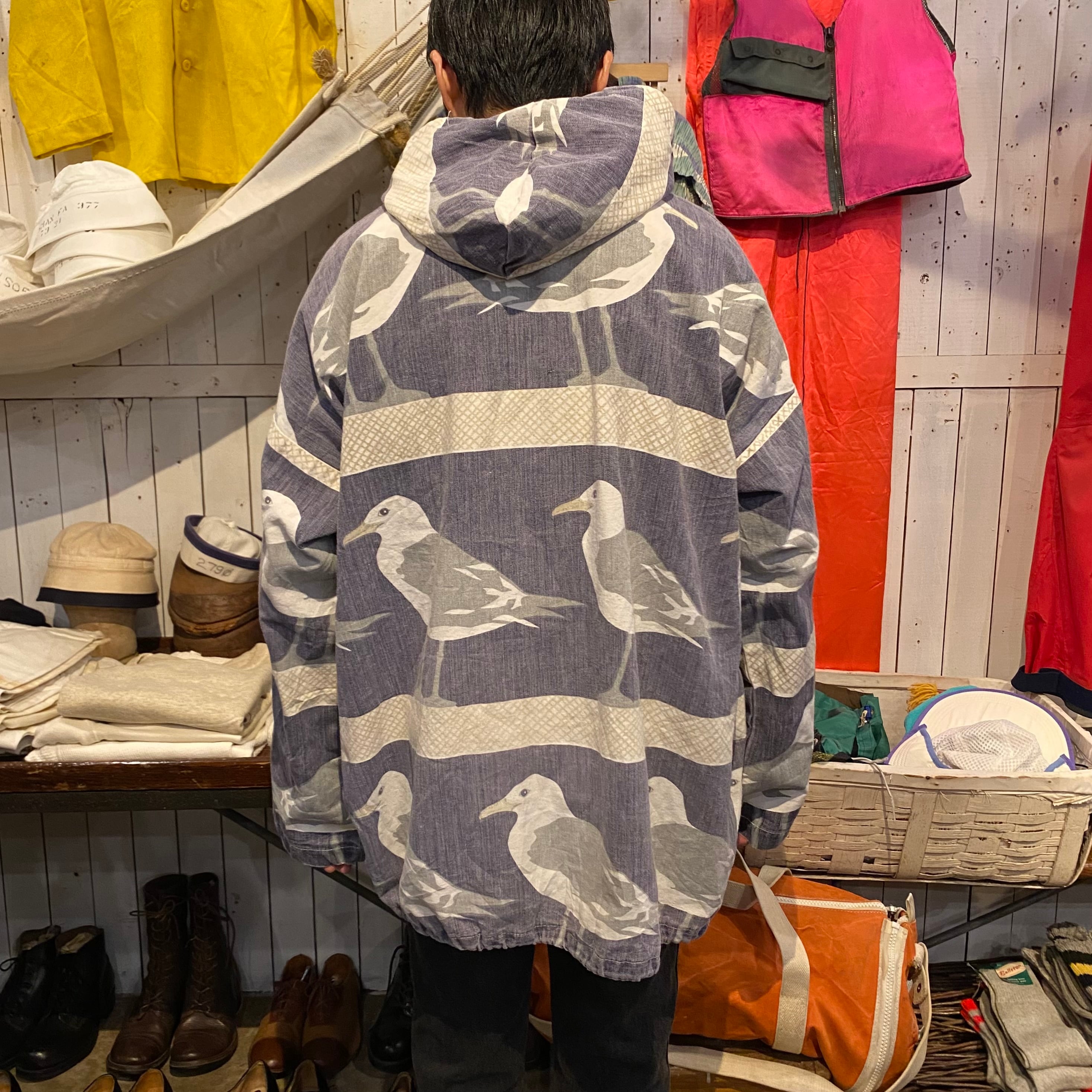 80年代後半から90年代くらいのミシガンラグの総柄パーカーです。カモメ柄です。