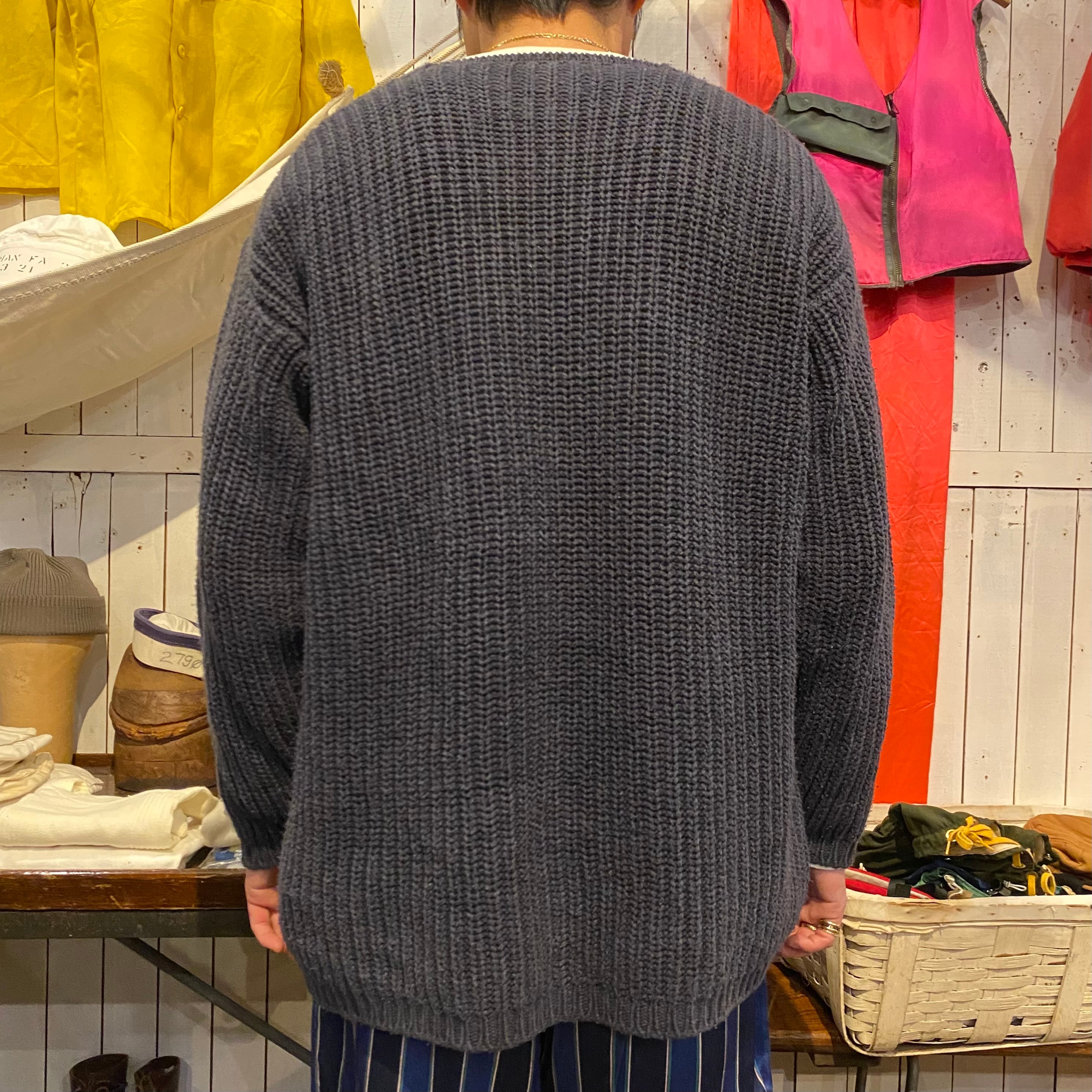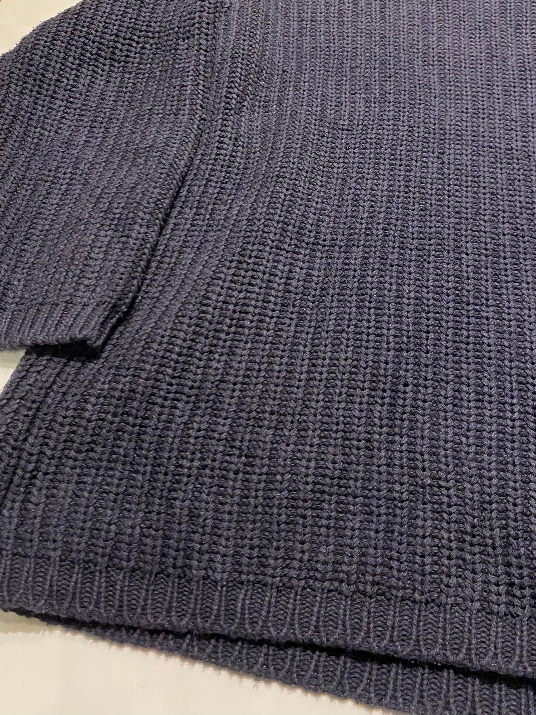シンプルなネイビーのVネックです。緩やかなVネックで着やすい印象です。