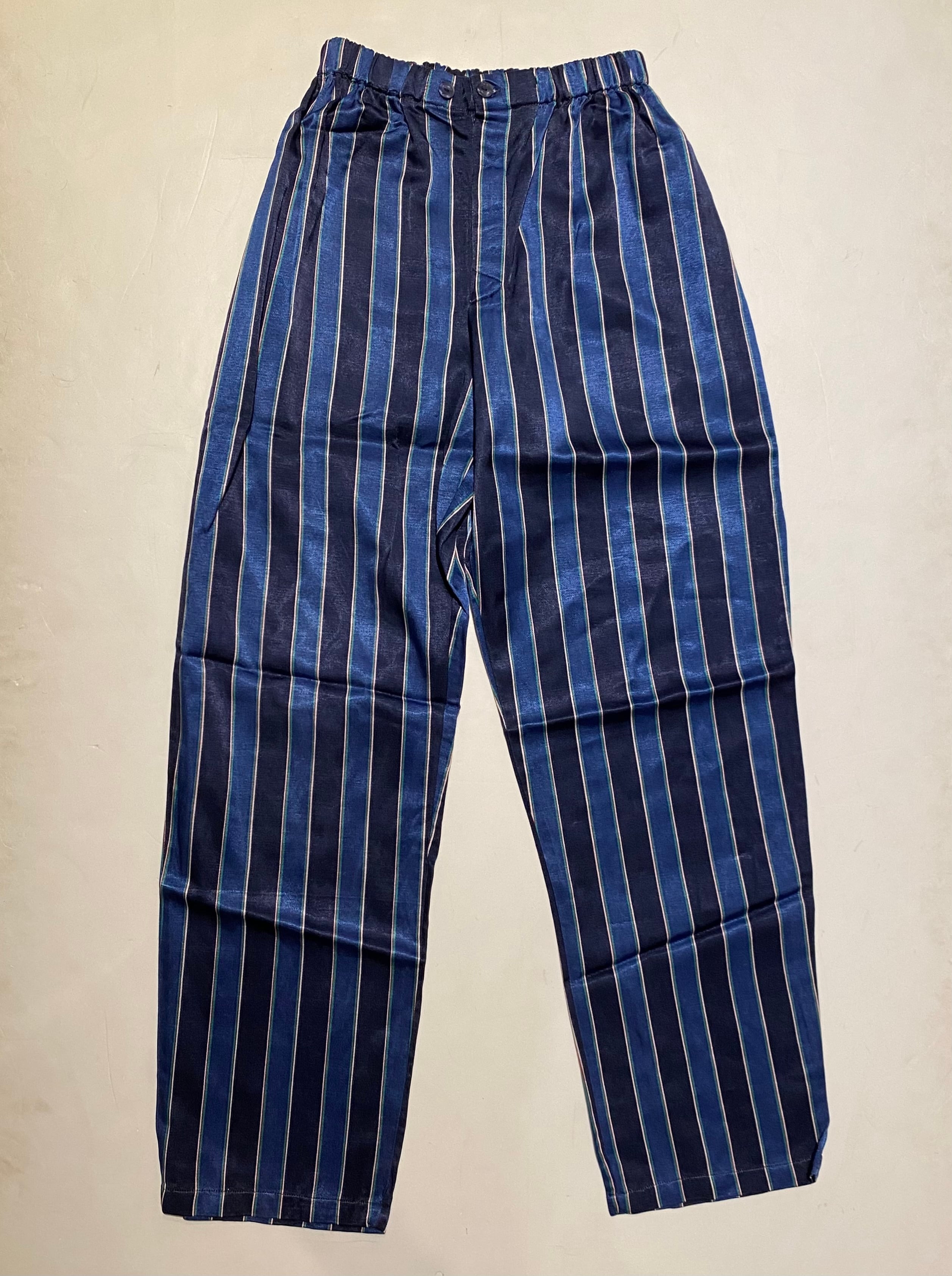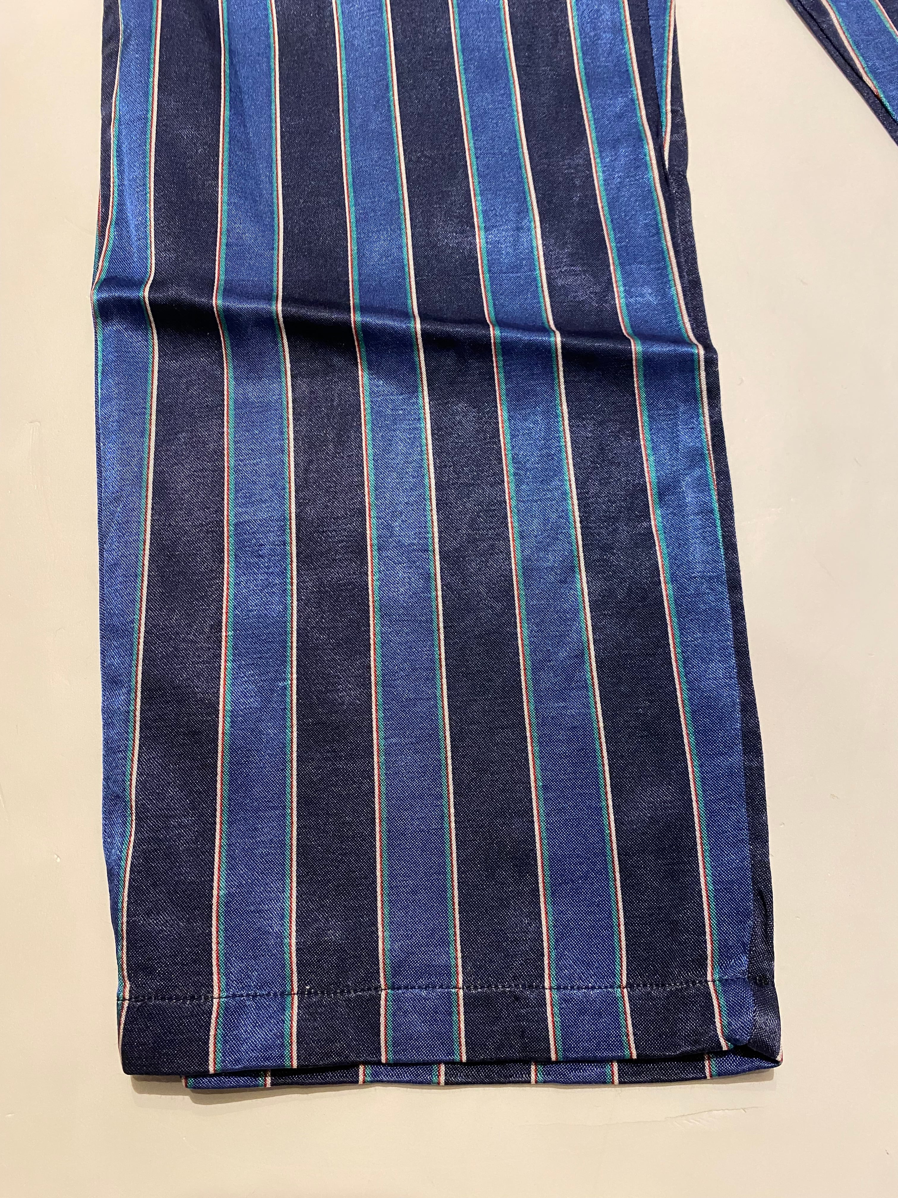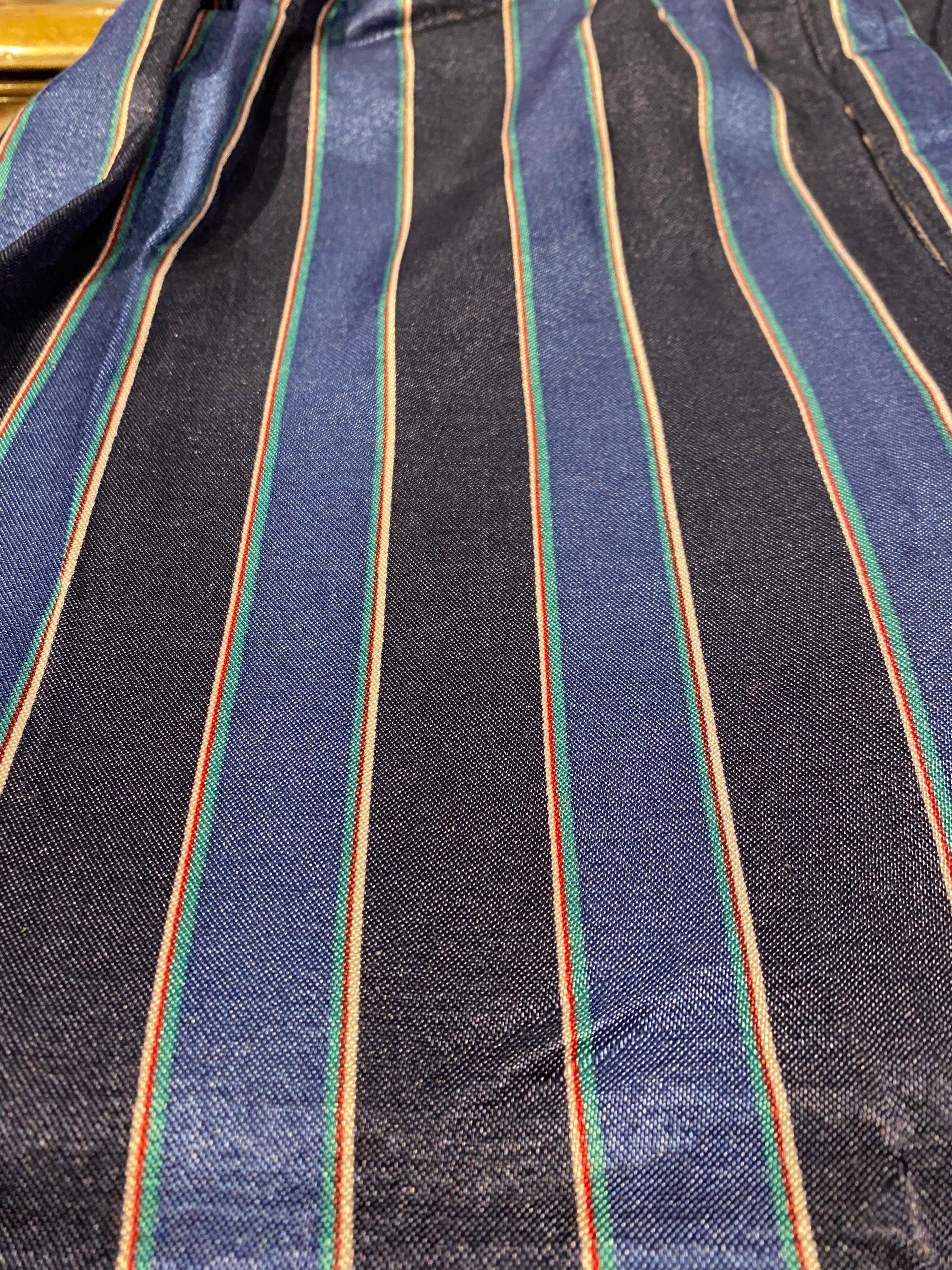 ブルーネイビーのストライプに、白、赤、グリーンの細いストライプも入っております。