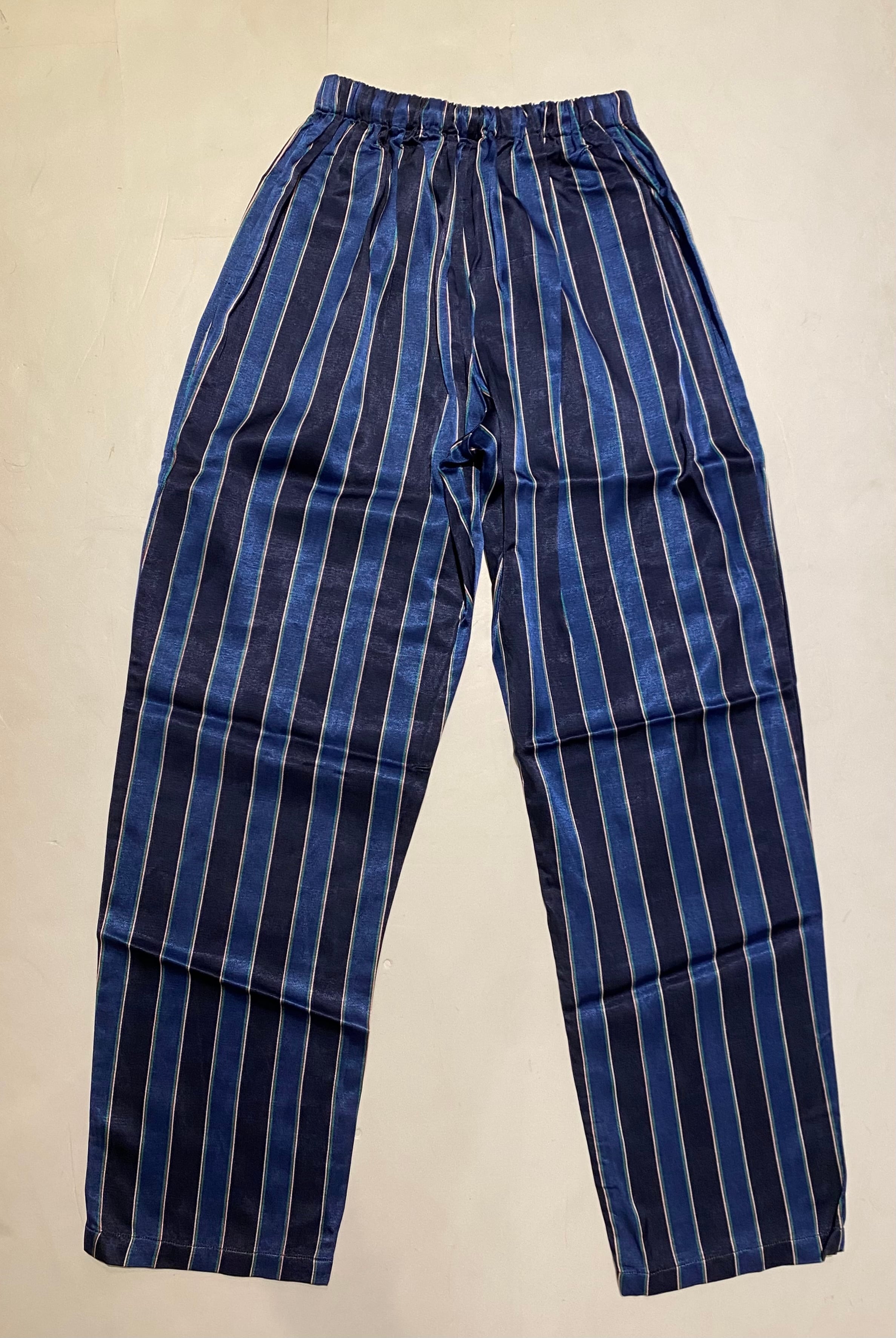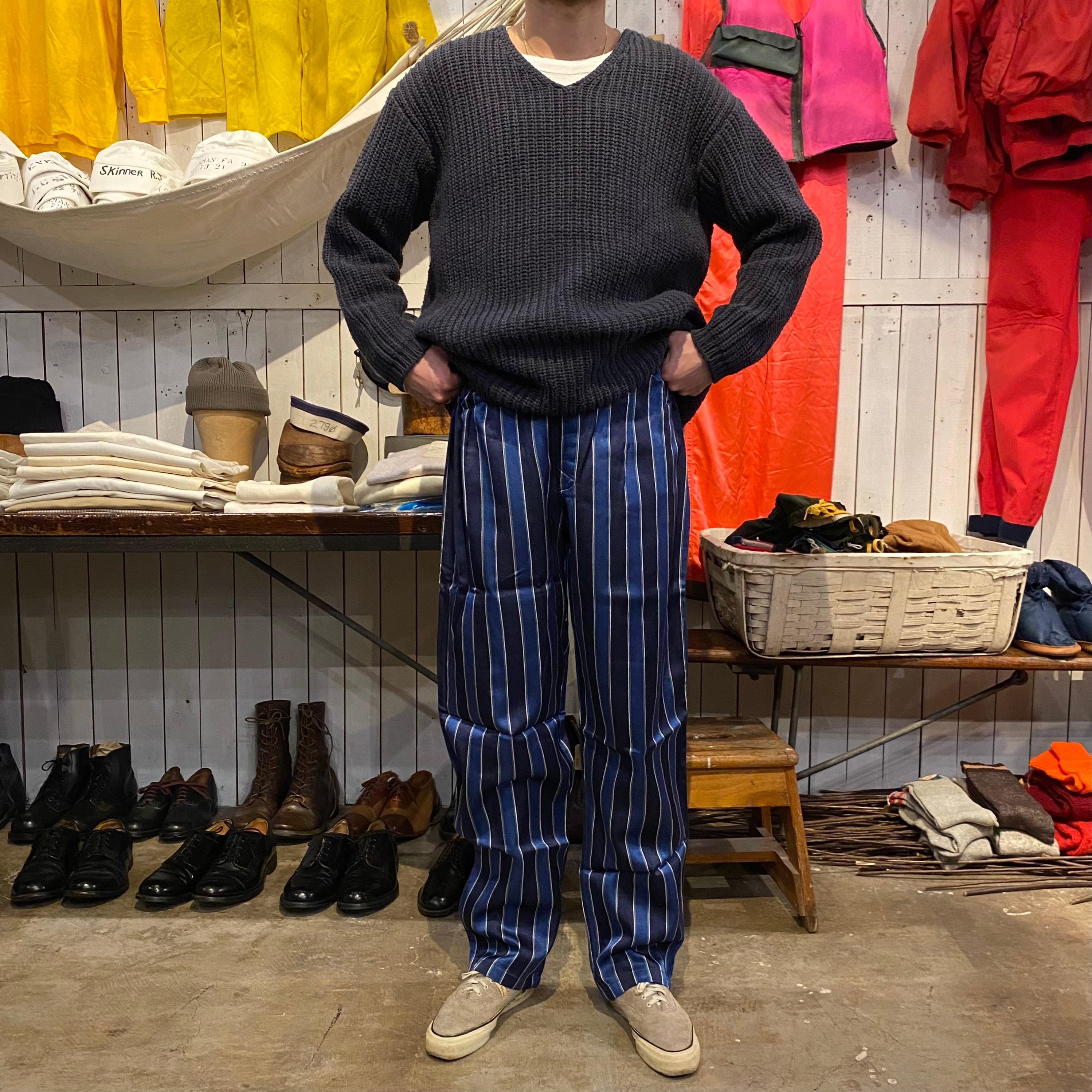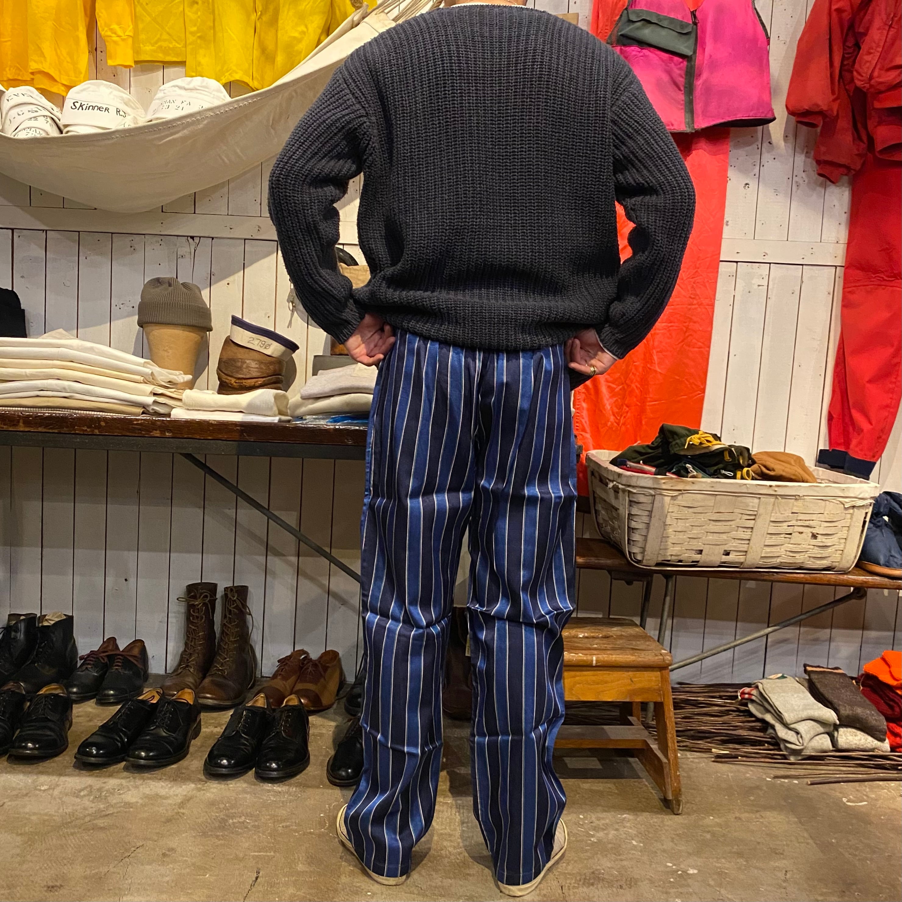 ブルーネイビーのストライプに、白、赤、グリーンの細いストライプも入っております。