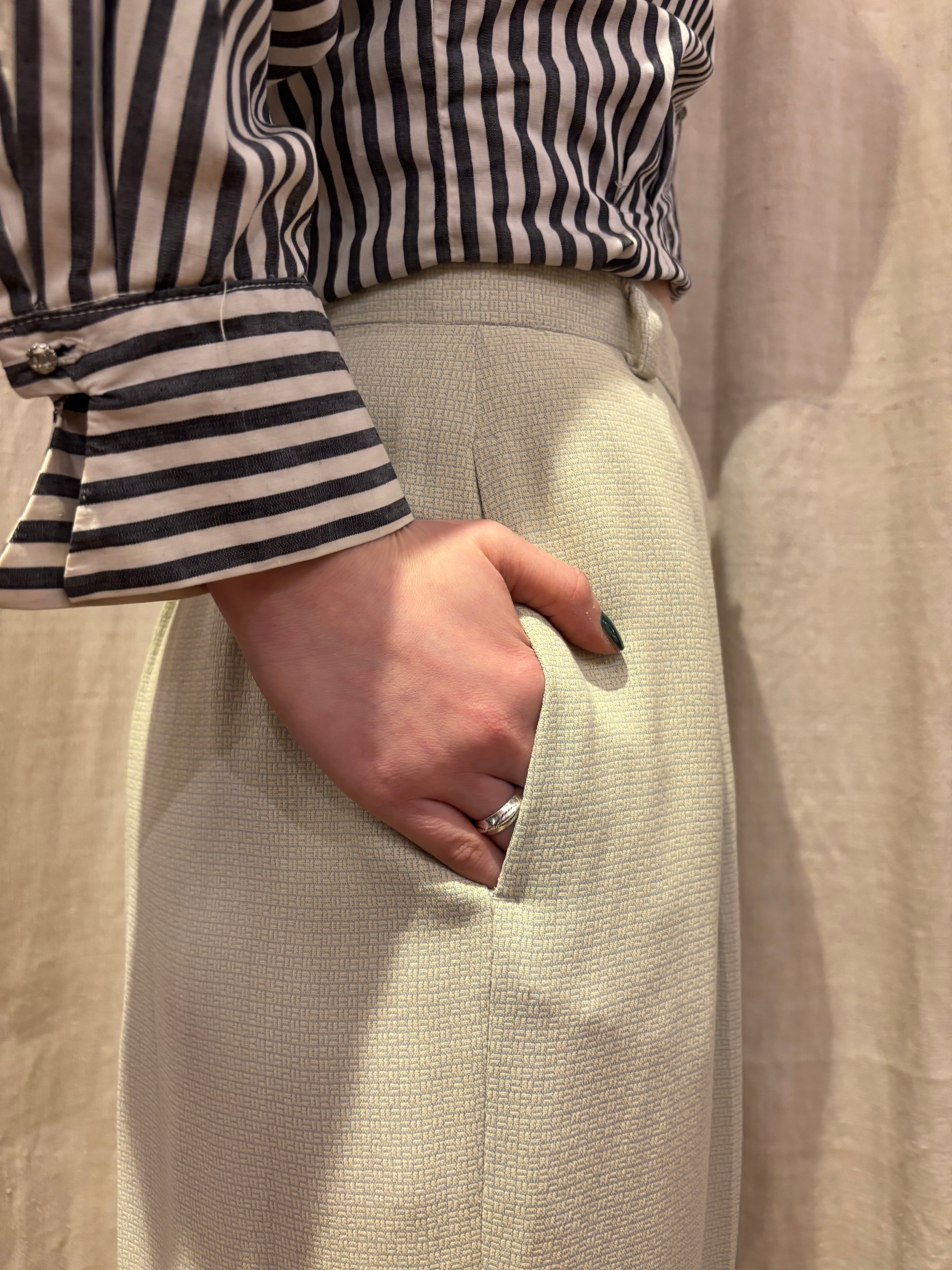 柔らかな織りの生地感と、上品なライトカラーが印象的な一本。