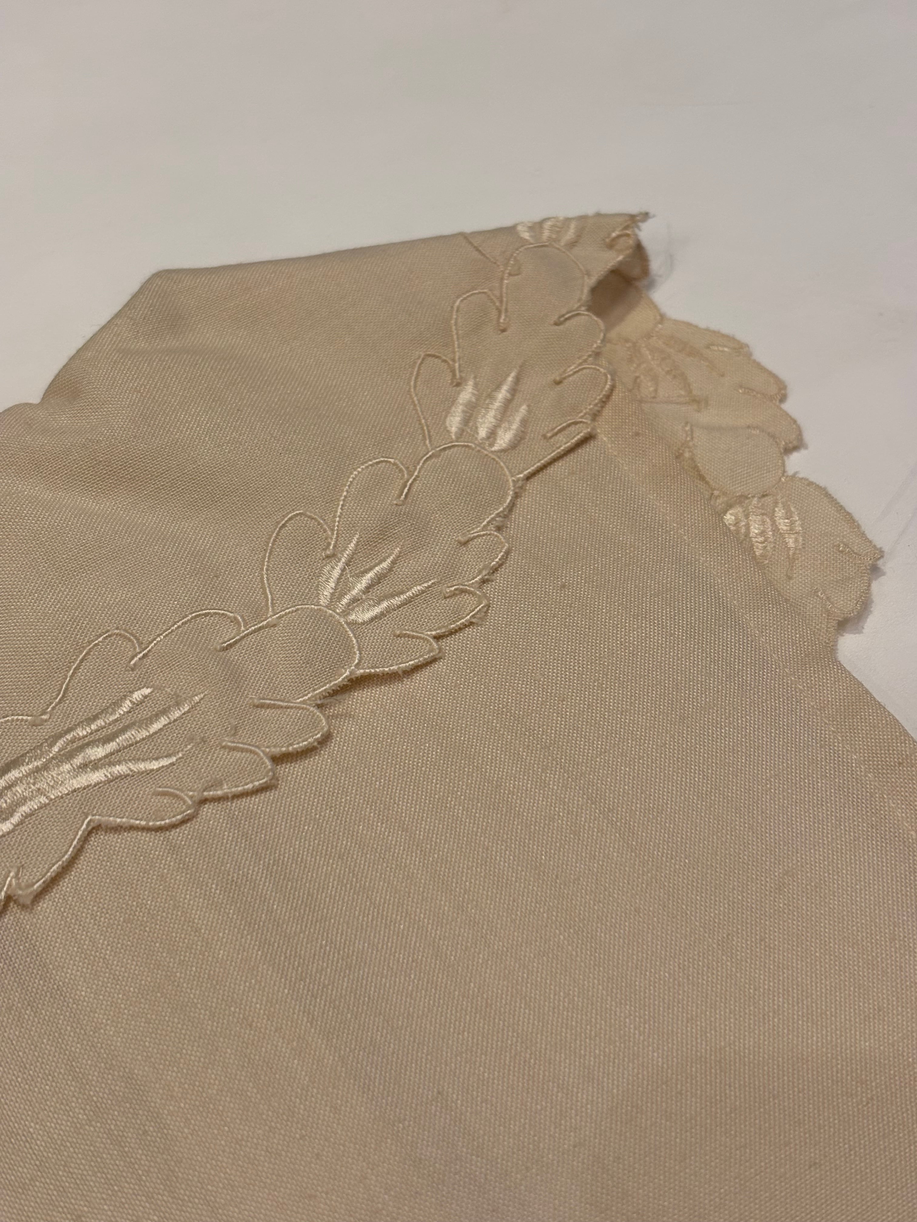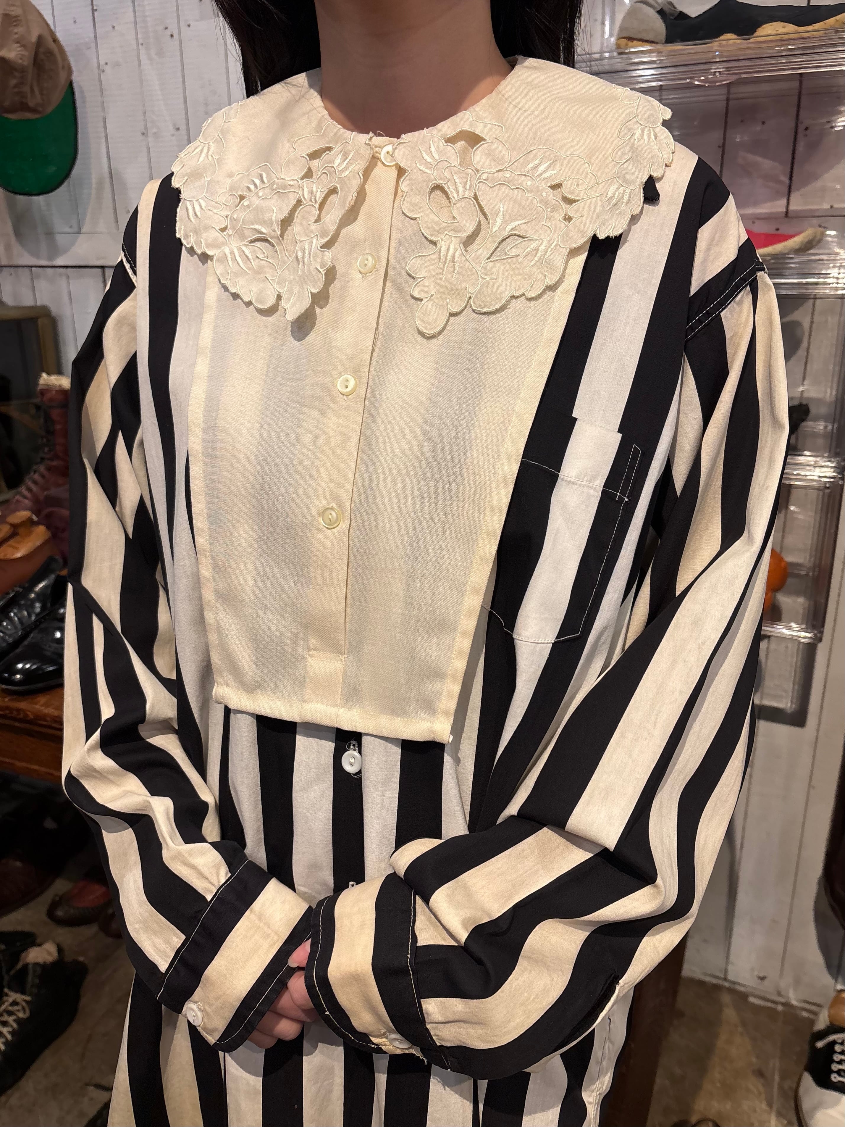カットワークレースの付け襟です。程良くハリのある素材感で、大きなカットワークの襟は光沢感のある糸で刺繍されており上品な印象です。コットン素材で、ウエストなどサイズを問いませんので、Tシャツやワンピースからニットまで、シーズン問わずにご使用いただけます。普段のコーディネートのアクセントしていかがでしょうか。