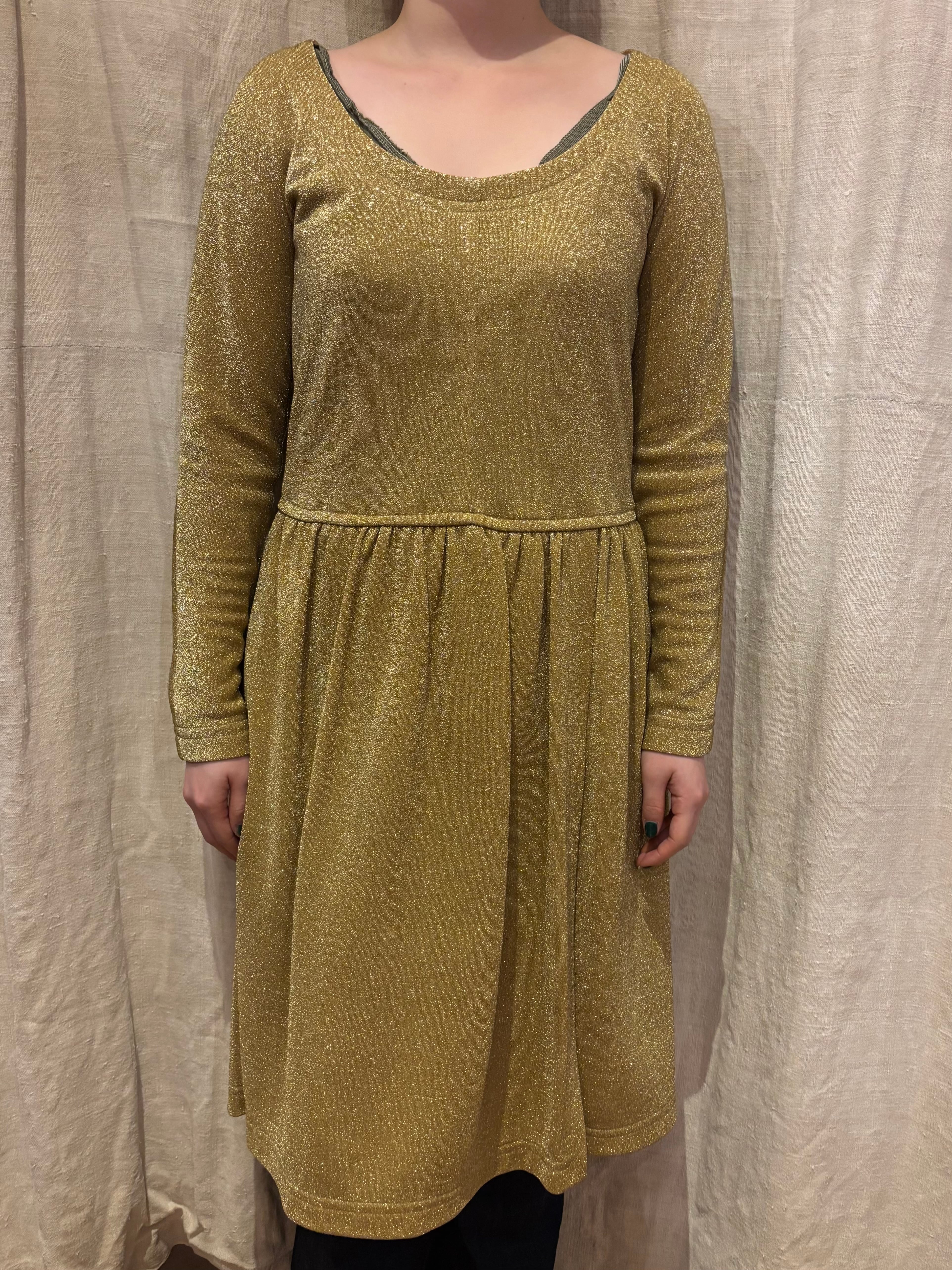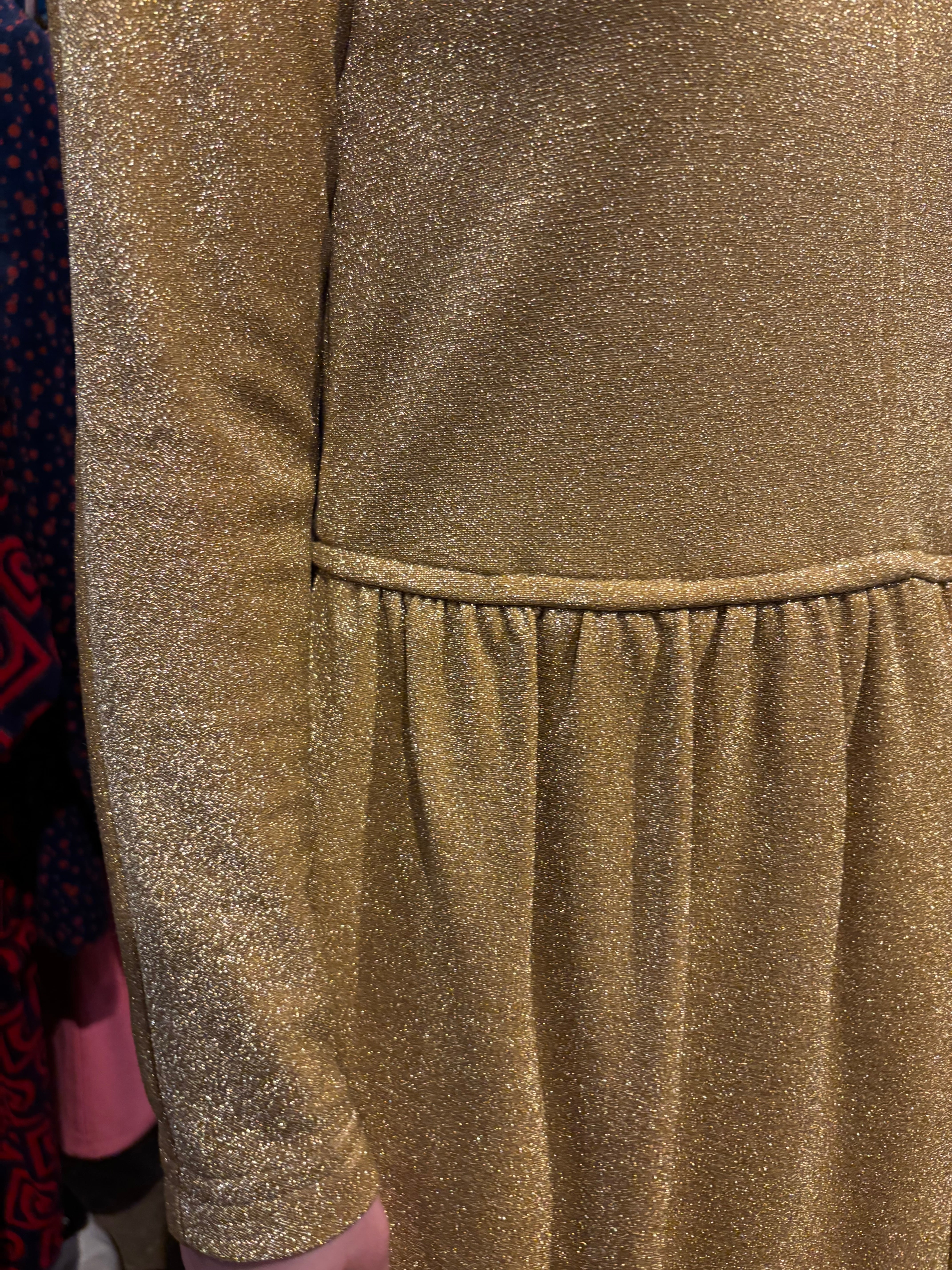 繊細に輝くラメが全体に施され、動くたびに上品なきらめきを放ちます。