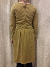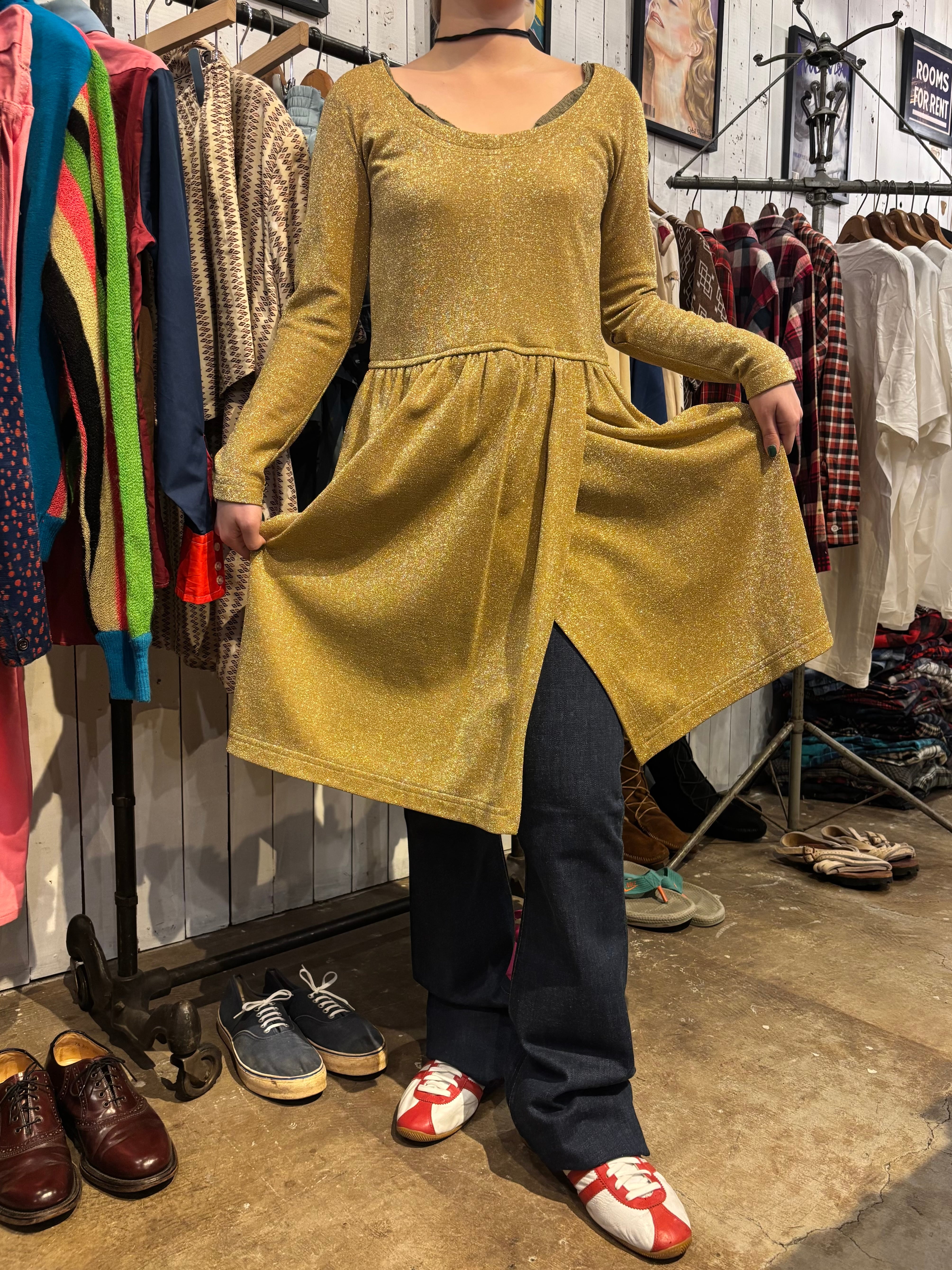 ラウンドネックと長袖のシンプルなデザインが、洗練された印象を演出し、ウエストから広がるフレアシルエットが女性らしさを引き立てます。