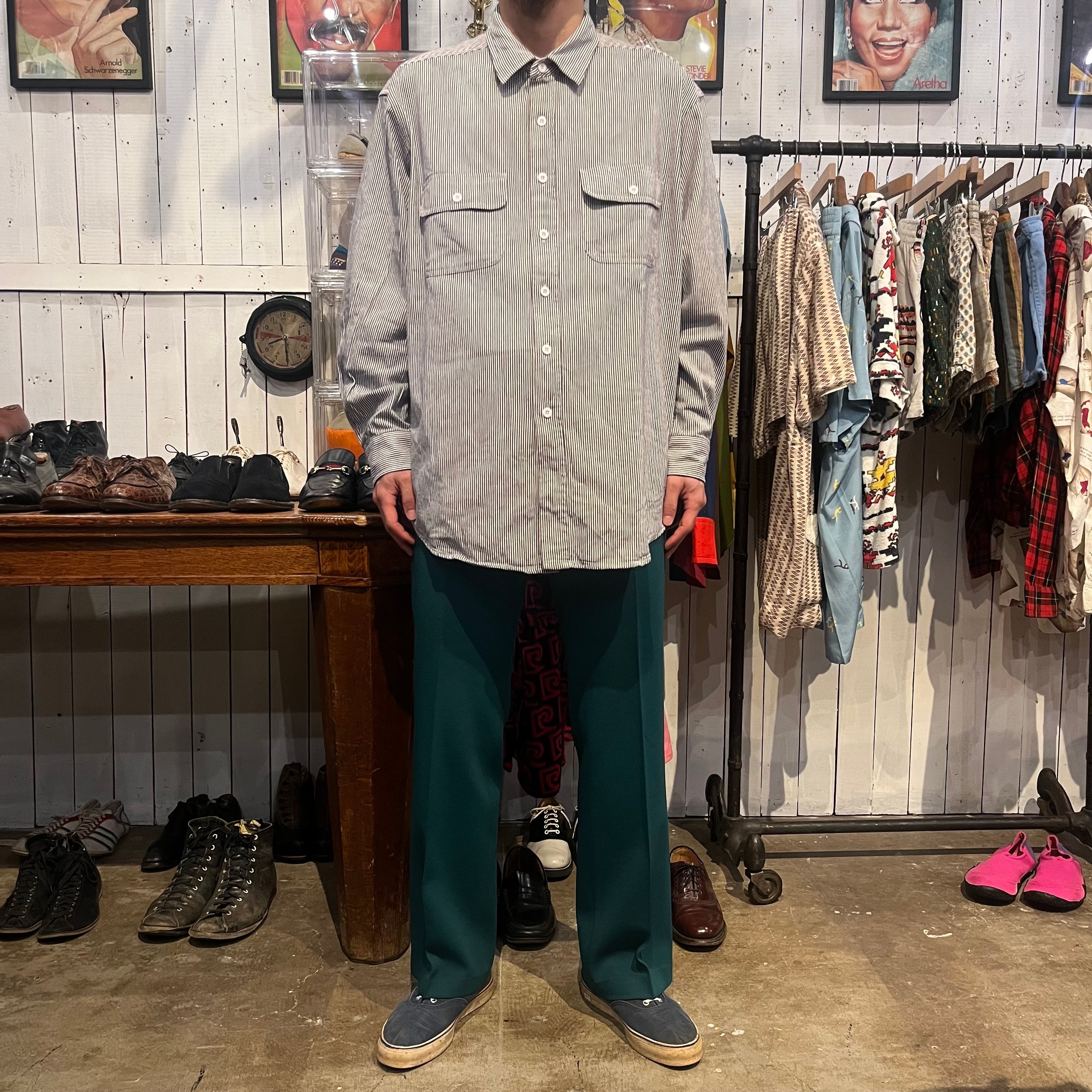 主張の激しくないストライプをまさに体現してる1着。XL表記で、かなり大きめです。