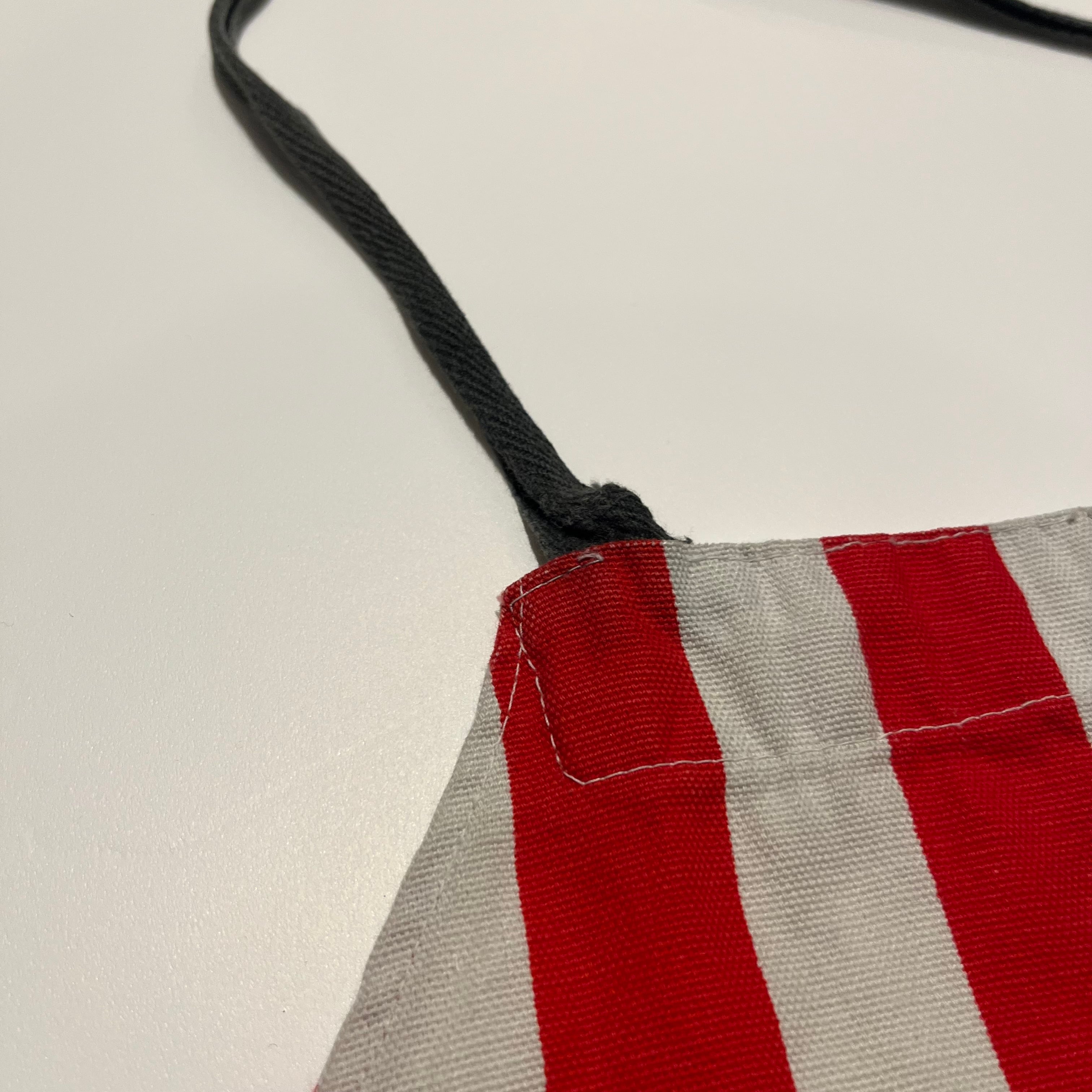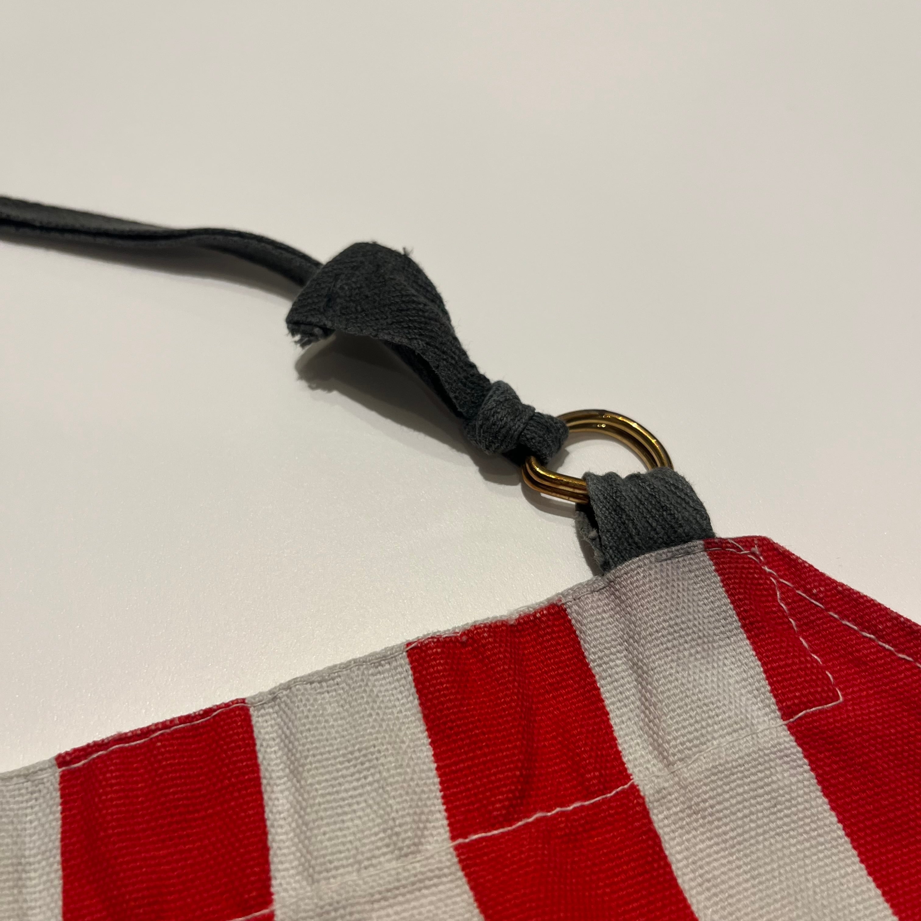 首のところには小さいクリップが二つついていて、紐の接着面にも裏地が当てられているので強度があります。