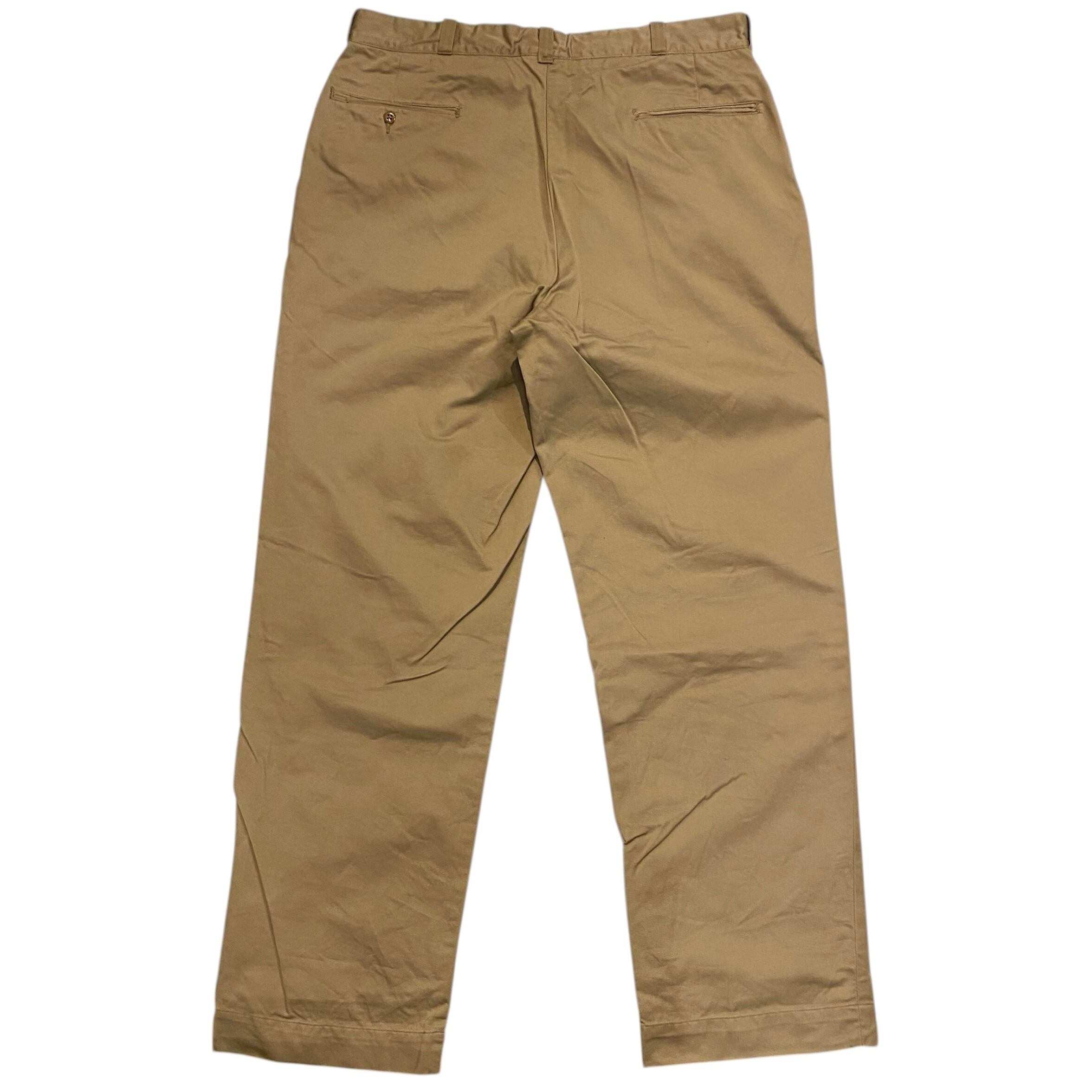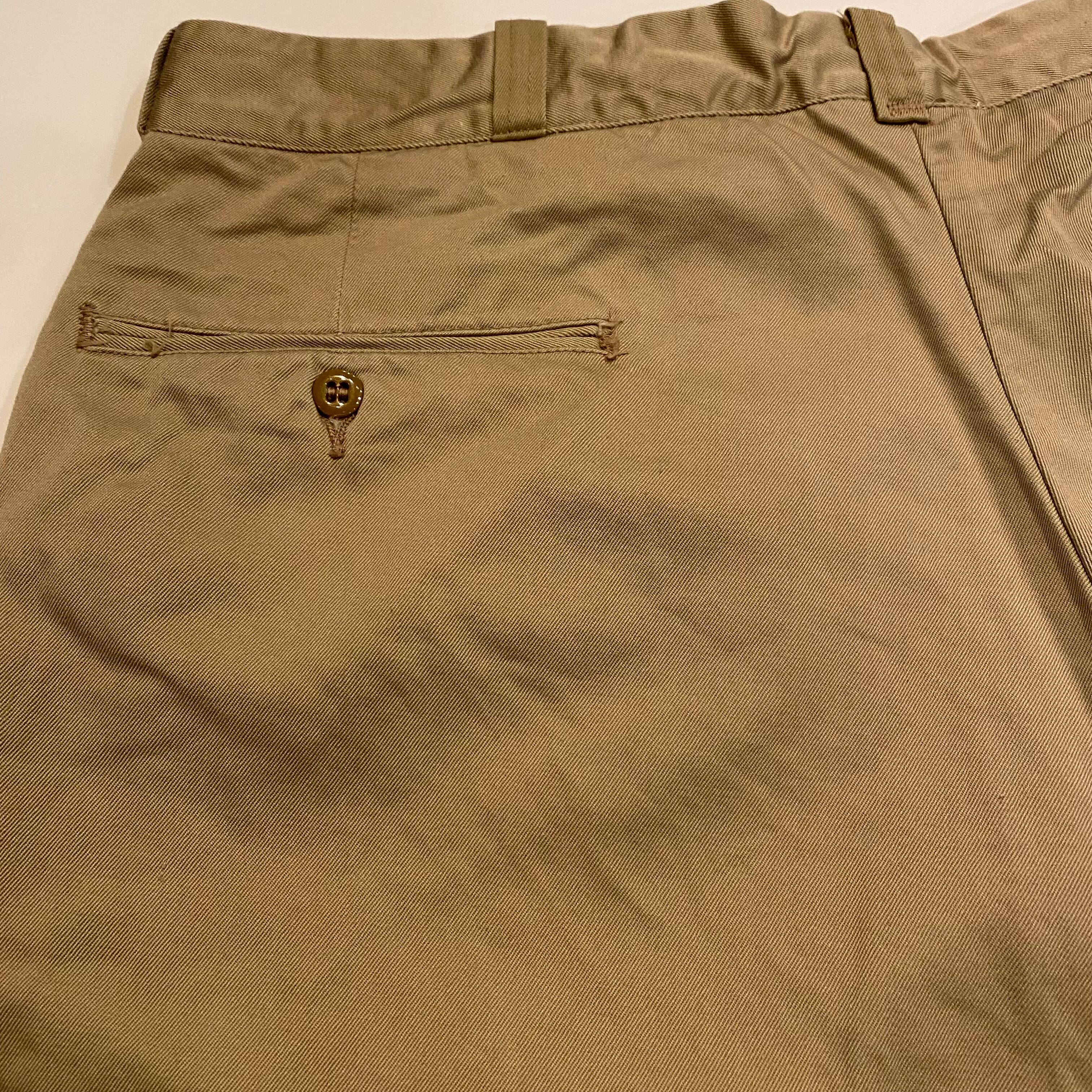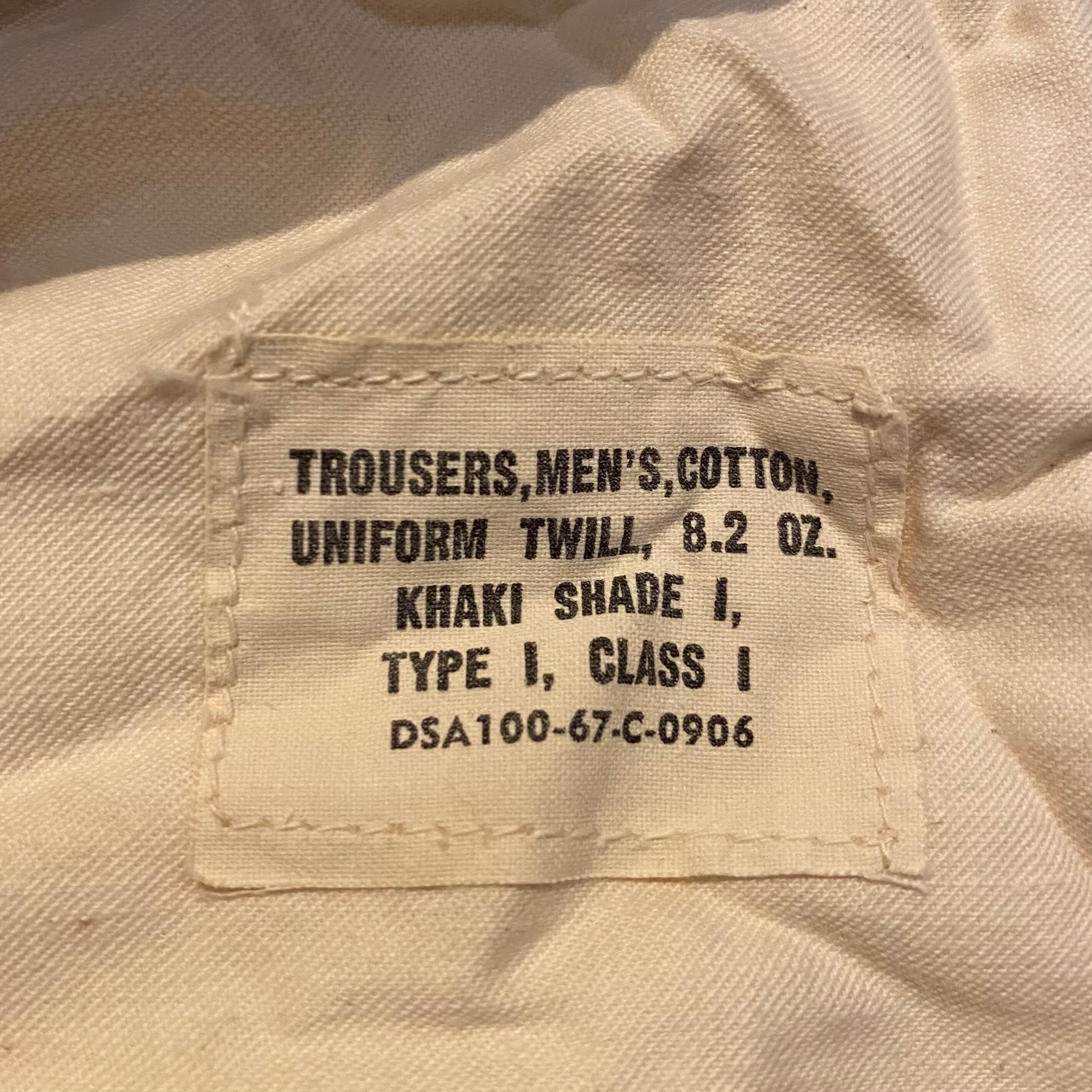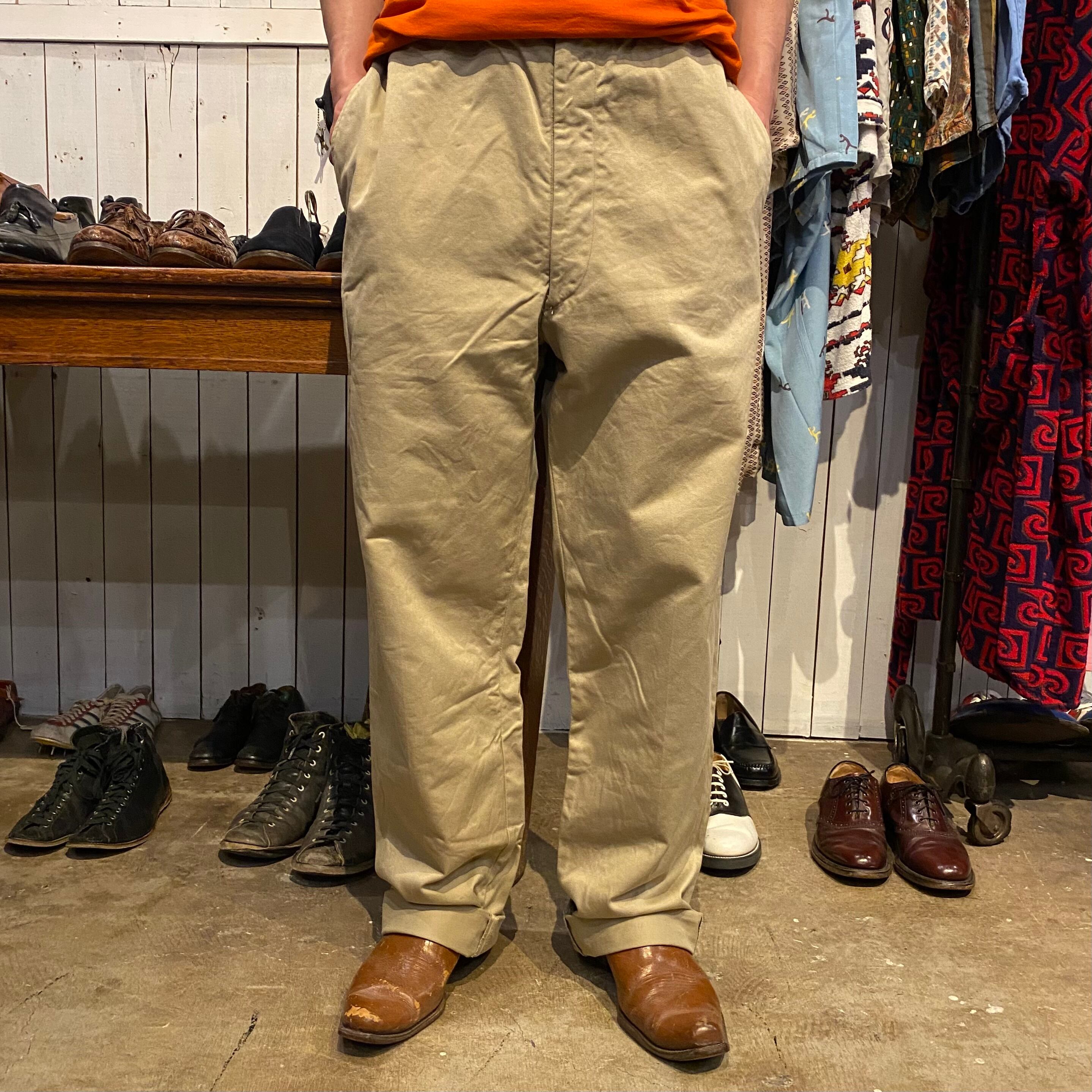 1960年代のU.S.ミリタリーのチノトラウザーになります。フロントジッパータイプ。太めのストレートシルエットです。なかなか見ないグッドコンディションの大きめサイズになります。定番アイテムで持っておいて損はないですし、今時期からもとても良いと思います。※モデル着用画像は裾を2回折り返して着用しております。