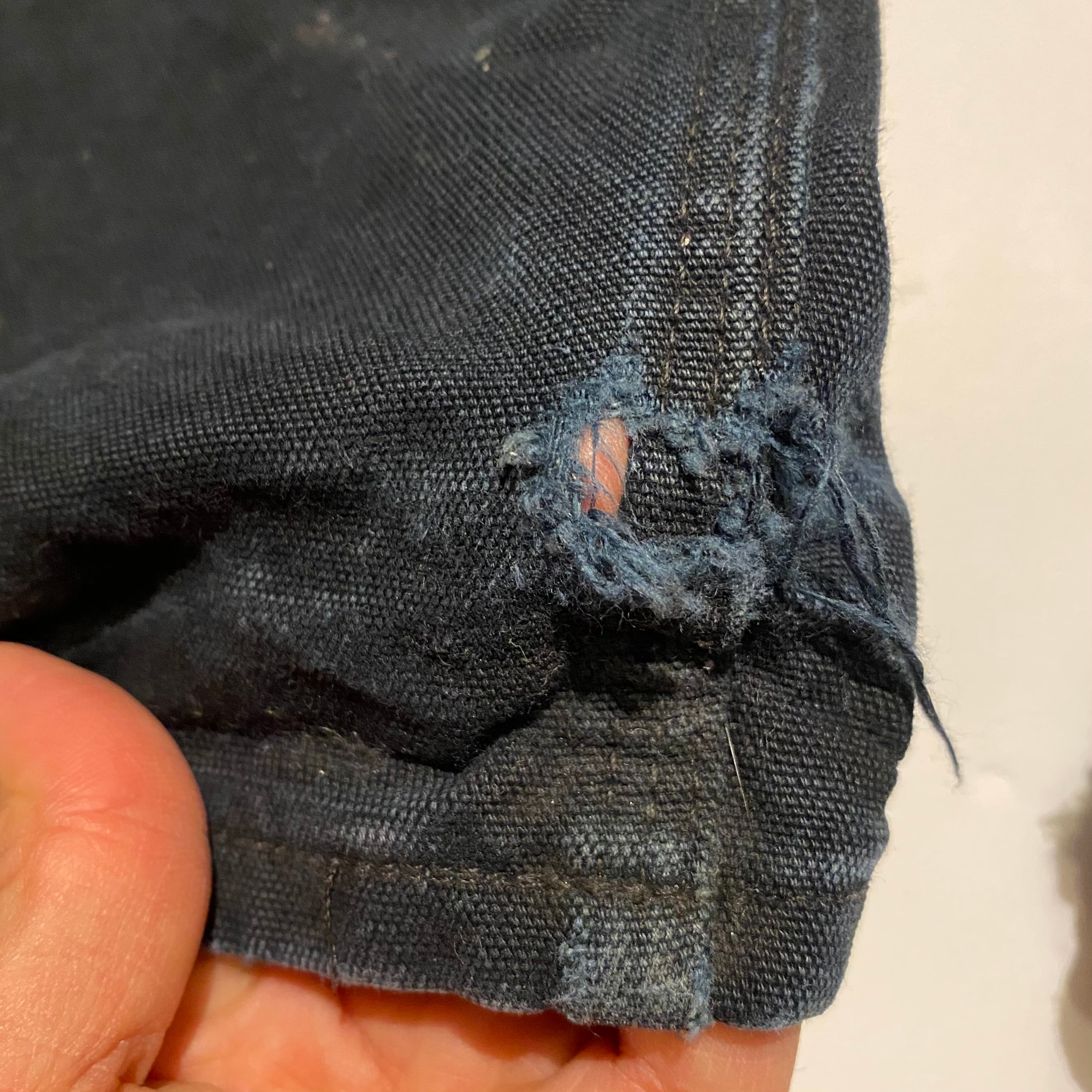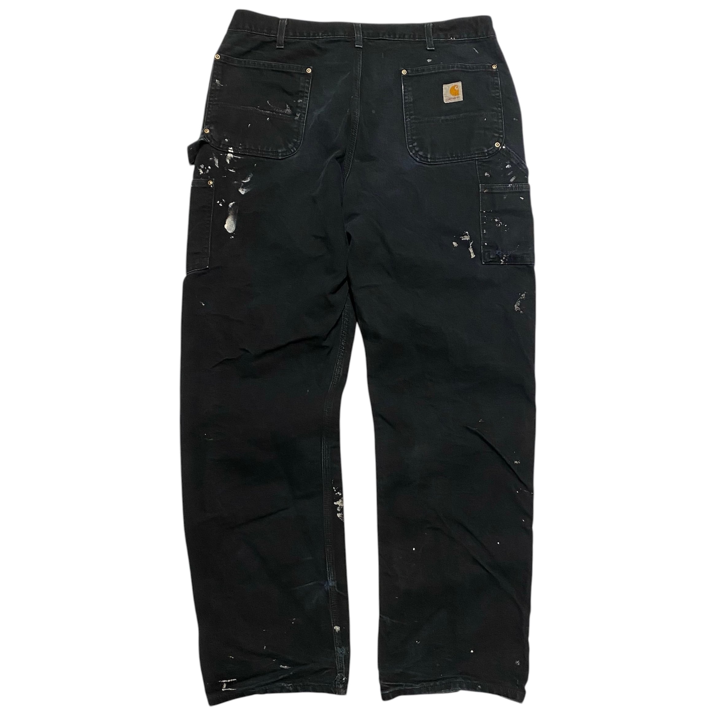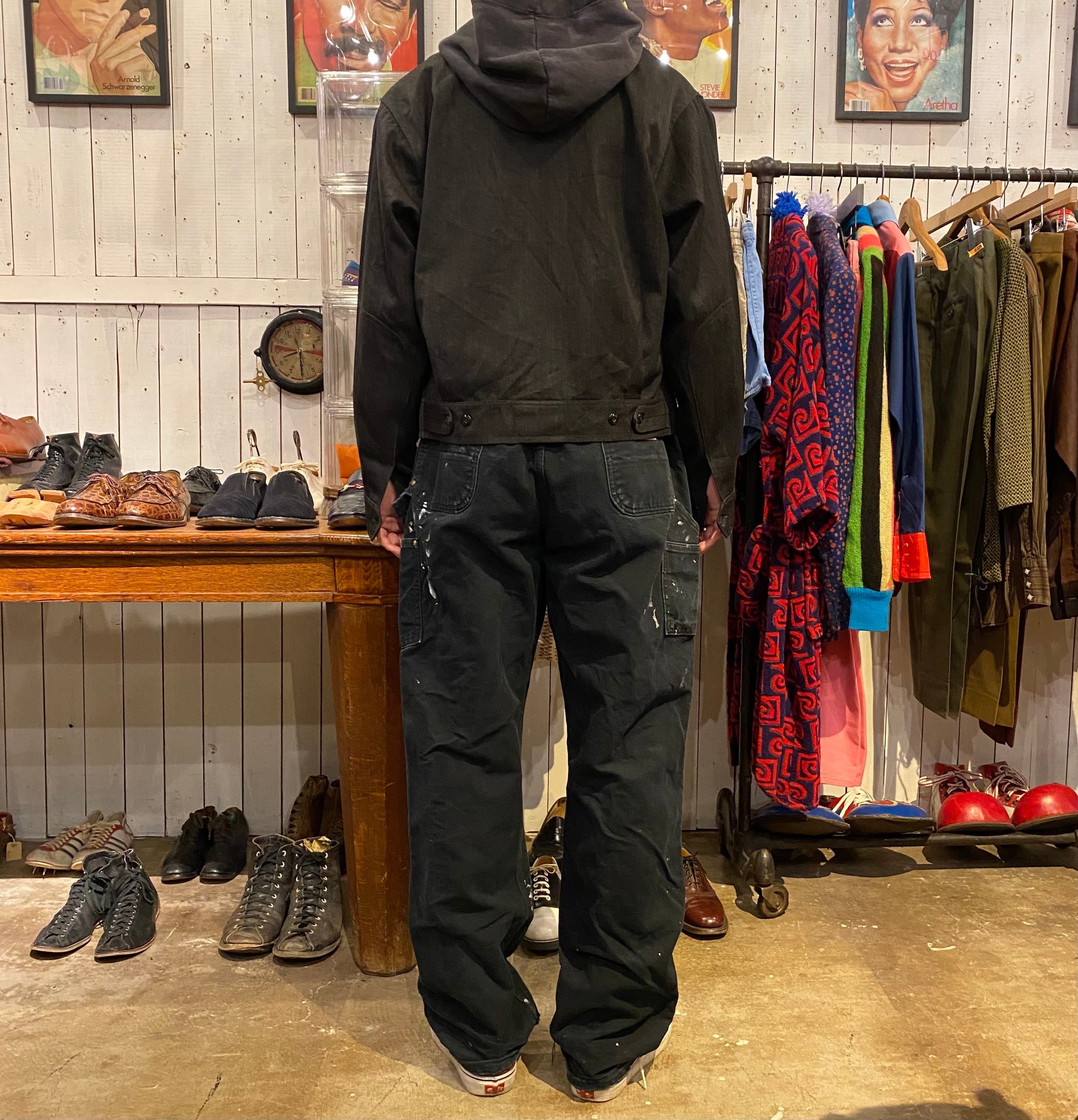 90年代のアメリカ製のカーハートのダブルニーワークパンツになります。ストレートシルエットでペンキがかった雰囲気あるブラックになります。ダック地の生地感も良く格好良いと思います。※両すそ内側あたりにダメージがあります。