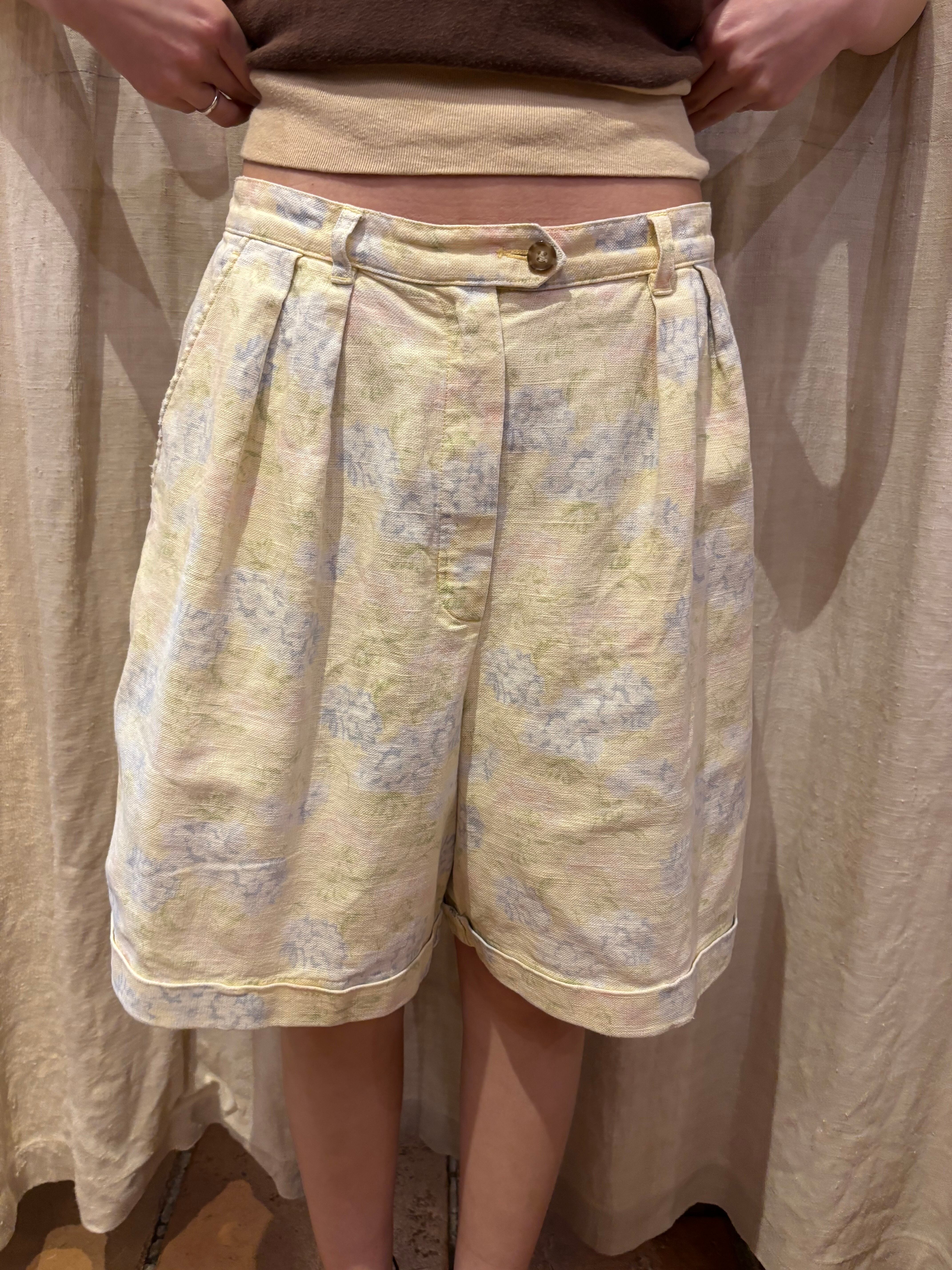 淡いトーンのフラワーパターンがやわらかい印象のショーツ。