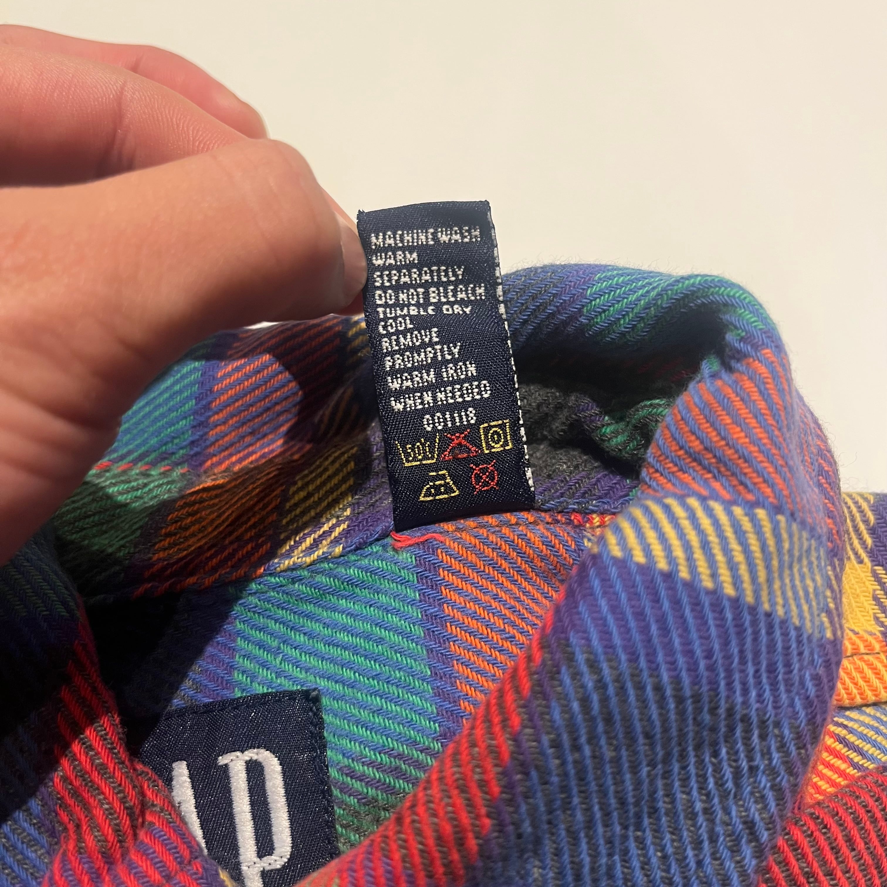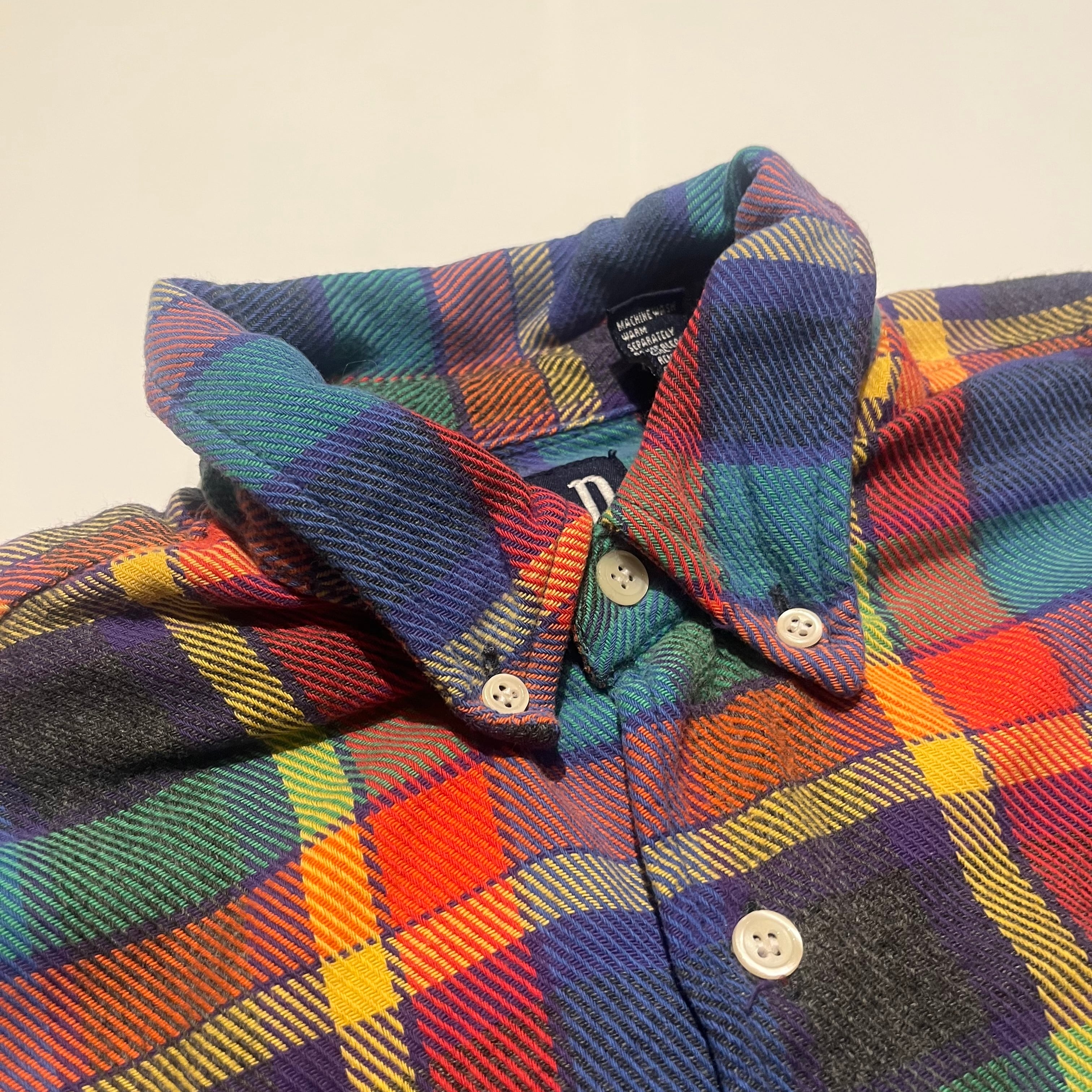 gapからコットンレーヨンのフランネルシャツになります。襟はボタンダウン。年代は90年代頃。ポルトガル製。サイズ表記M。