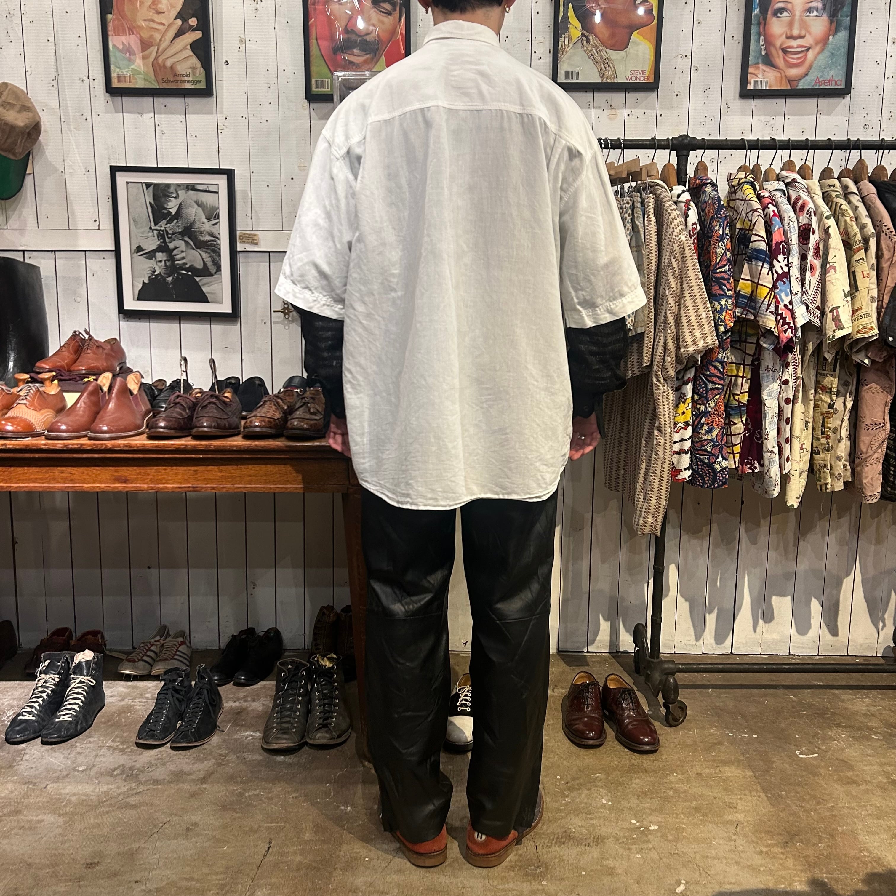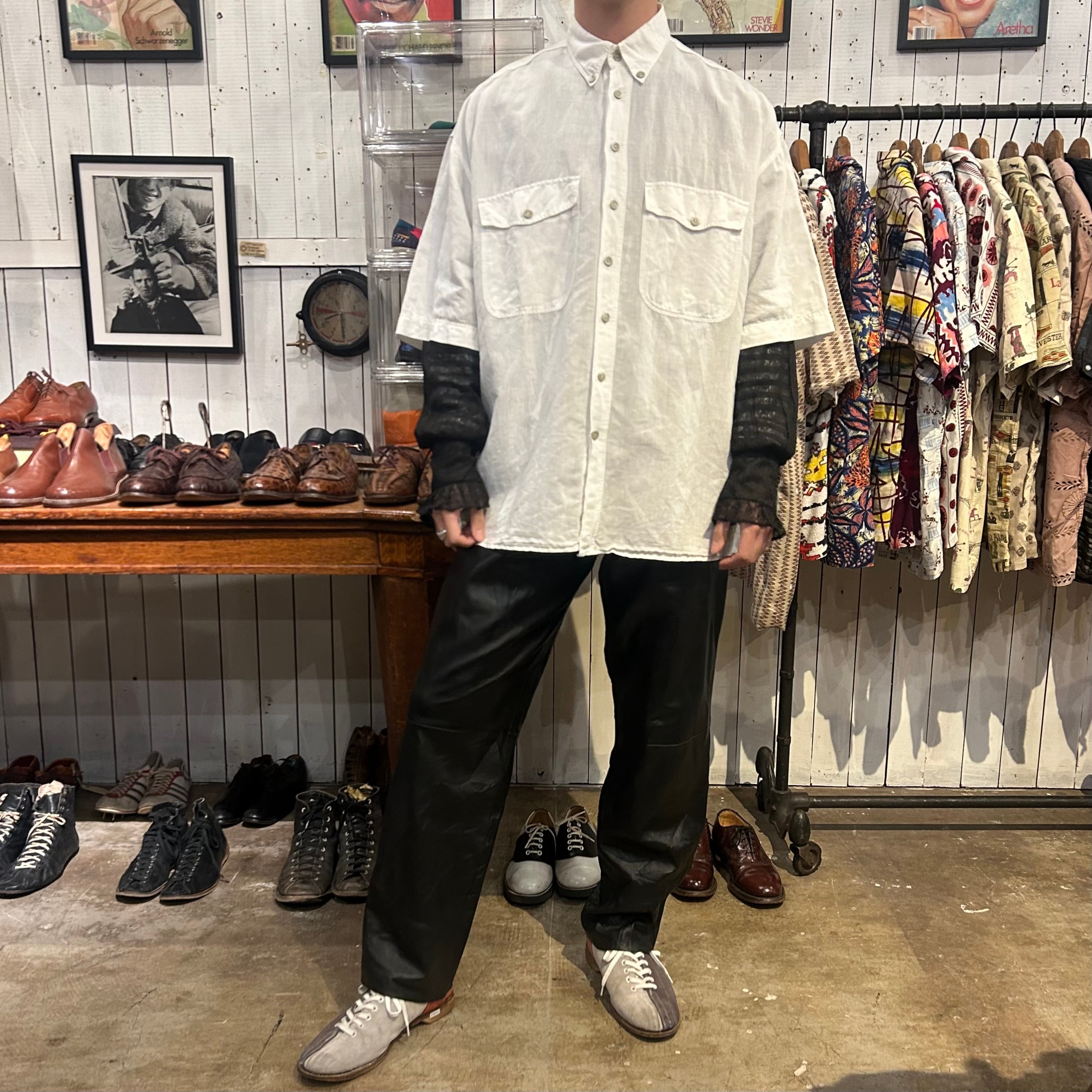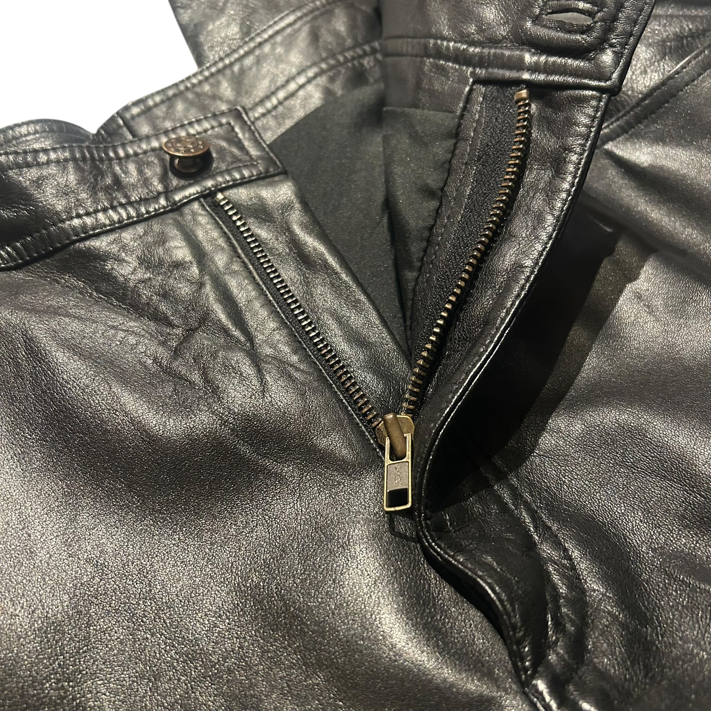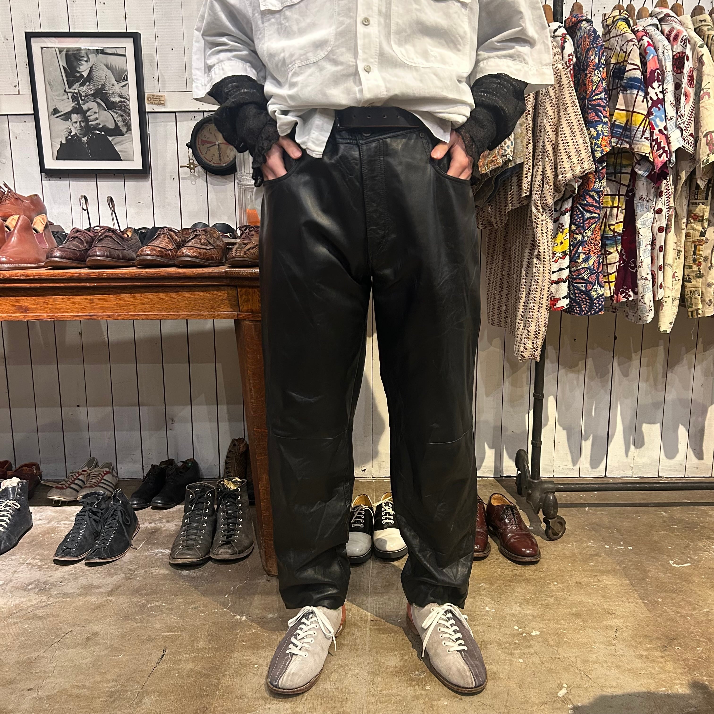 古い個体に比べ渡りも広く、カジュアルに履けるレザーパンツになります。