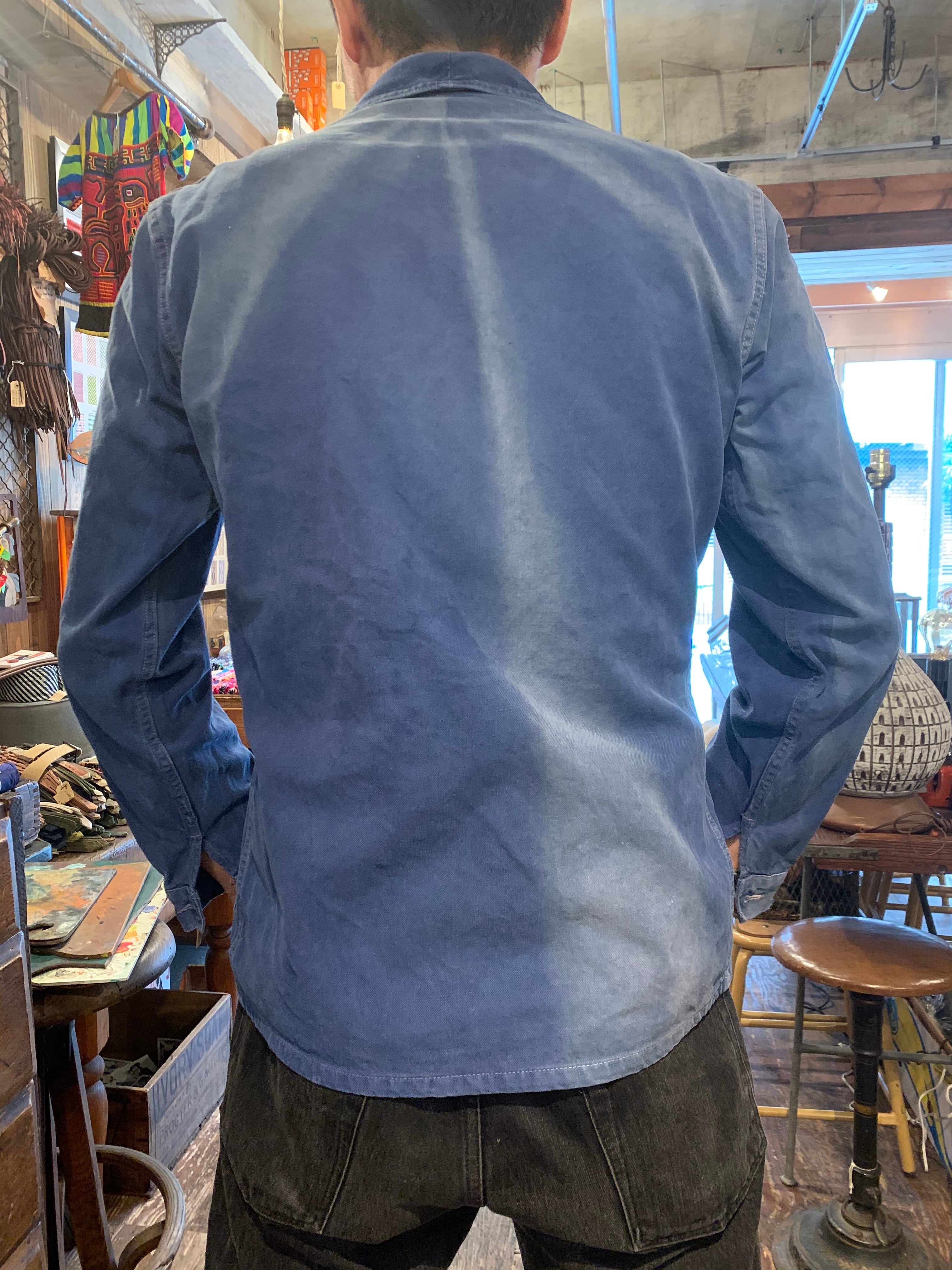 これは、イギリスの軍物では、ありませんが、どうしても、ブロードアローに見えてしまうのでそうゆう紹介にします。元は、ジャーマンワークウェアです。外で、仕事をするのに着用して仕事が、終わるとフックに掛けて帰ったのでは?と予想します。生地の状態は、まだ生地に貼り感がある状態です。