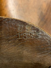 限りなく硬くなっていますが、内側が、表革、外が、スウェードになっているbootsです。おそらく、軍物、アメリカの物です。bootsの内側に、ナイフで、綺麗に、us 1825と彫ってあります。また、革の剥ぎが、無いので、bootsのシワが、綺麗に出ているのと、右と左を間違えて買ったのではと思うほど、左右の見分けが、つかない、裏返して見ても、左右対称に、作られていると思います。参考資料としてとても貴重だと思います。サイズ25cmから、25.5cmぐらいかと思います。
