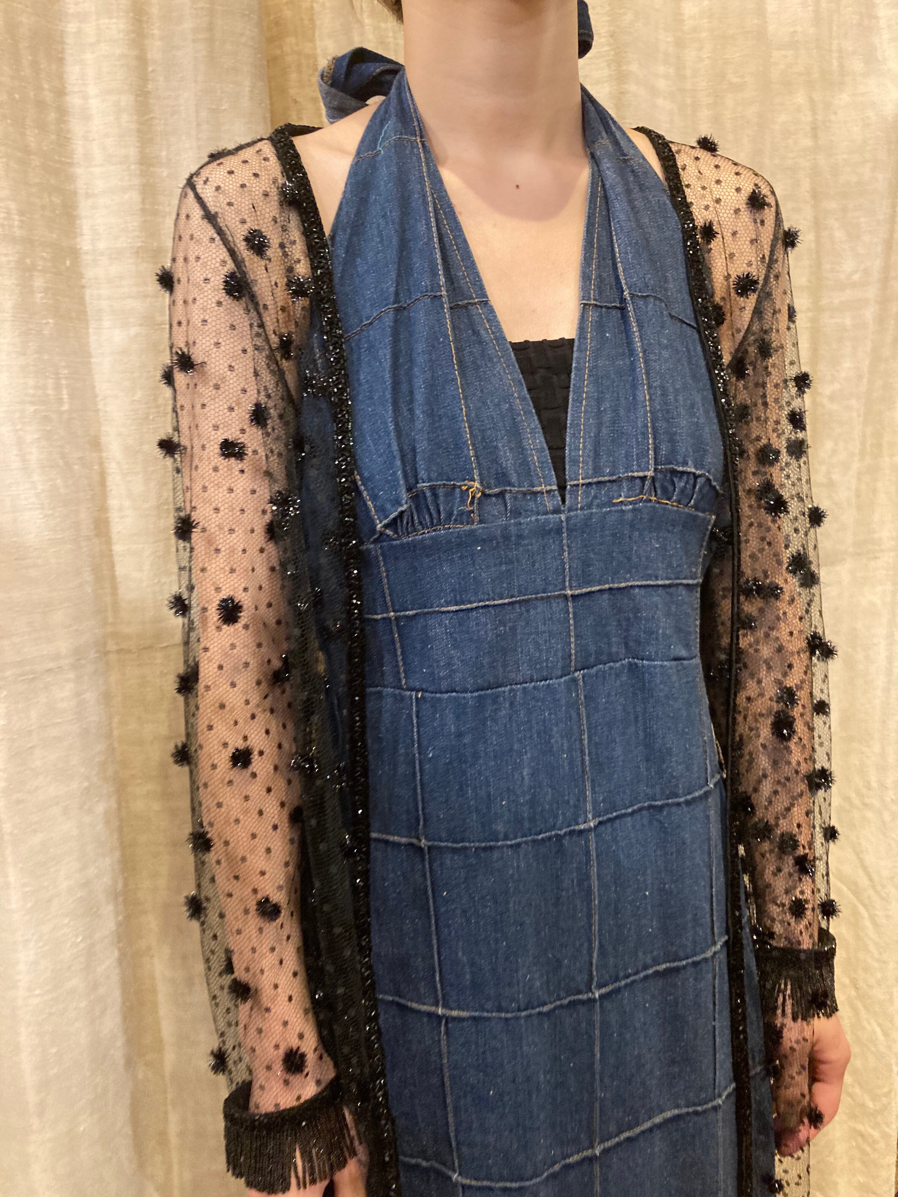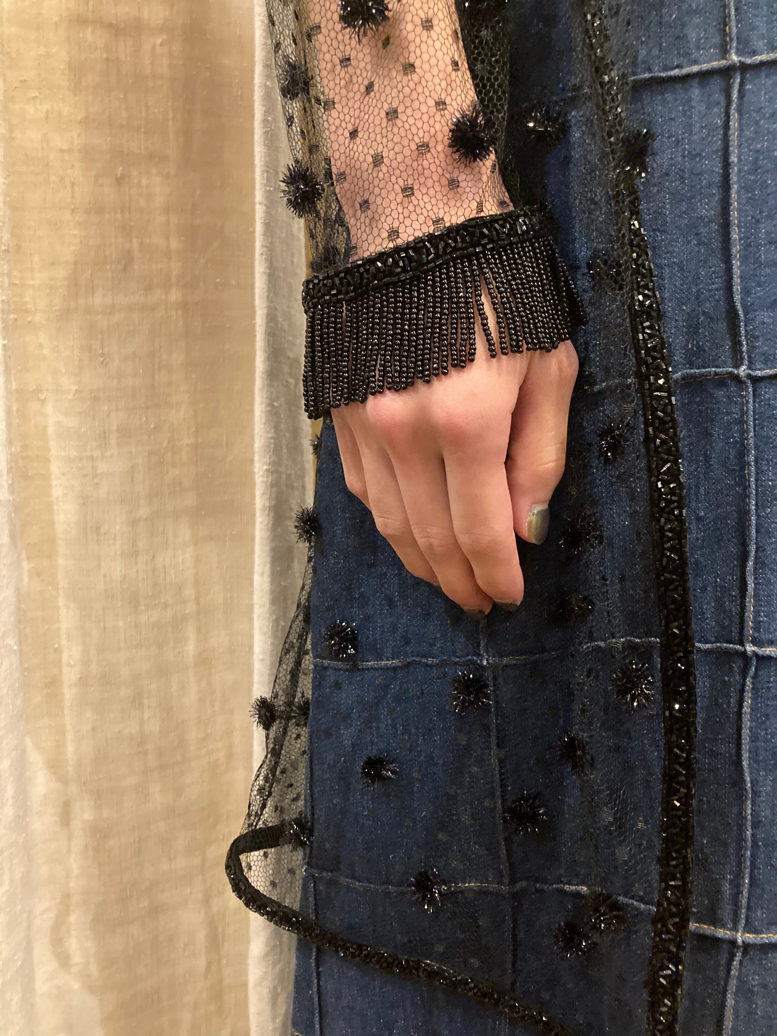 パイピングのようなビーズと袖口のシャラっとしたビーズが、更に気分を高めてくれます。