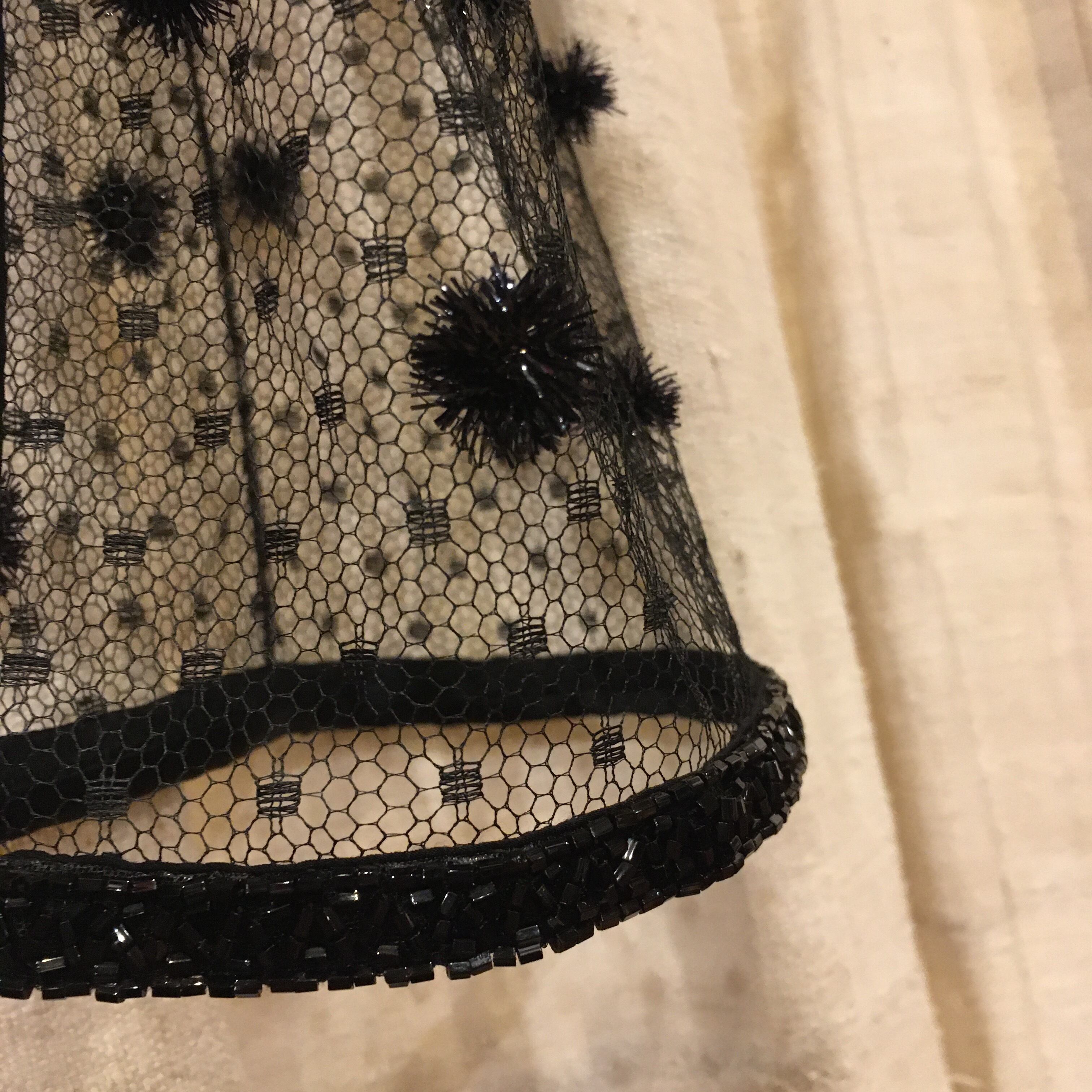 ドットのような加工がされたチュールに、キラキラが入った小さなポンポンが縫い付けられています。