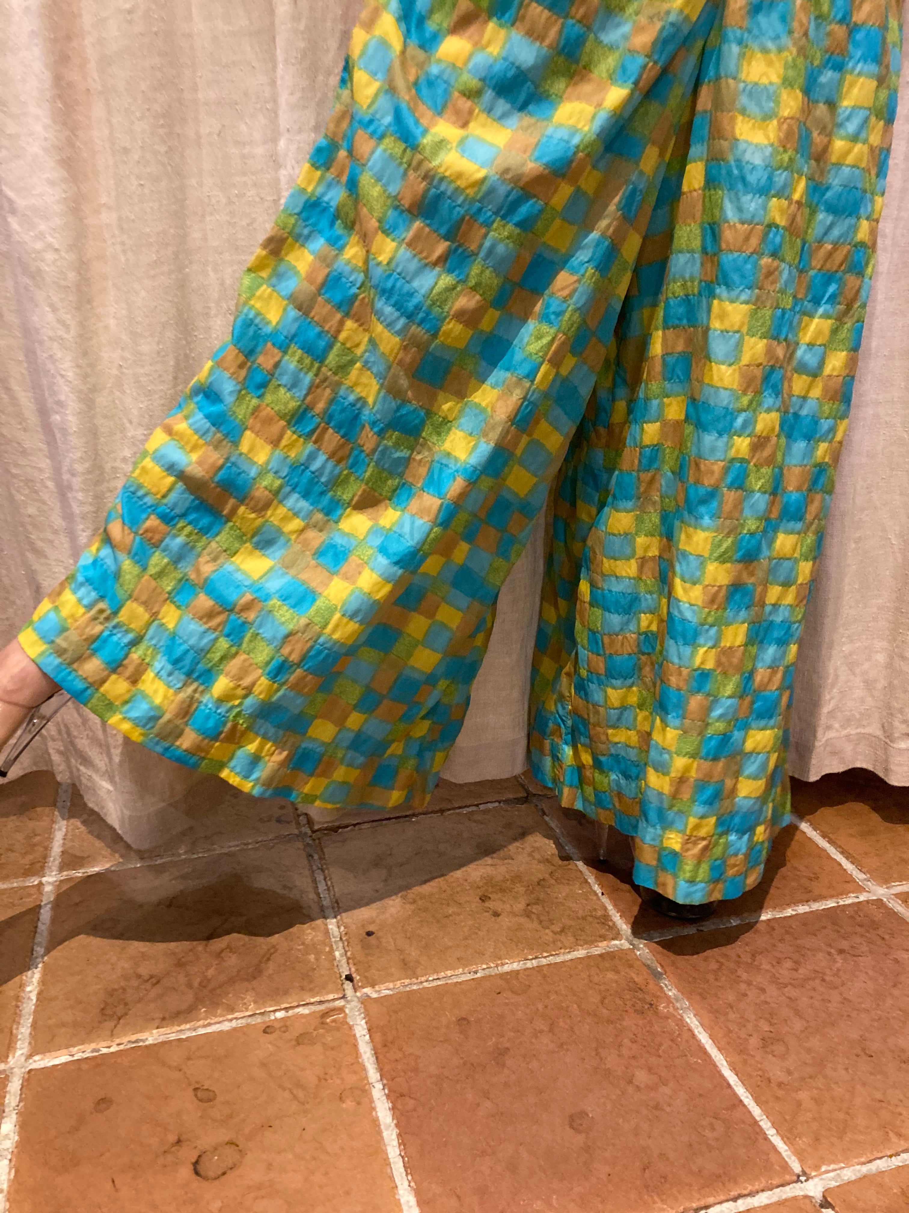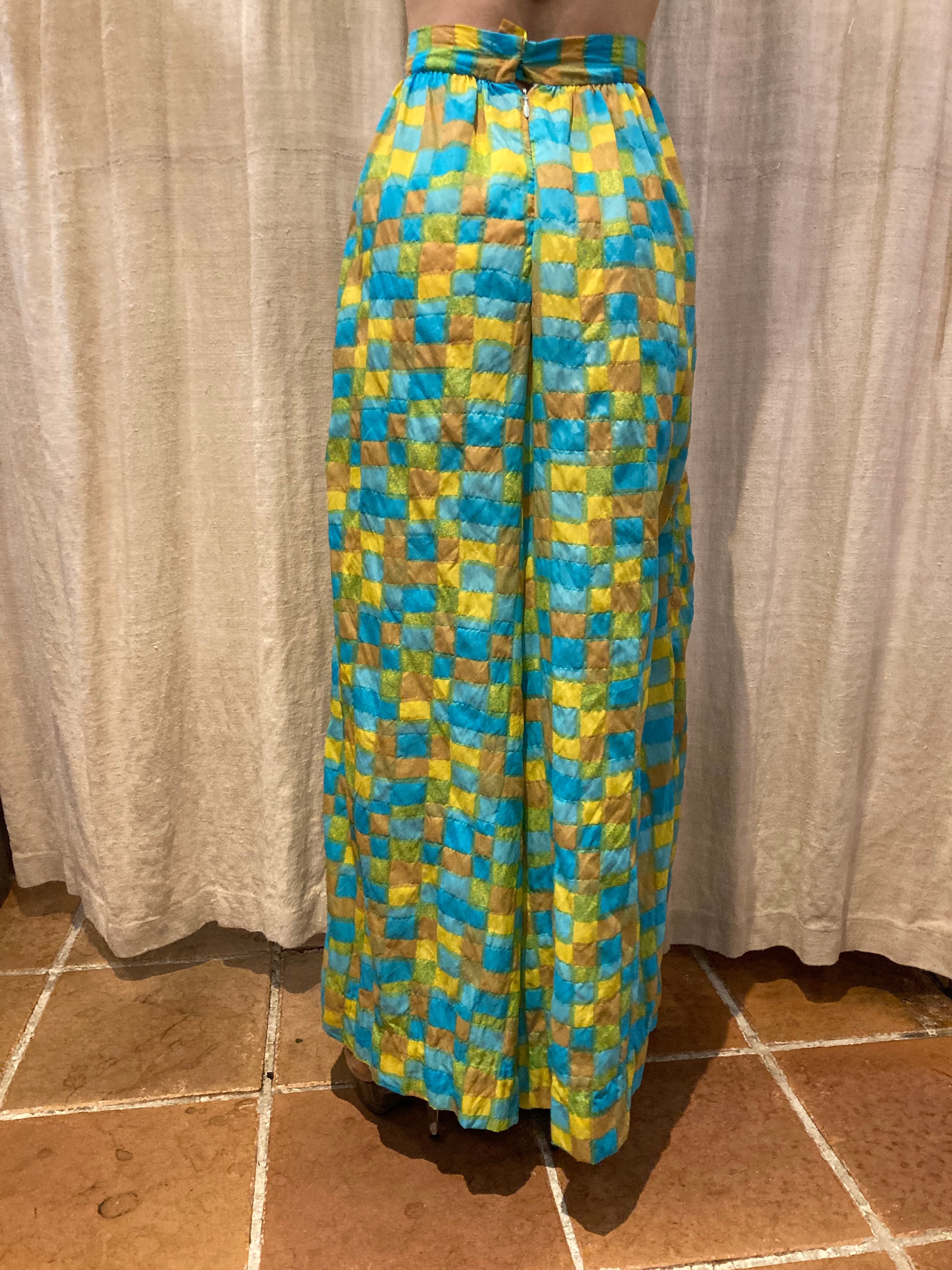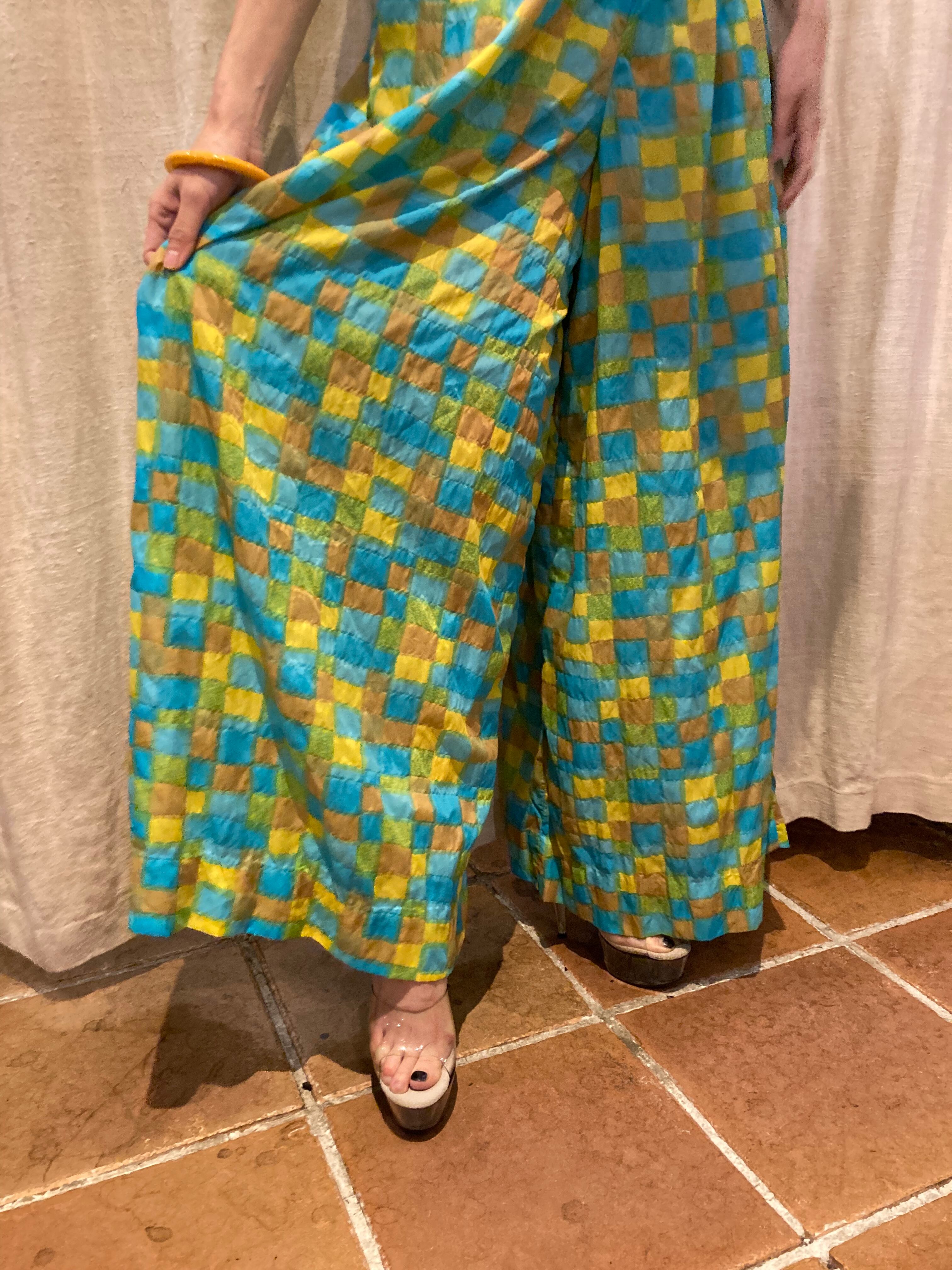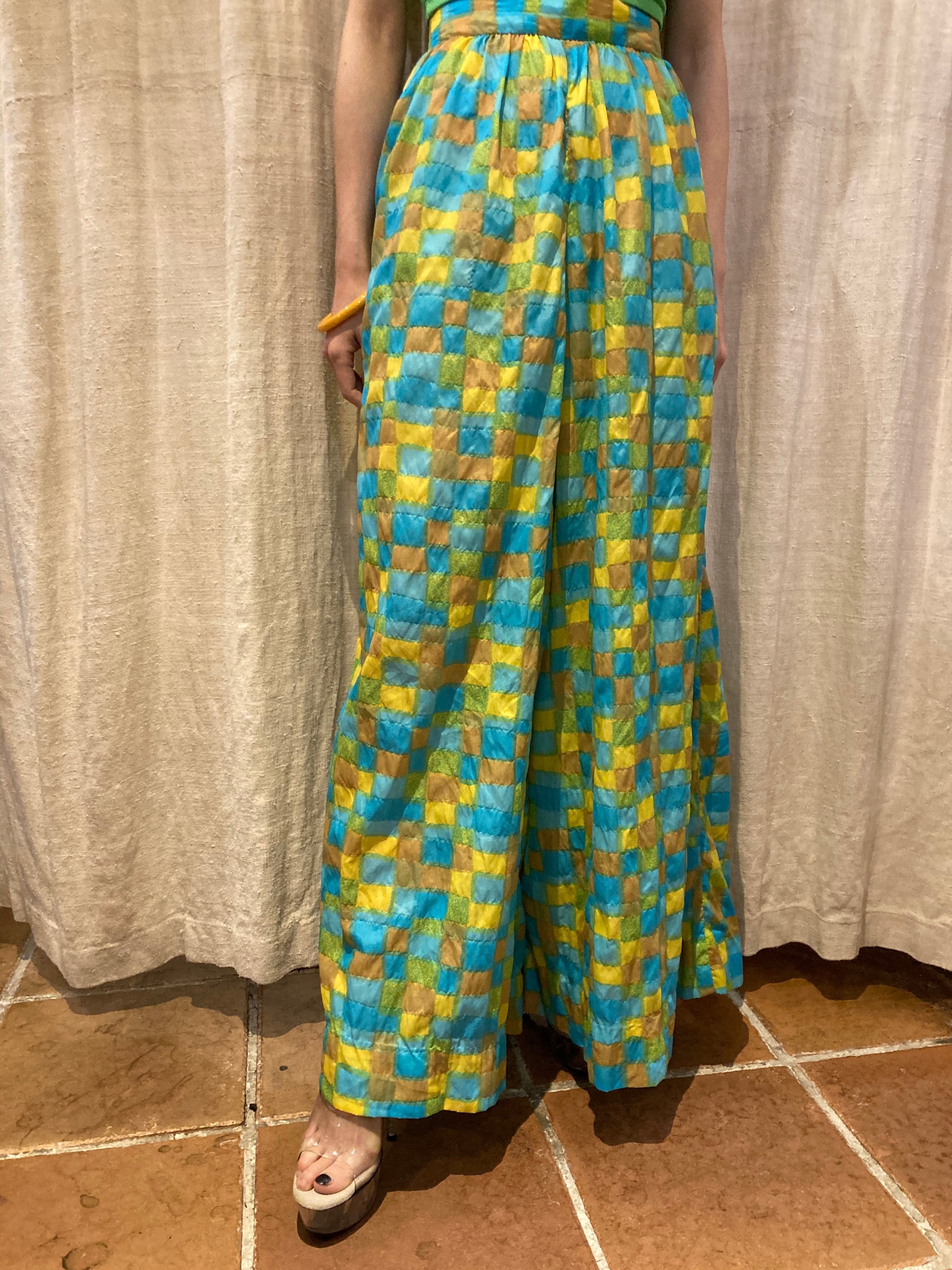 ランダムな四角の柄が可愛く、黄色やブルーなど鮮やかなカラーが使われ、目を引くアイテムです。スカートのように生地がたっぷり使われているところも魅力的です。シンプルなトップスでも華やかなスタイリングにアップグレードしてくれる1枚だです。