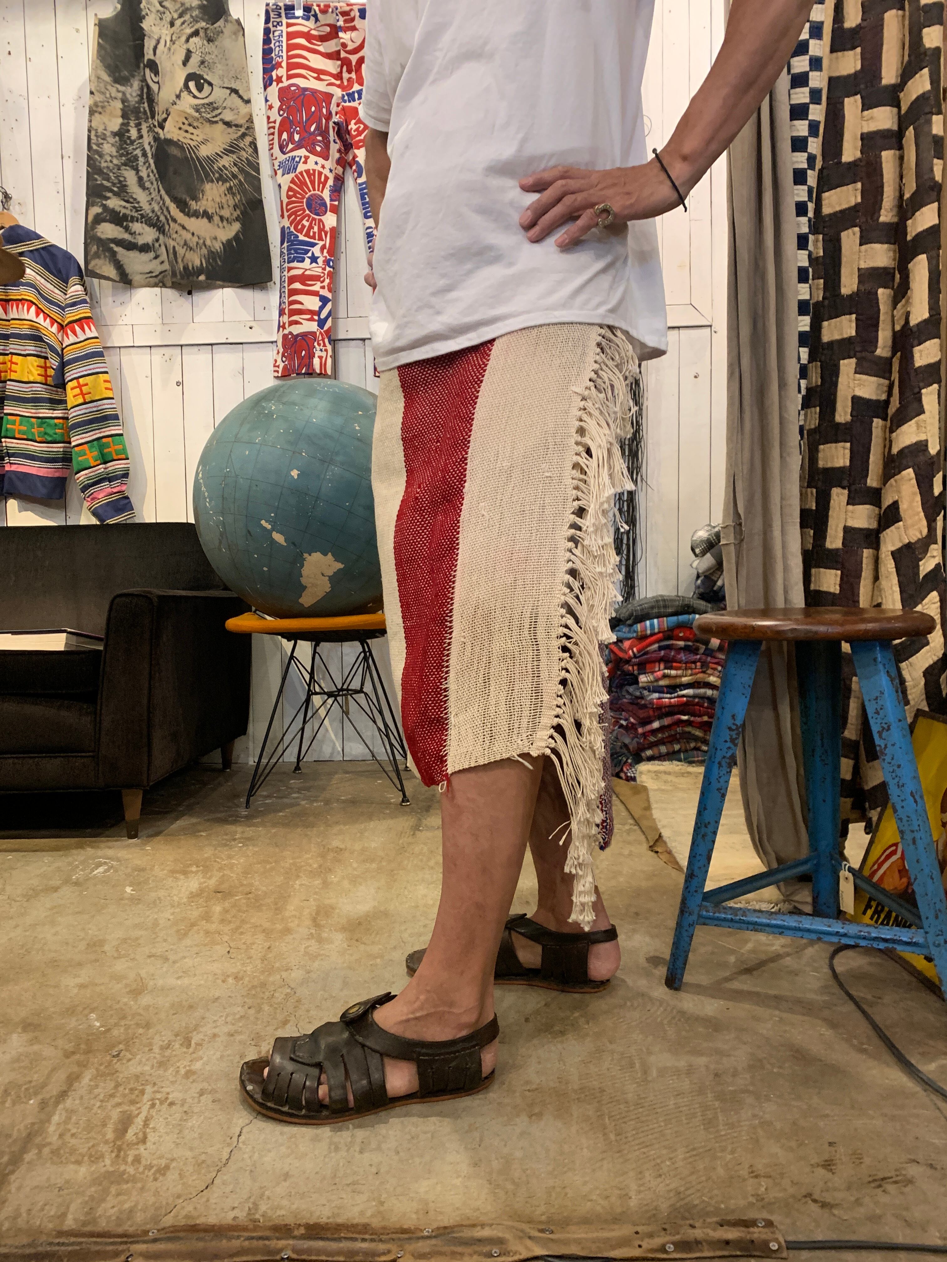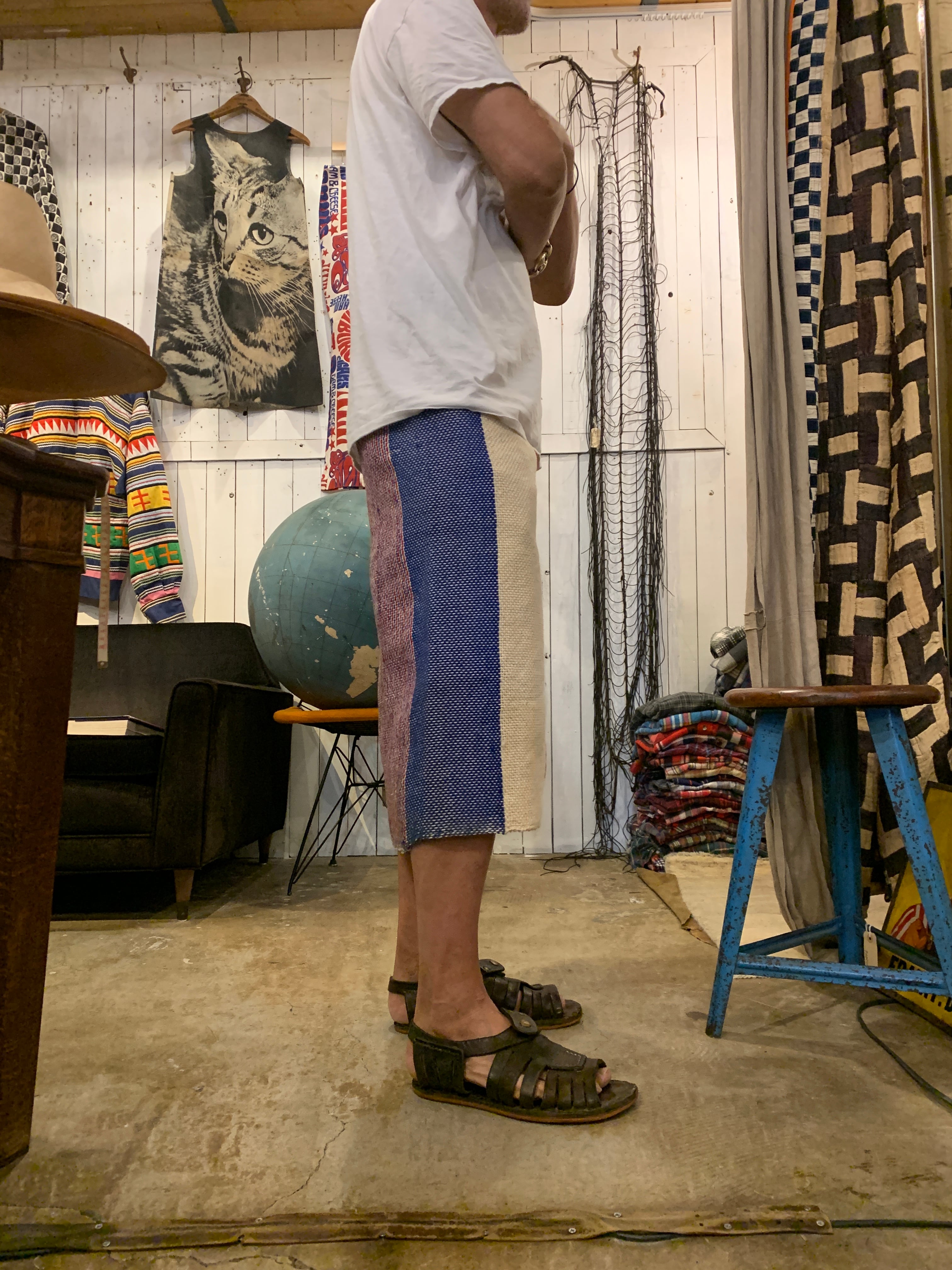 トリコロールなので、海に行って砂浜に敷いた後荷物になるので、体に巻いたイメージで、写真を撮りました。