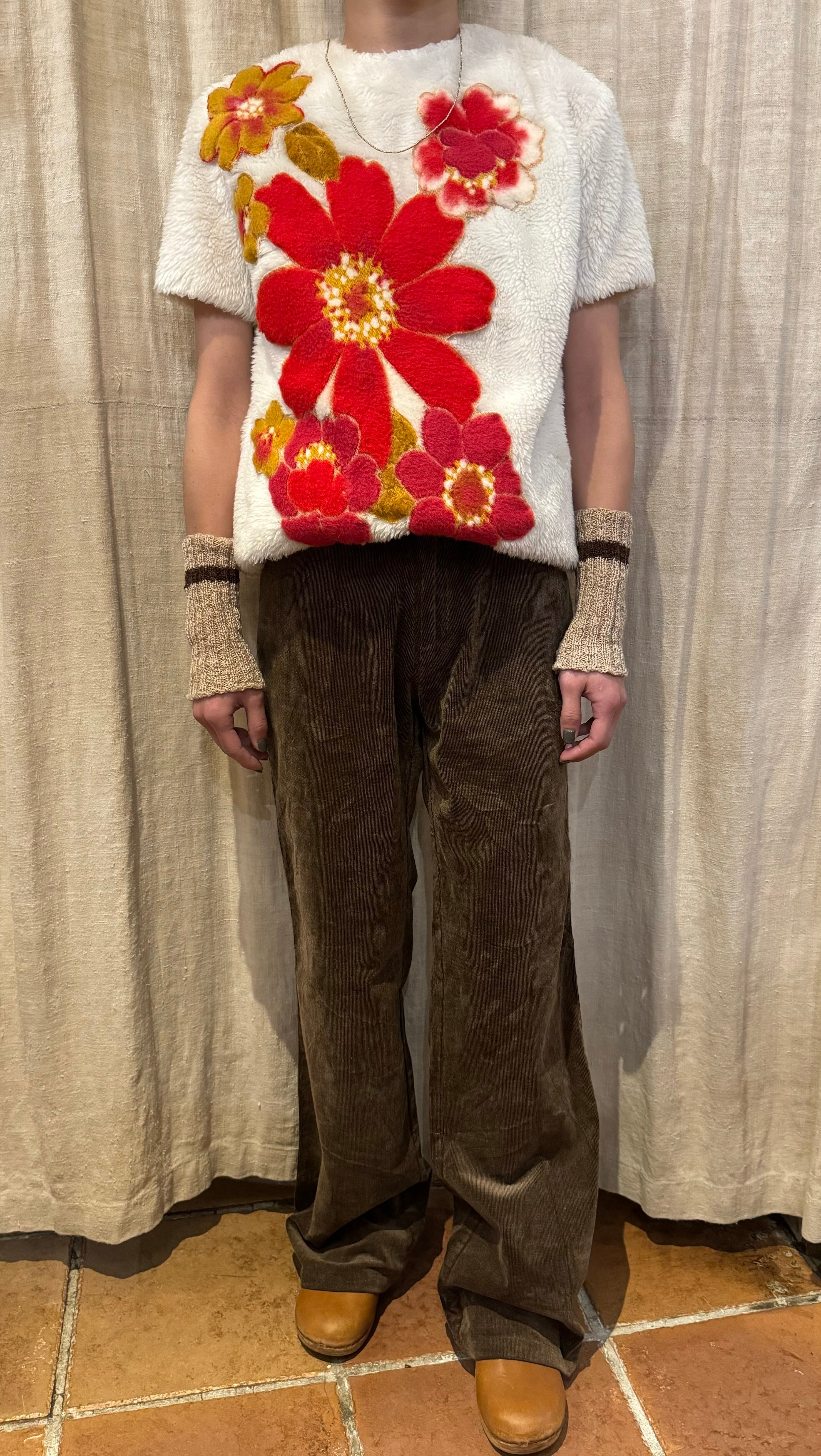 1960年代のフェイクファーにお花のアップリケが縫い付けられたトップス。