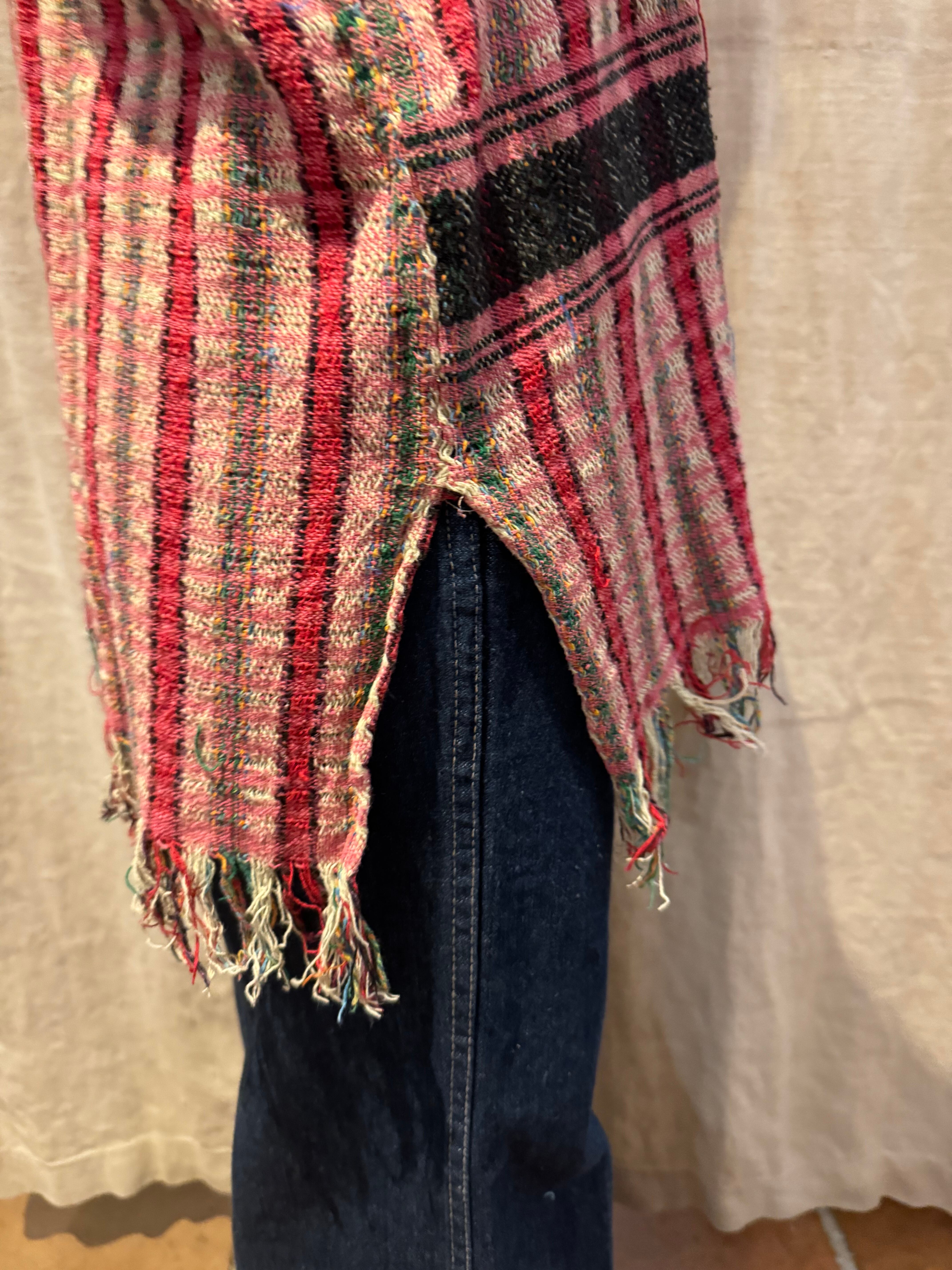着丈:60cm(フリンジ含む) 肩幅:57cm 袖口幅:21cm バスト:110cm ウエスト:106cm 裾幅:95cm スリット:15cm