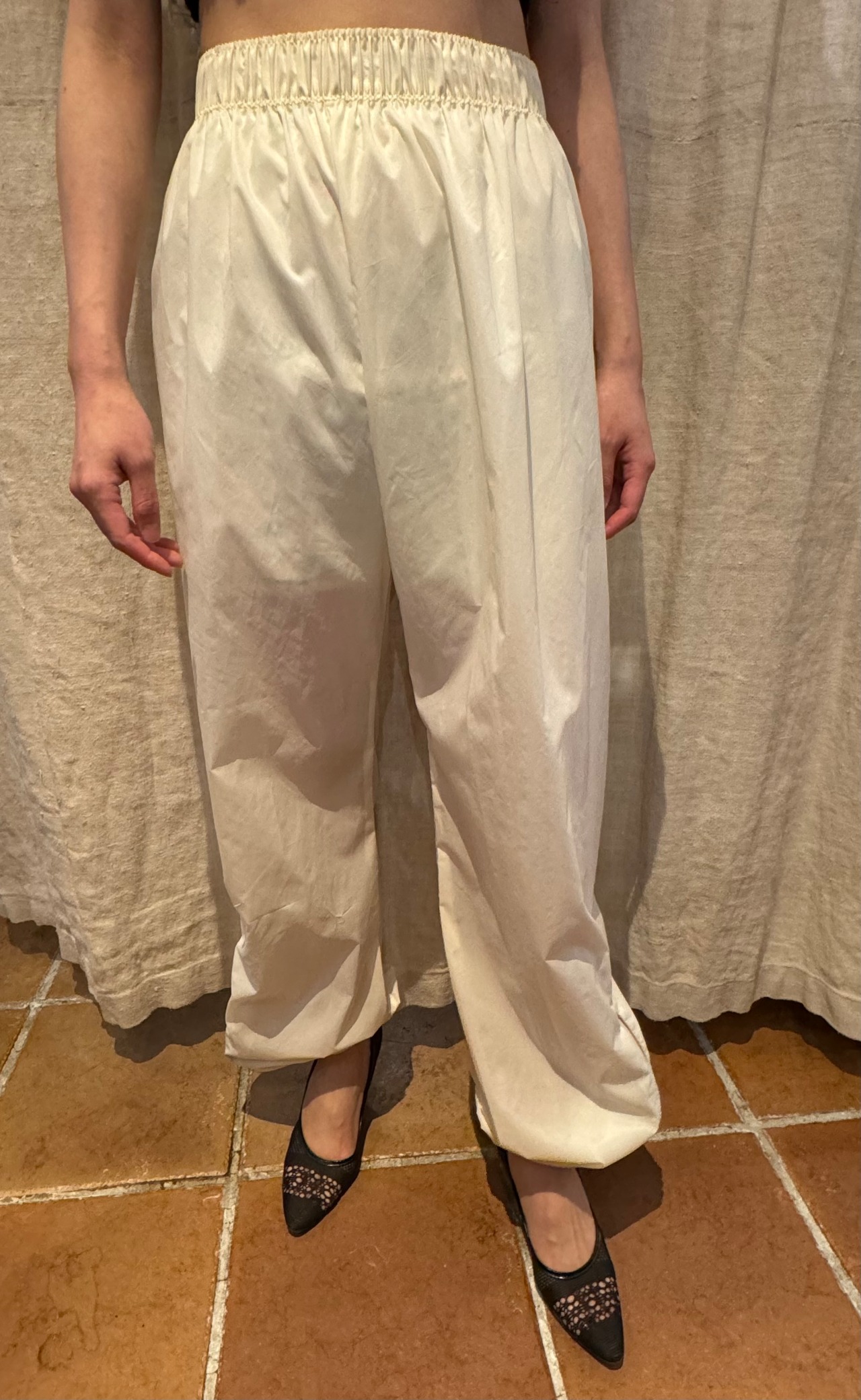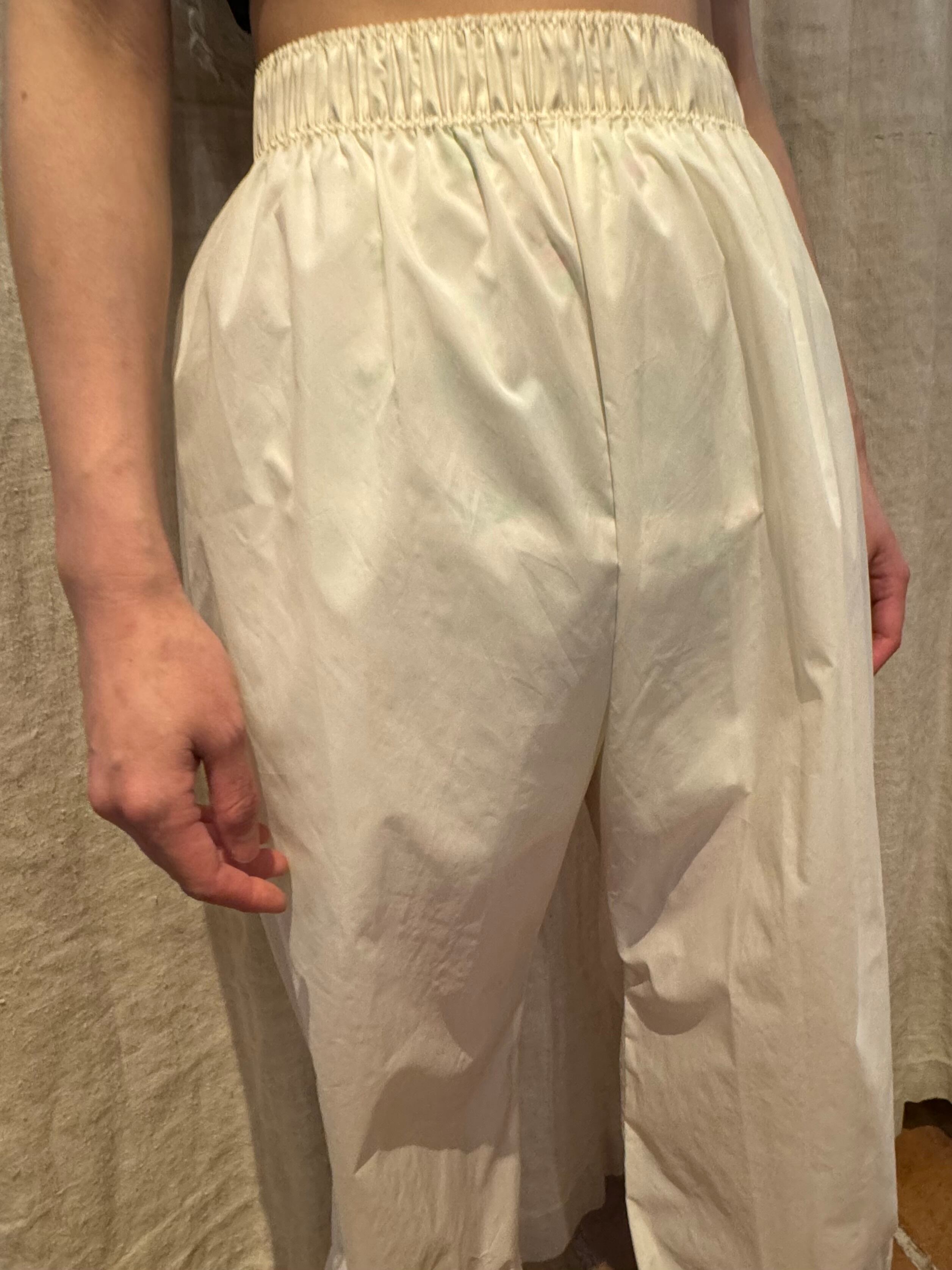 総丈:107cm ウエスト:60-102cm ヒップ:122cm ワタリ幅:30cm 股下:76cm 裾幅:11cm
