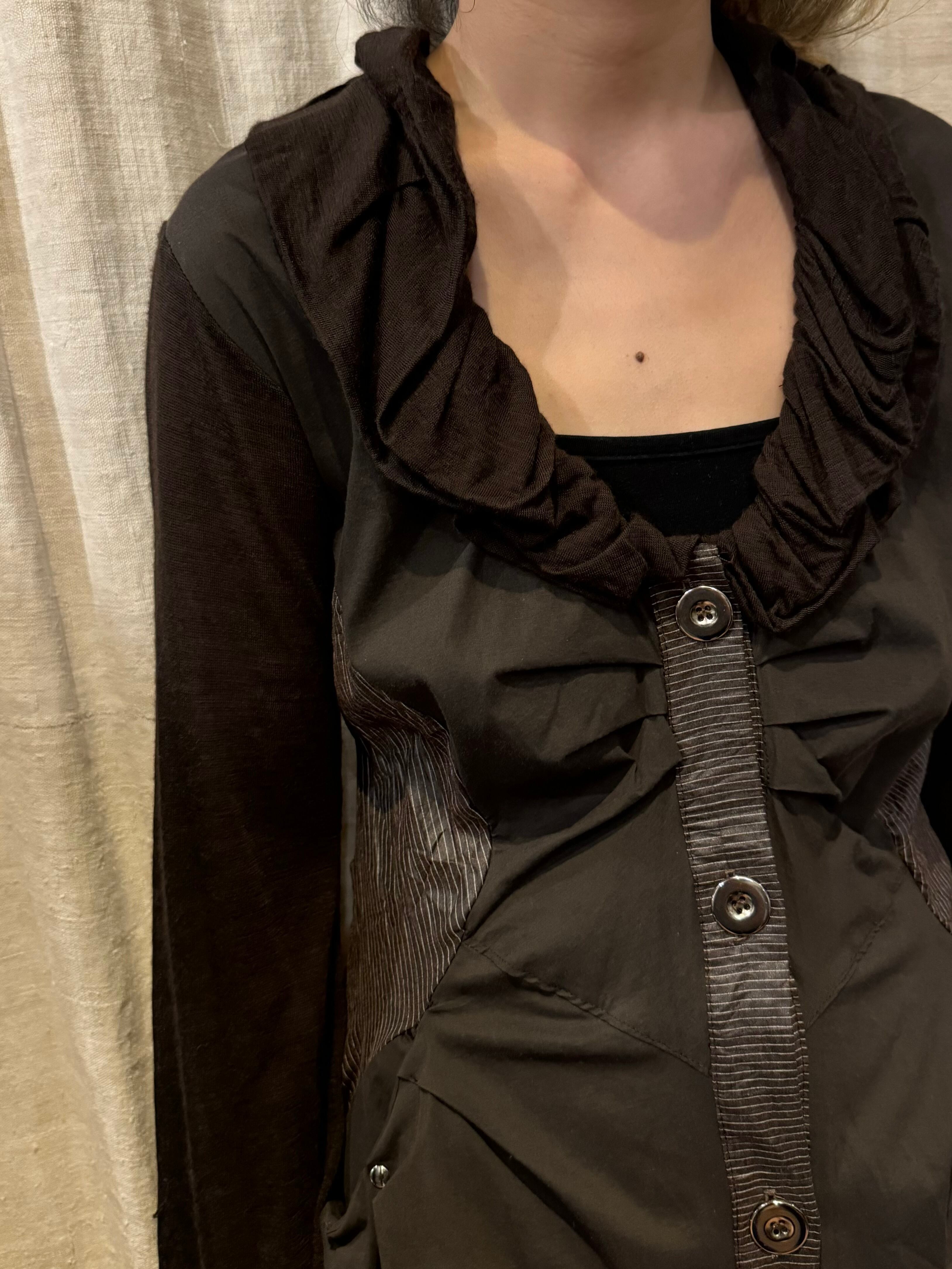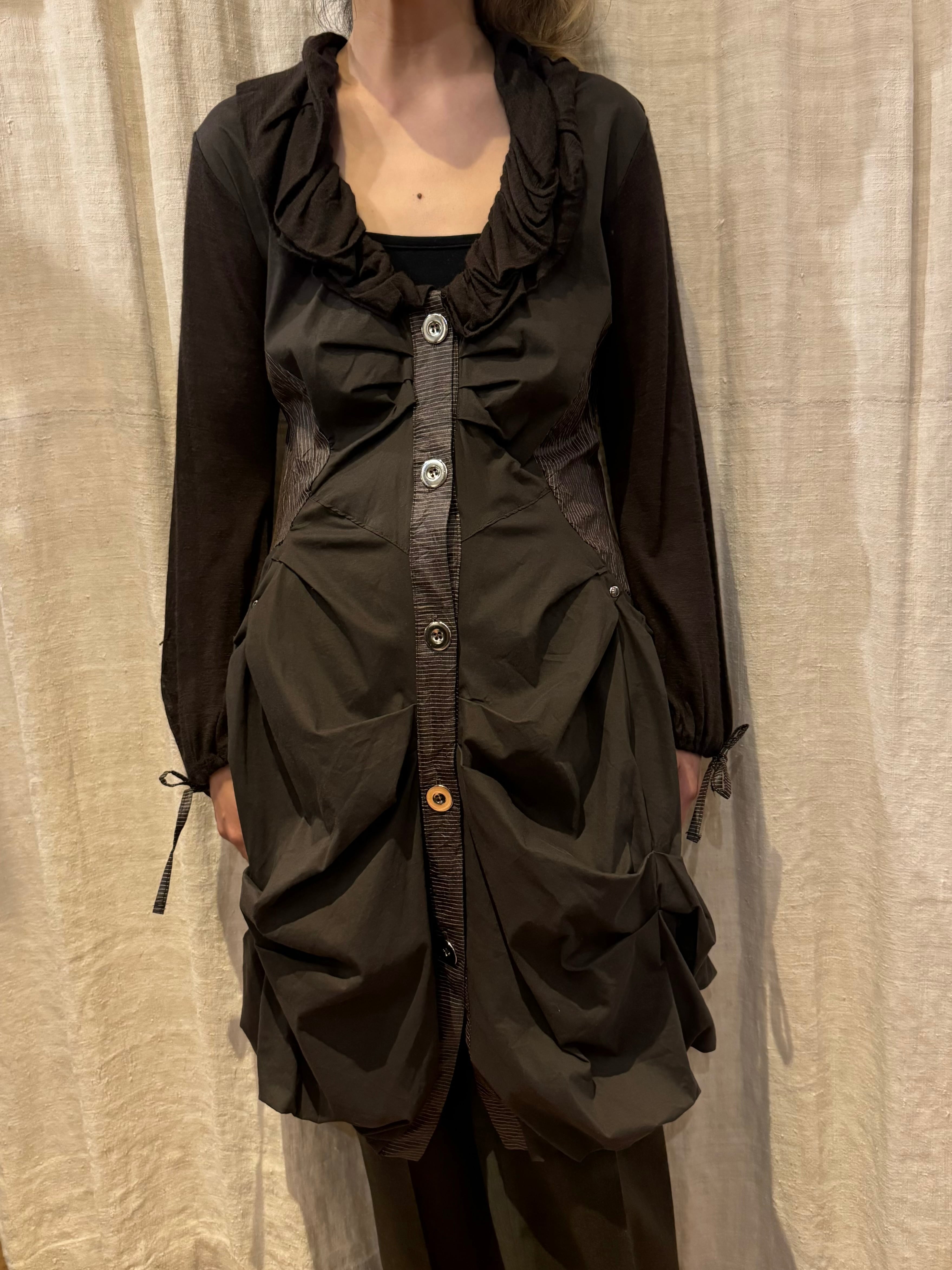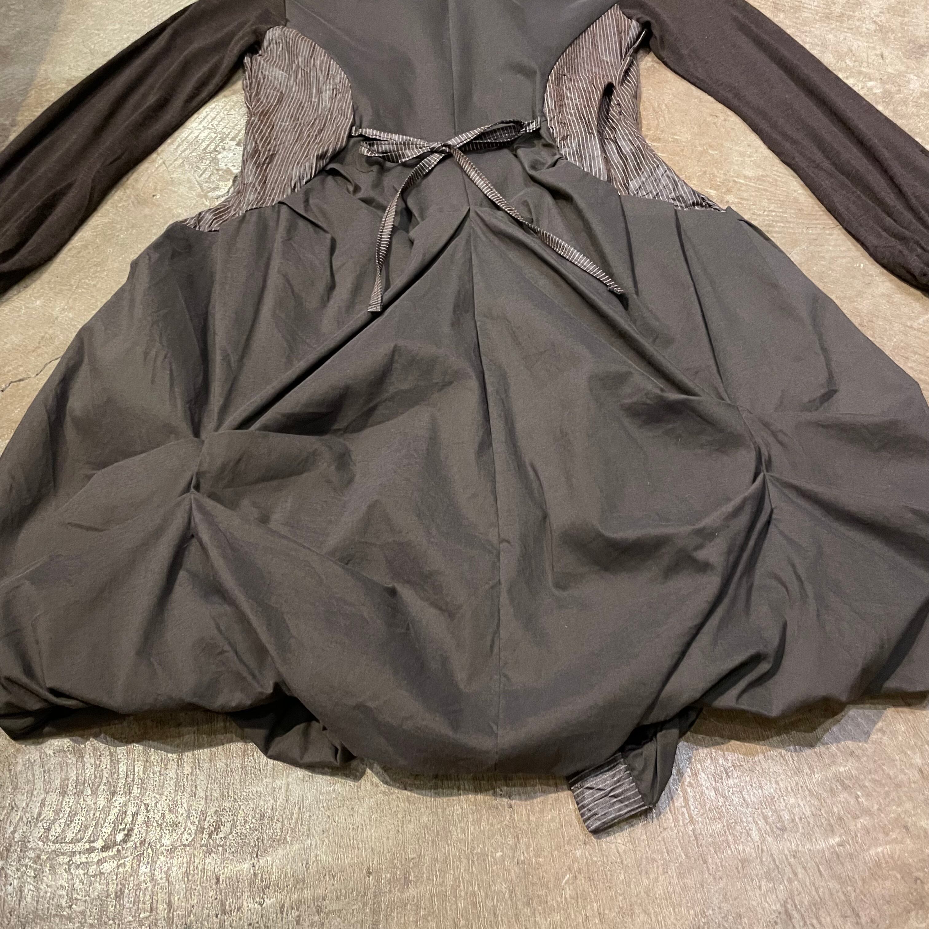 ハリのあるサラサラとした肌触りの生地と襟元と袖にはくたっとした薄手のニットのような生地が切り替えられたデッドストックのワンピース