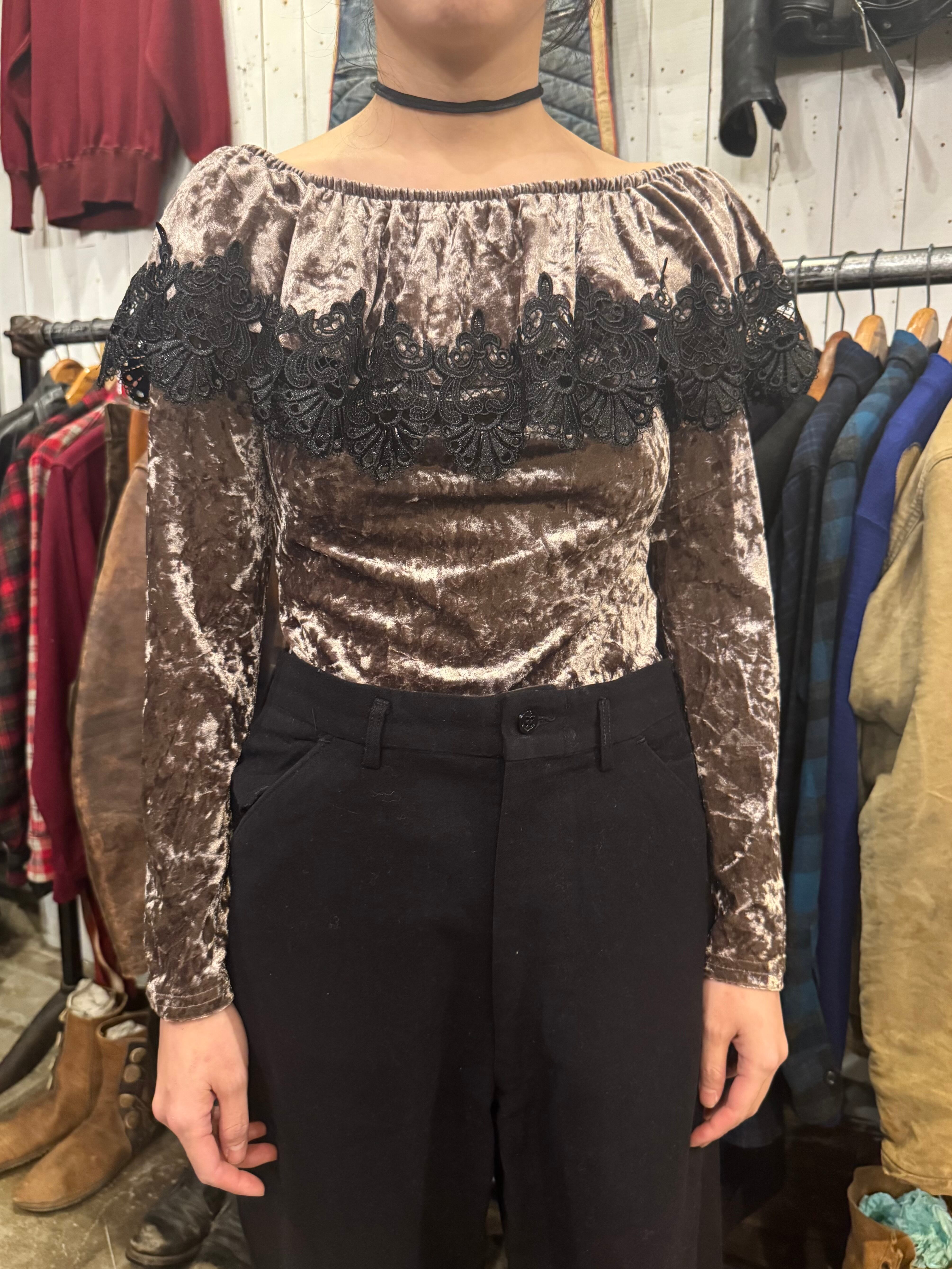 ベージュカラーにブラックカラーのレースが上品です。襟ぐりにゴムが入っているので、オフショルダーのようにして着用も肌見せになり可愛いです。