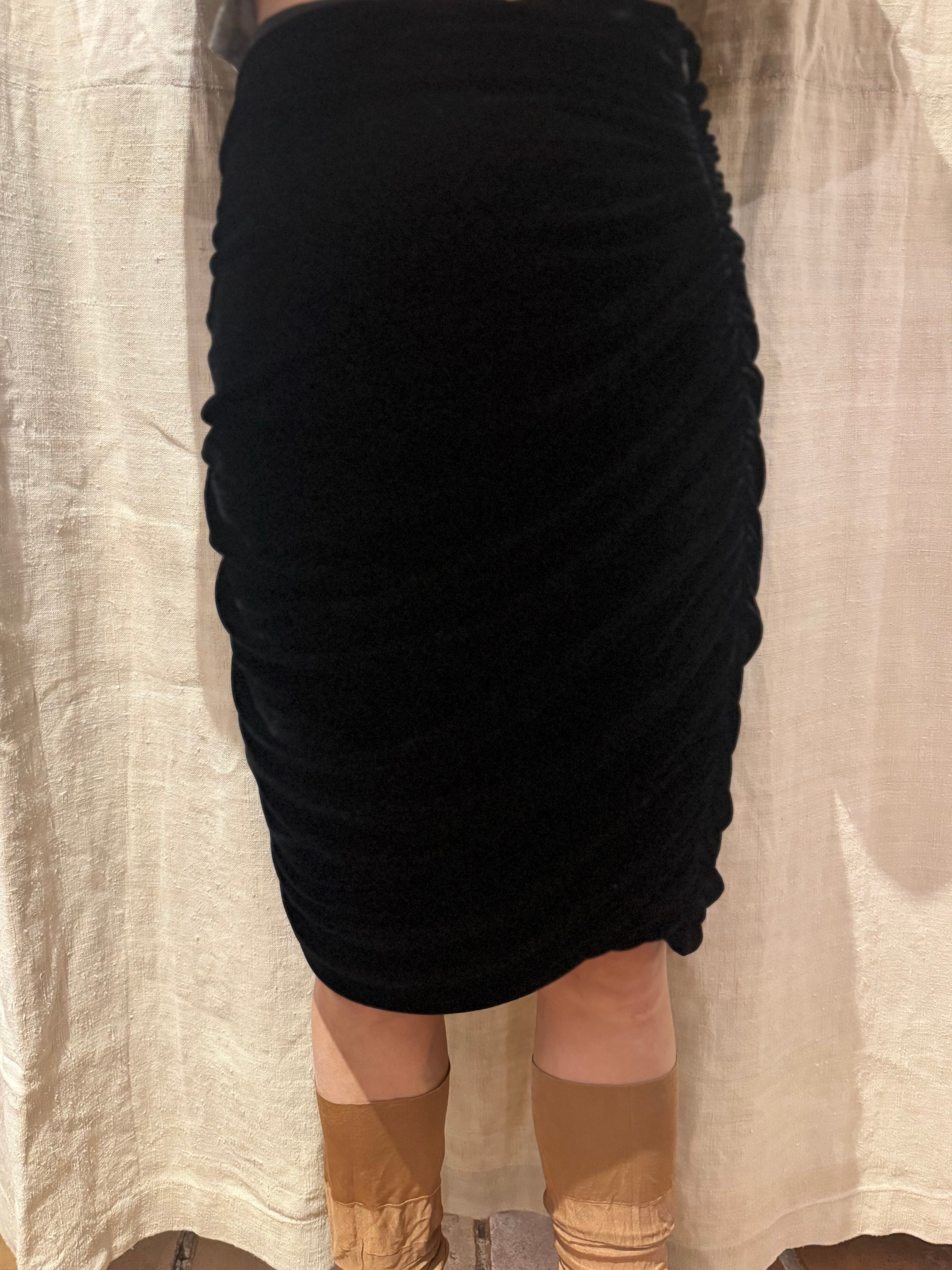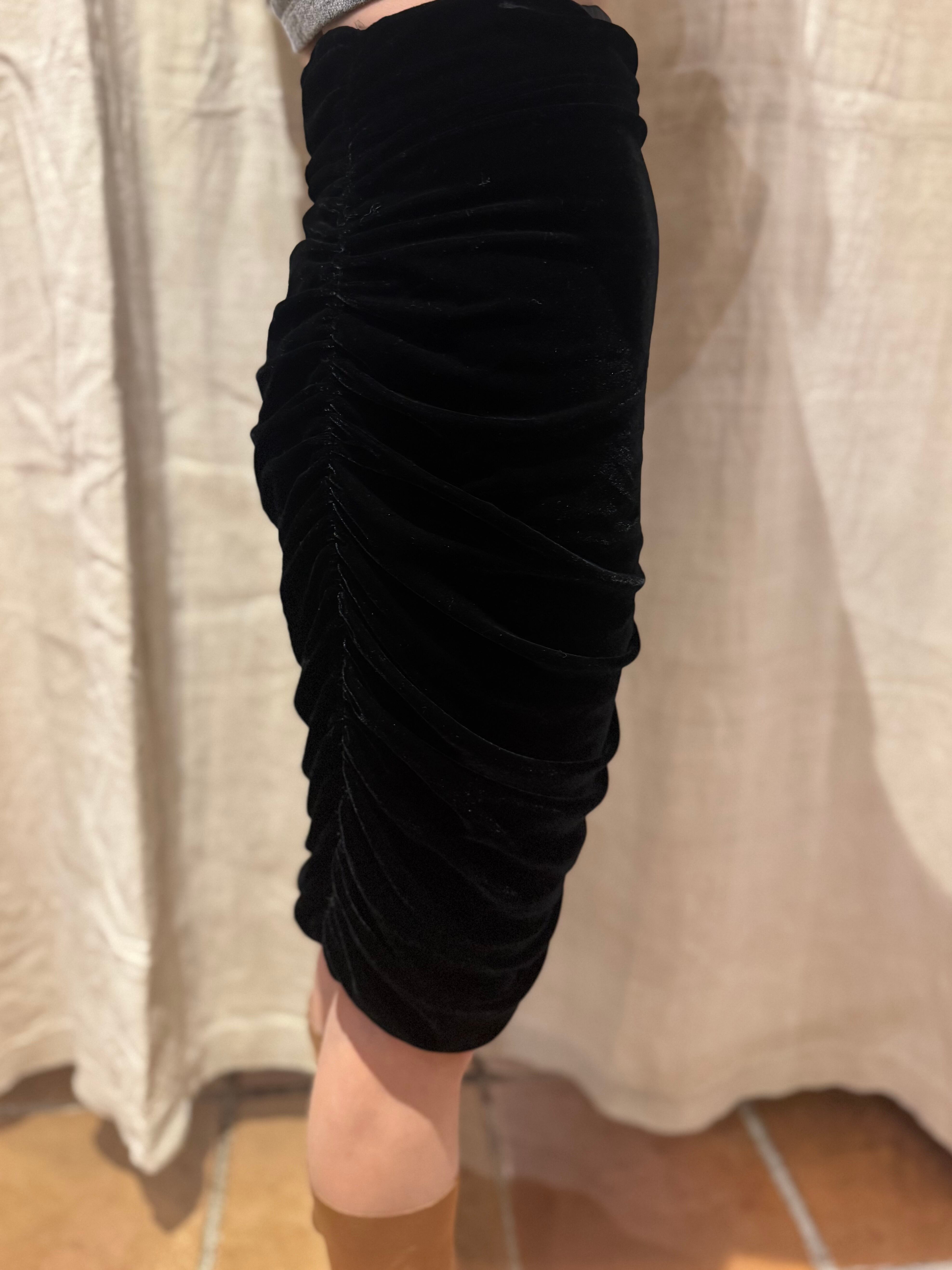 膝丈のベロアスカート。