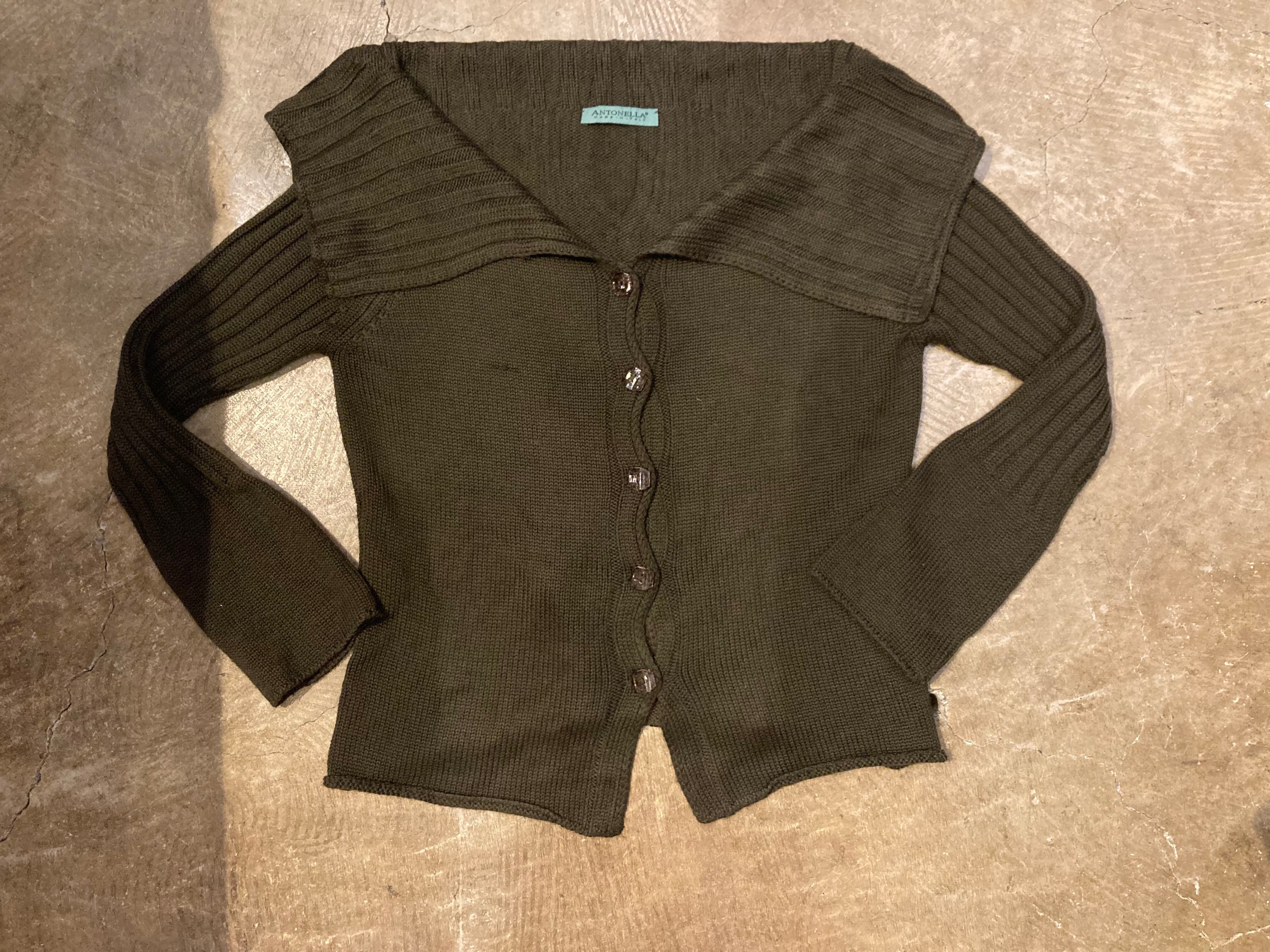 襟元がざっくりあき、袖口もゆったりとしたシルエットに大きな襟がポイントになり可愛いです。