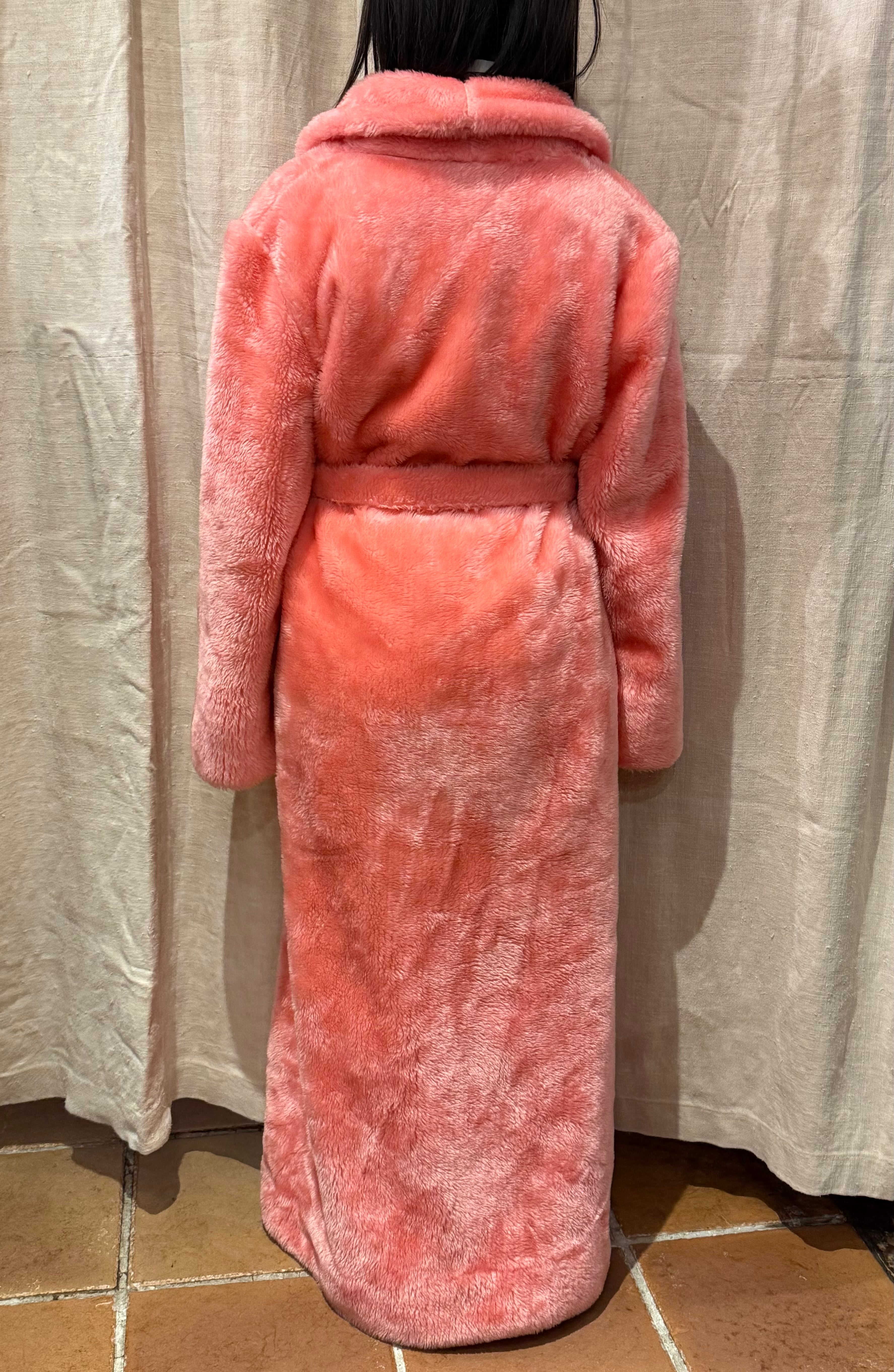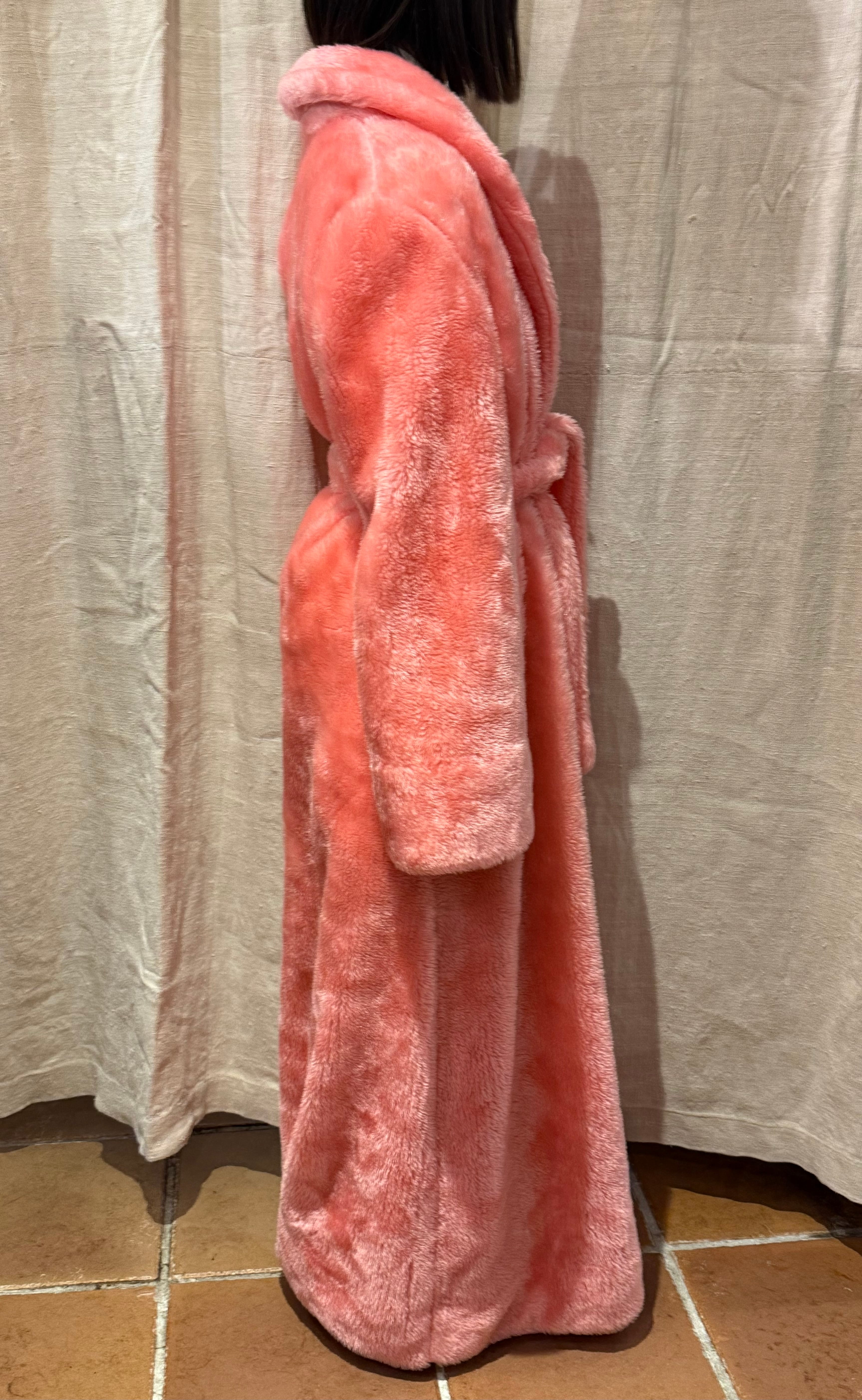 右の脇に内ポケットがあり着丈が長いデザインで珍しく目を惹くファーガウン