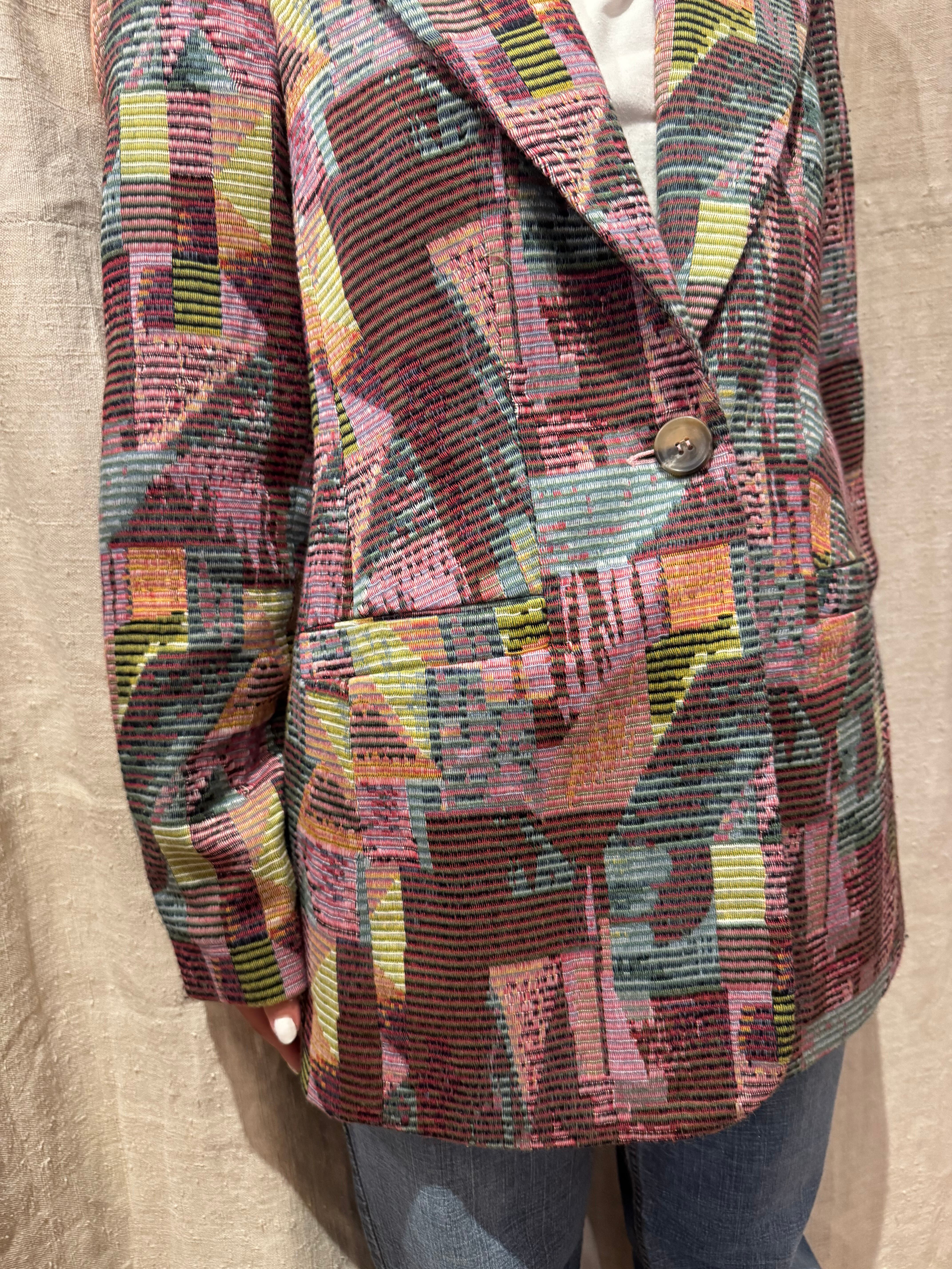 ジャケットには珍しい幾何学模様のような柄が素敵です。
