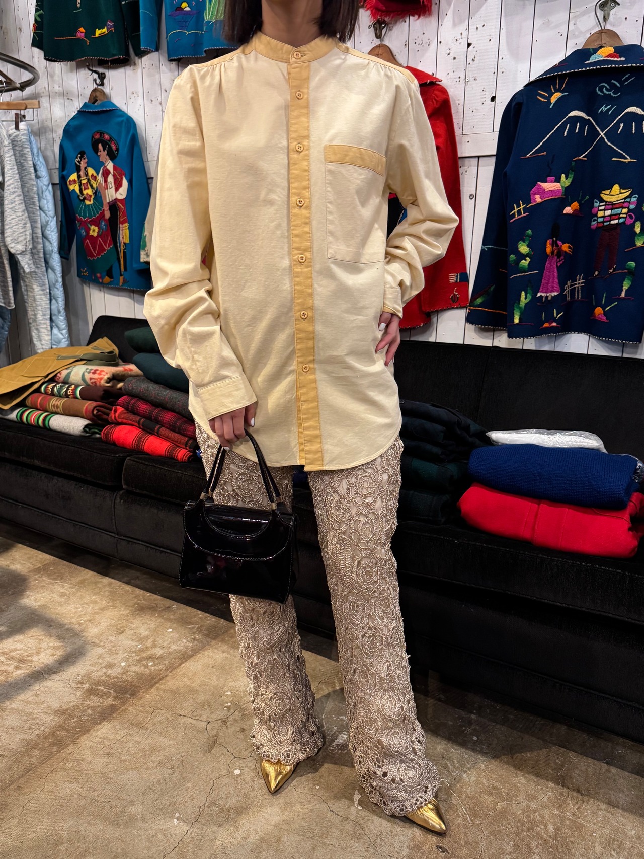 ハリ感のある生地や同色のコントラストでバイカラー使用に仕立て上げられているところが可愛いアイテムです。袖丈や着丈はやや長めなので、重ね着をして襟や裾、袖などを出して楽しむのもオススメです。