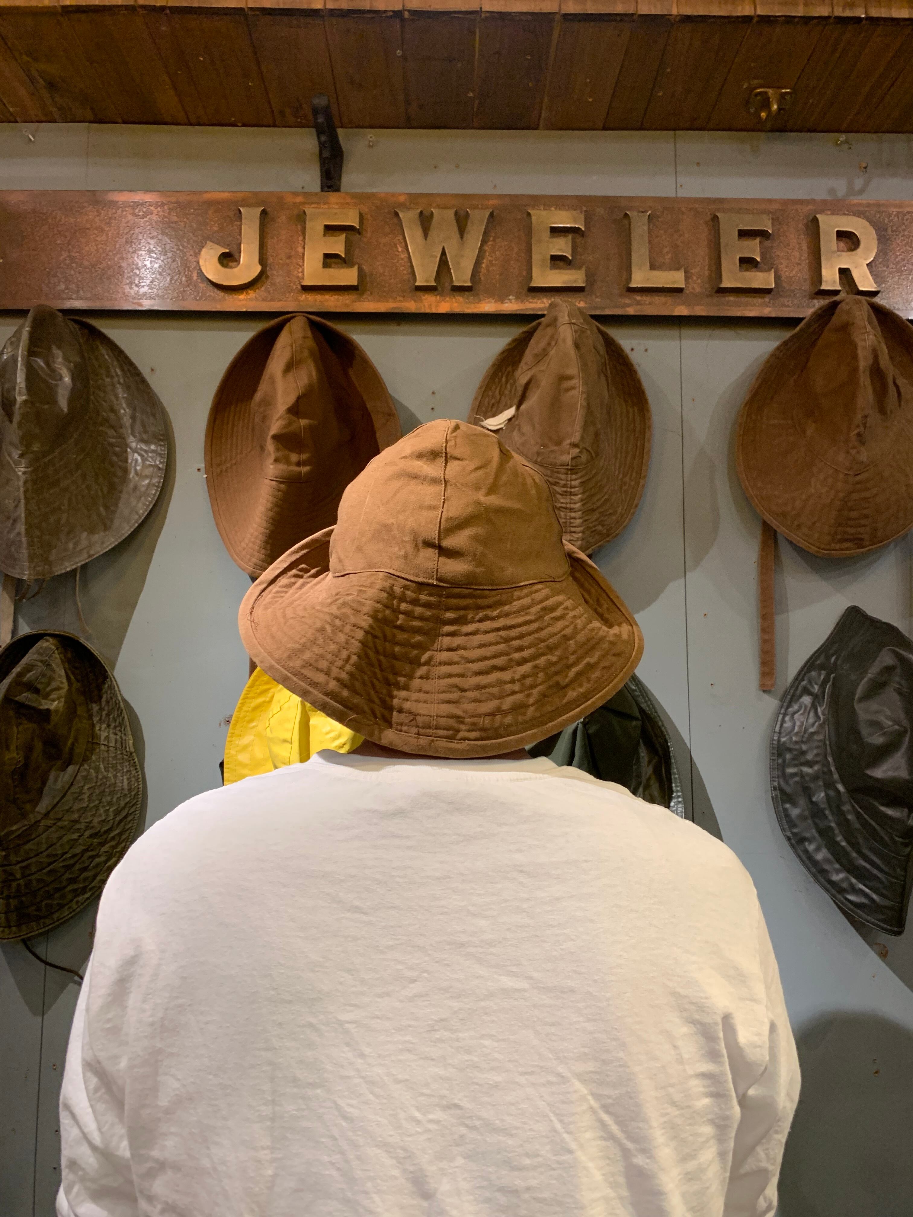 基本的には、ツバが長い方が、後ろ側で、首の日焼けになりますが、逆に被っても、ファッションとしては良いと思います。色は、焦茶色でとても良い色で、アメリカ物だと40年代のLeeやsweet orrなどに色が、似た物があります。
